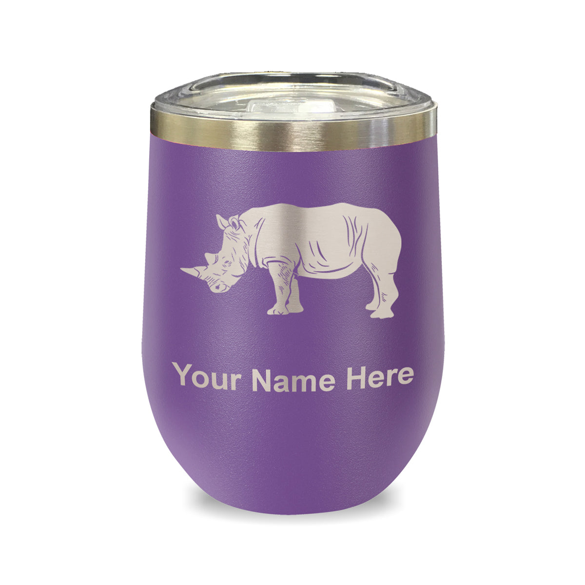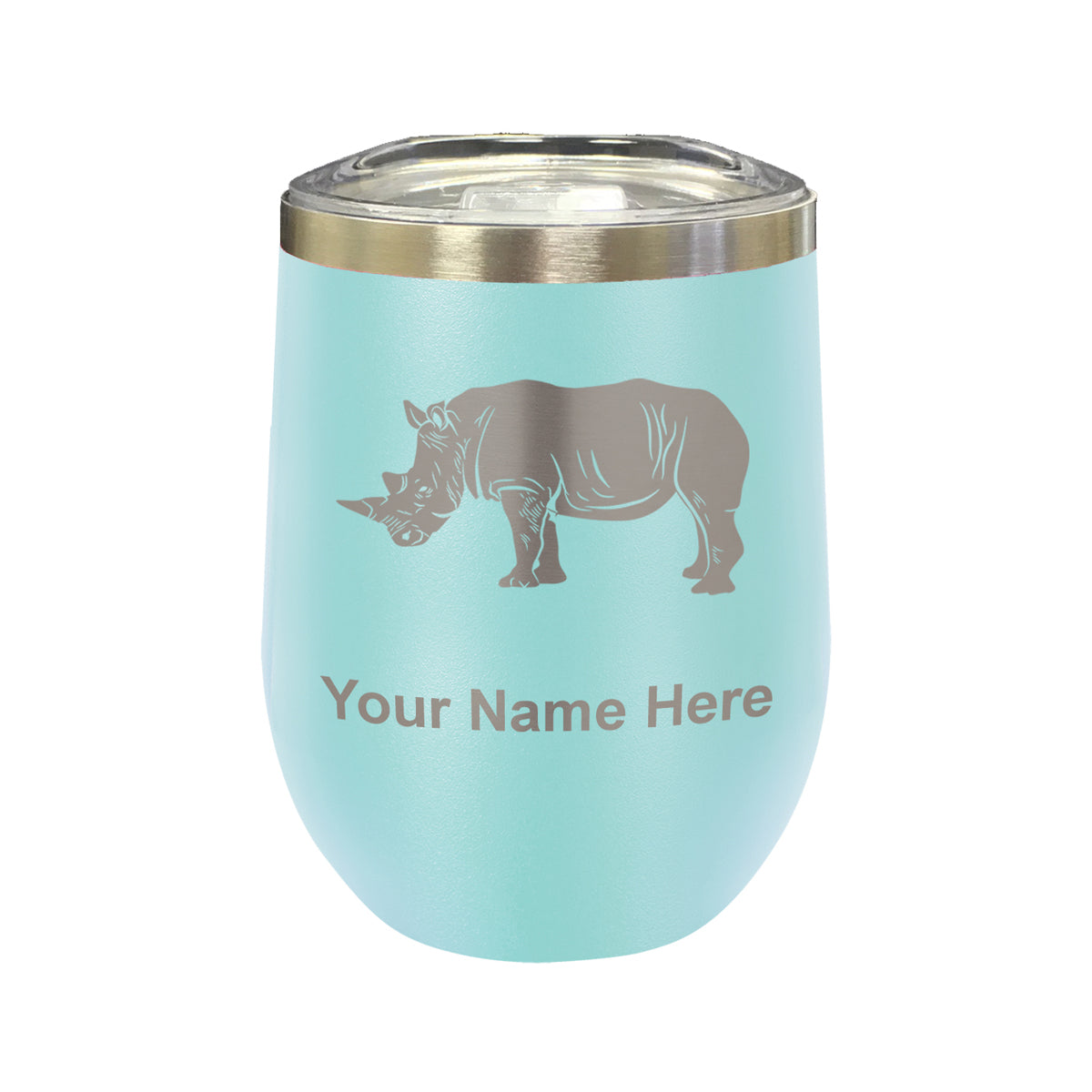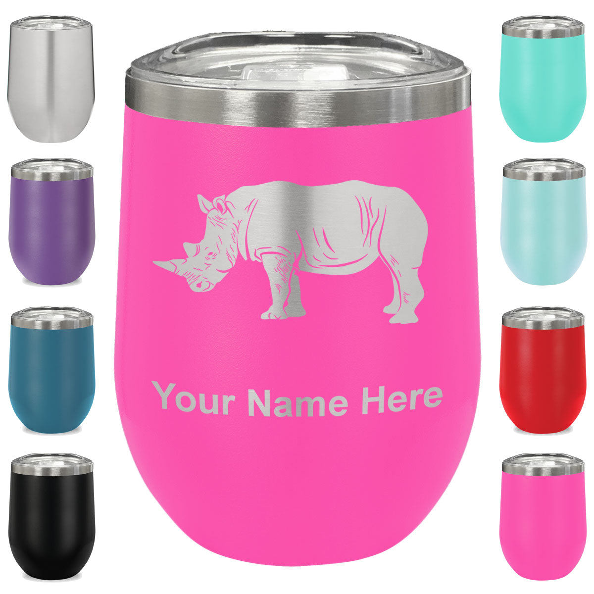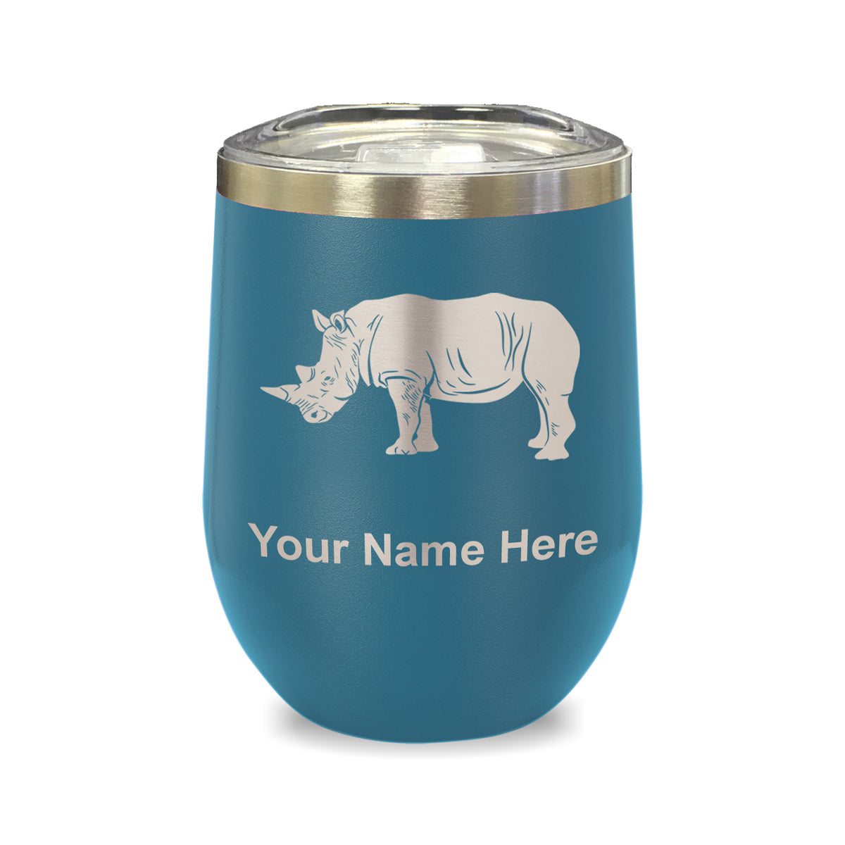 LaserGram Double Wall Stainless Steel Wine Glass, Rhinoceros, Personalized Engraving Included