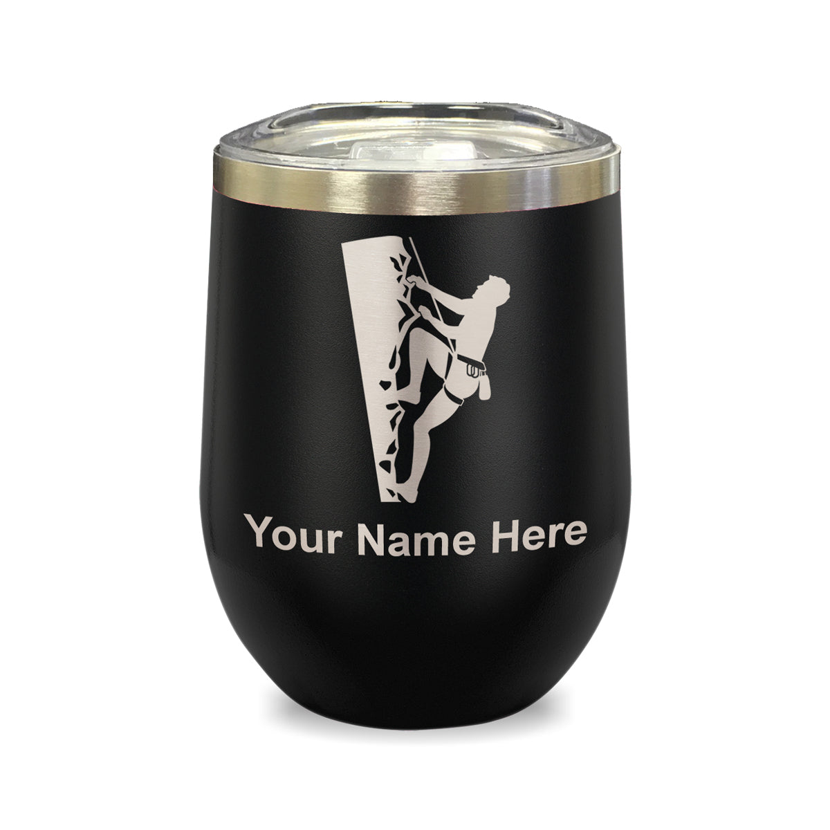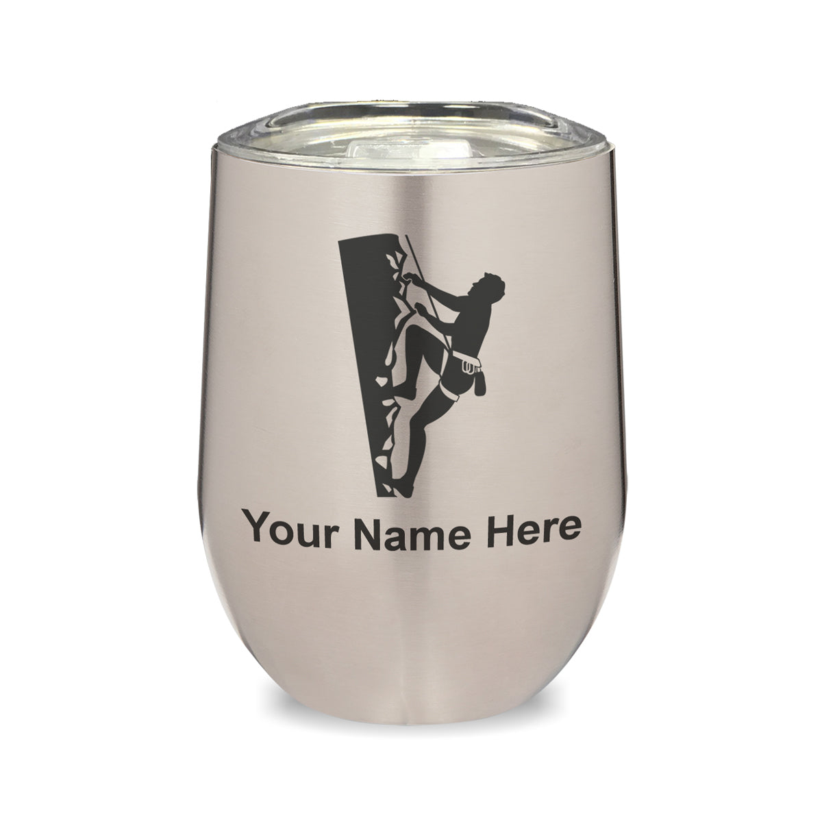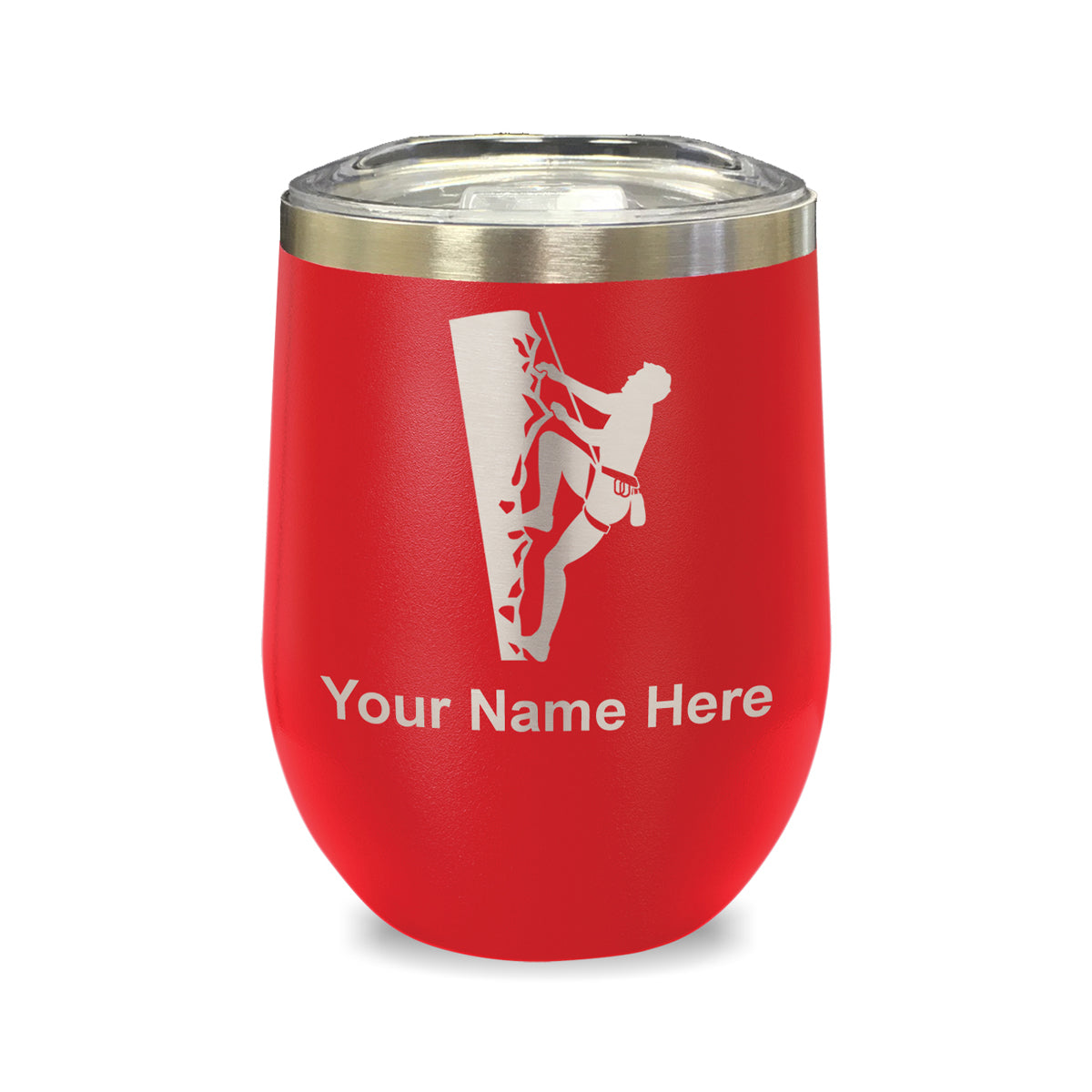 LaserGram Double Wall Stainless Steel Wine Glass, Rock Climber, Personalized Engraving Included