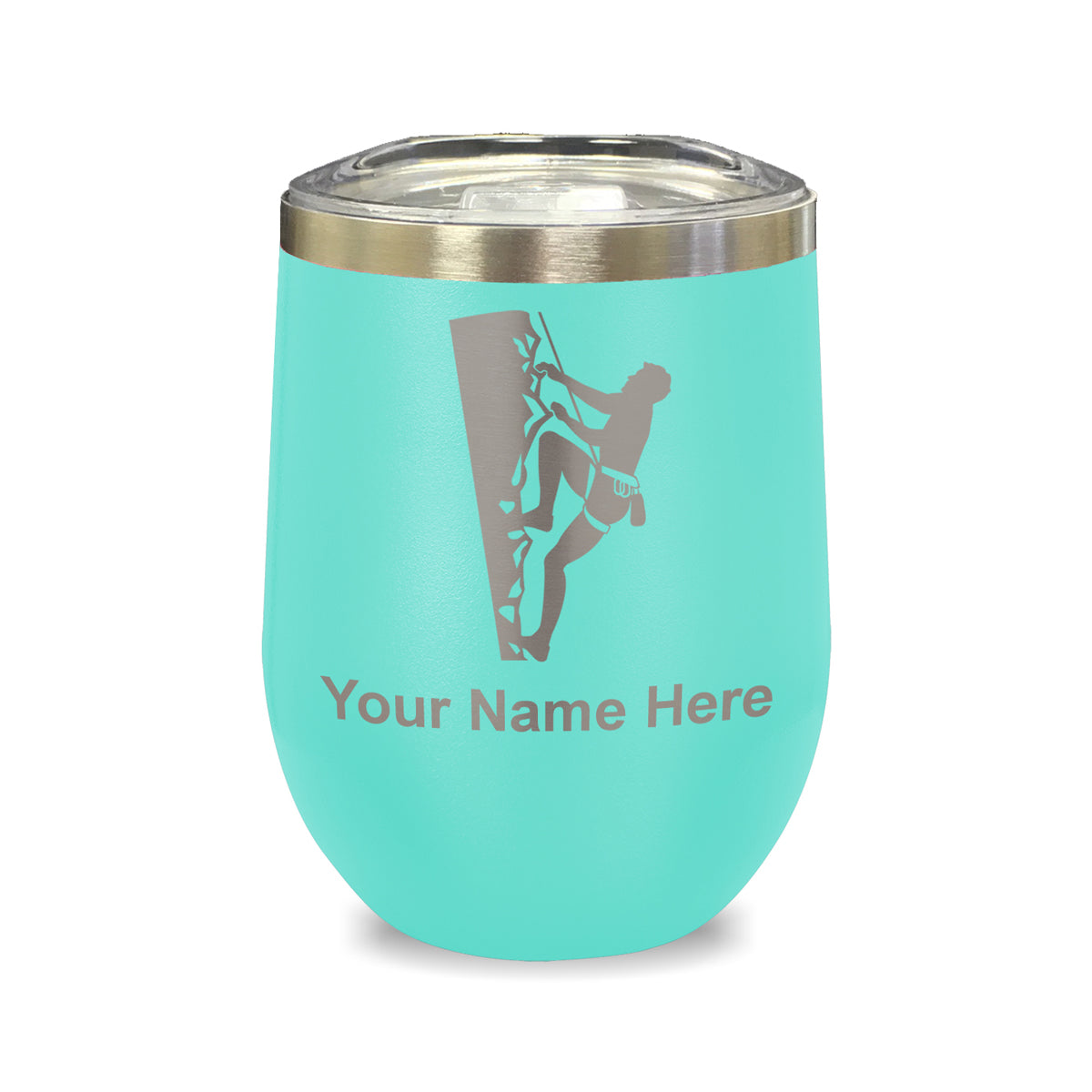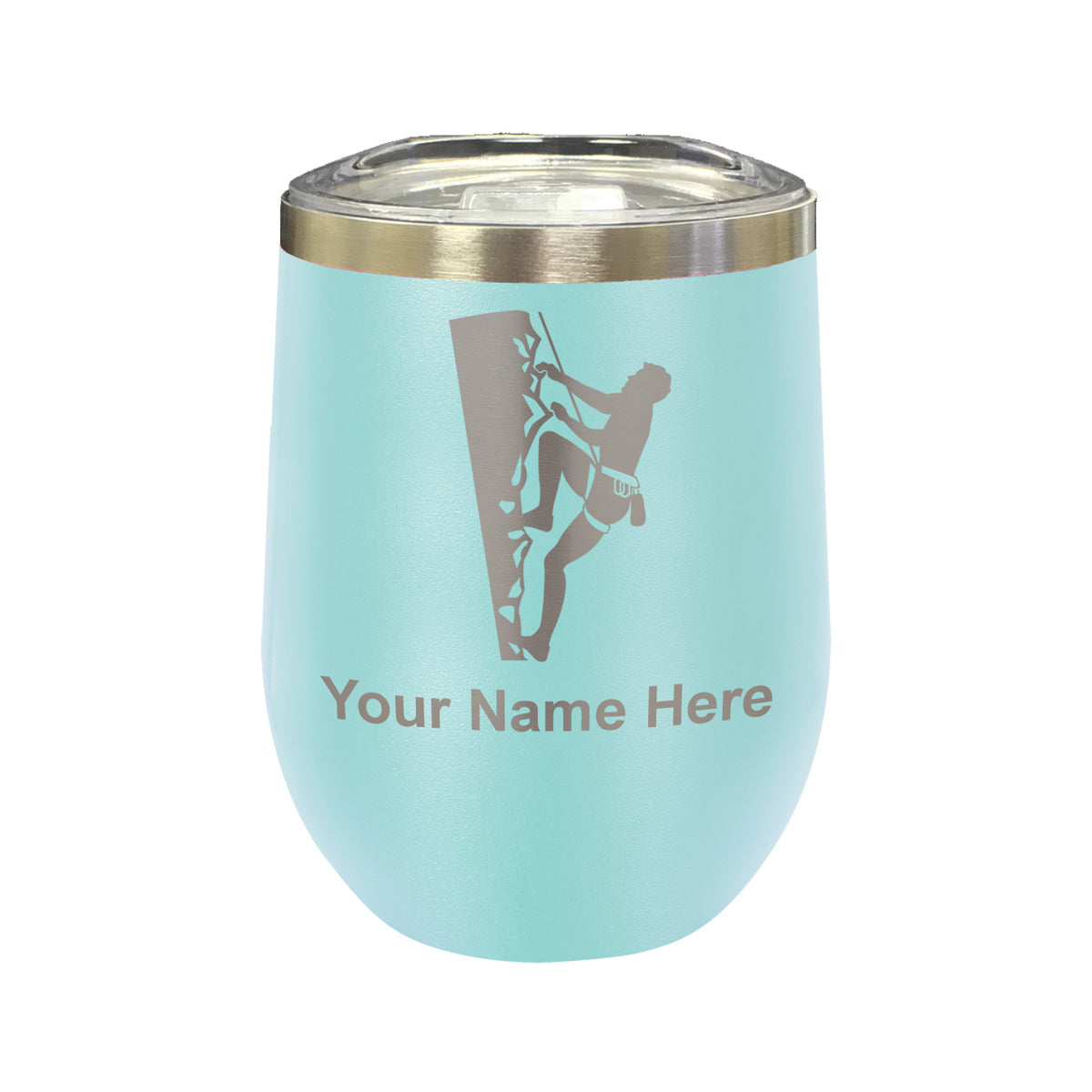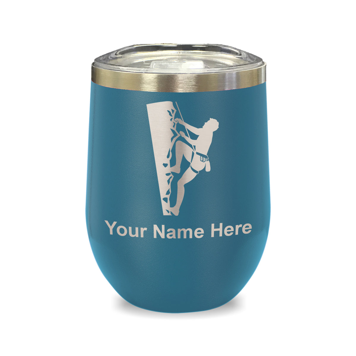 LaserGram Double Wall Stainless Steel Wine Glass, Rock Climber, Personalized Engraving Included