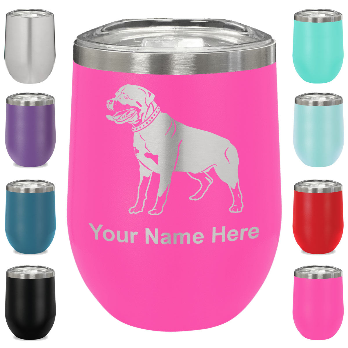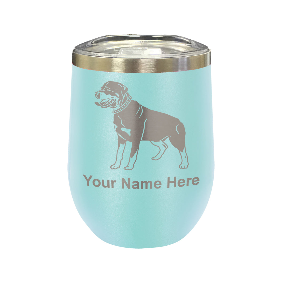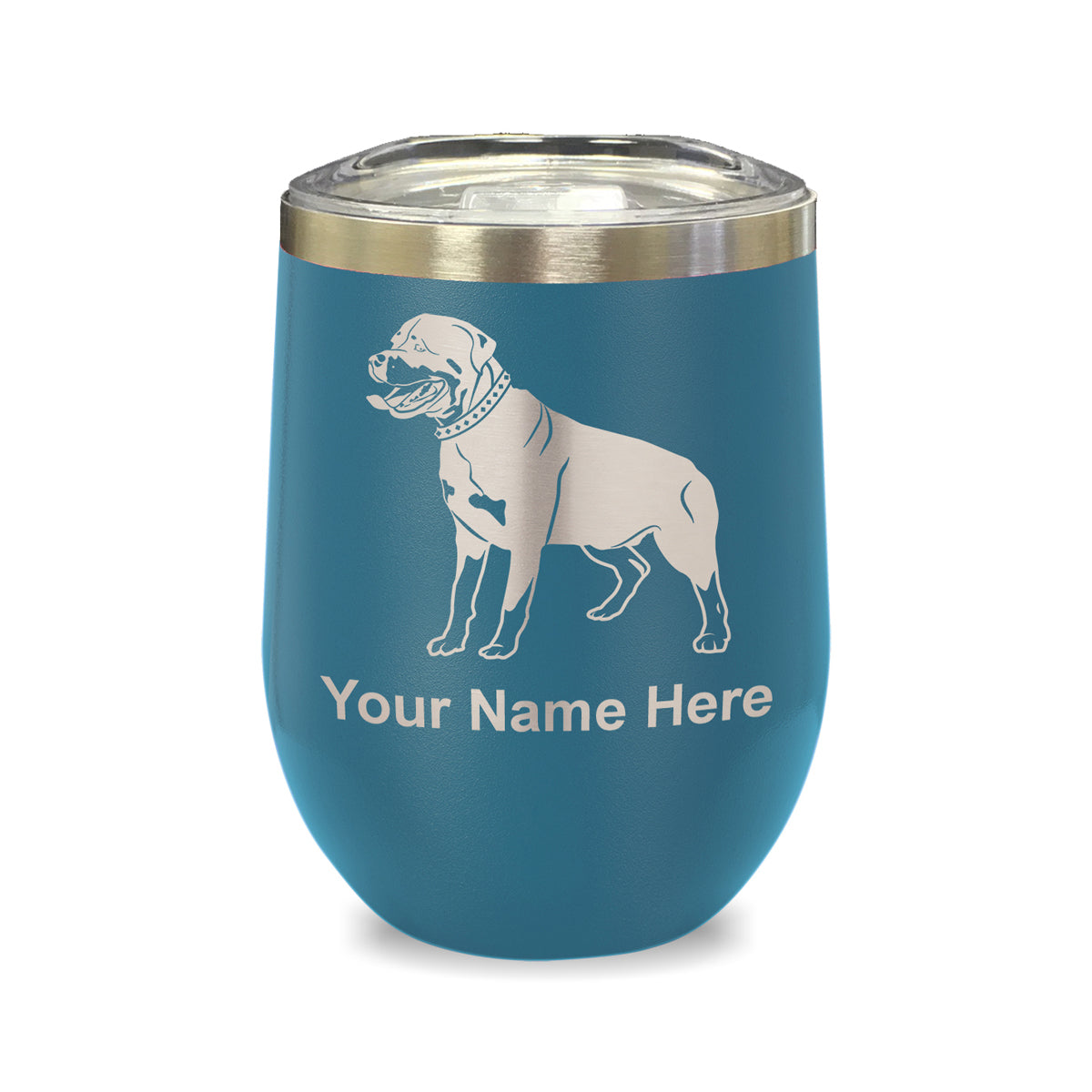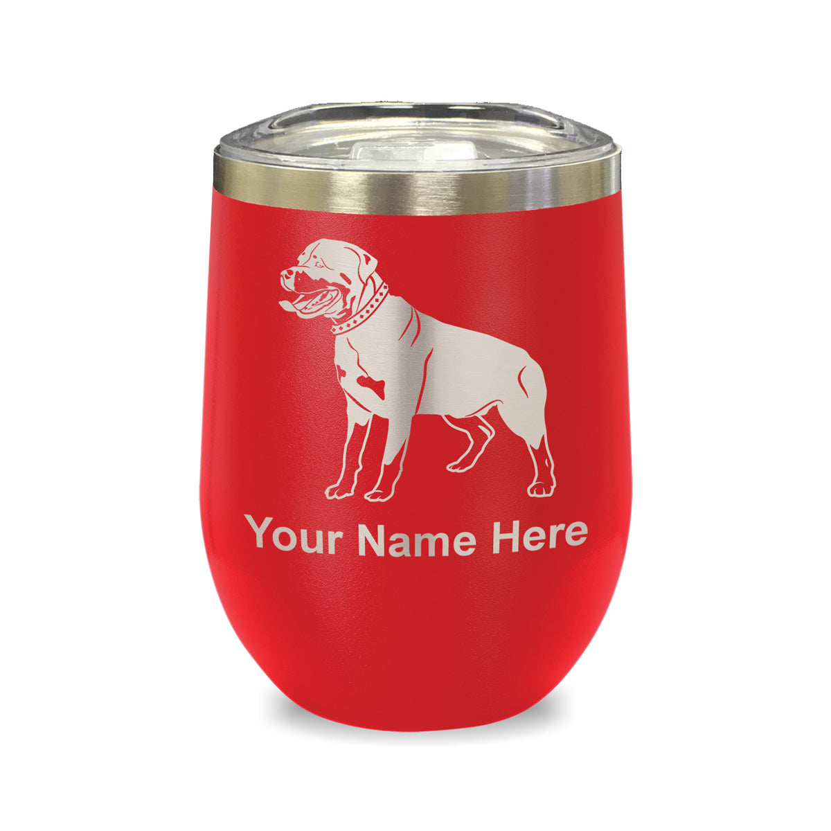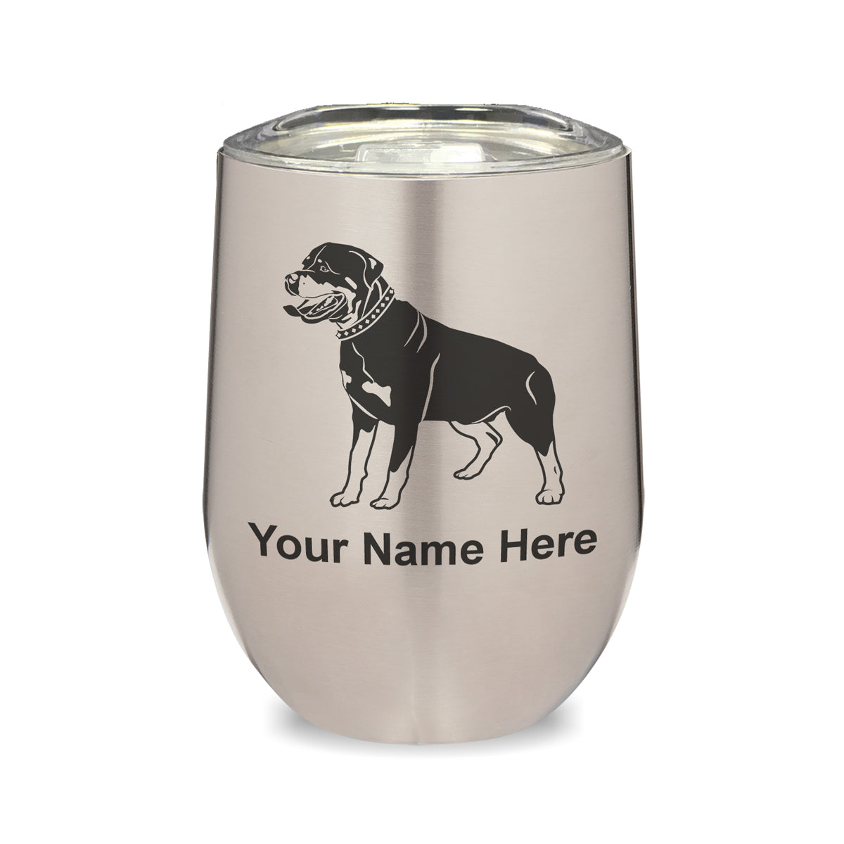 LaserGram Double Wall Stainless Steel Wine Glass, Rottweiler Dog, Personalized Engraving Included