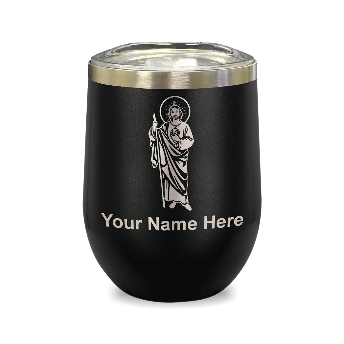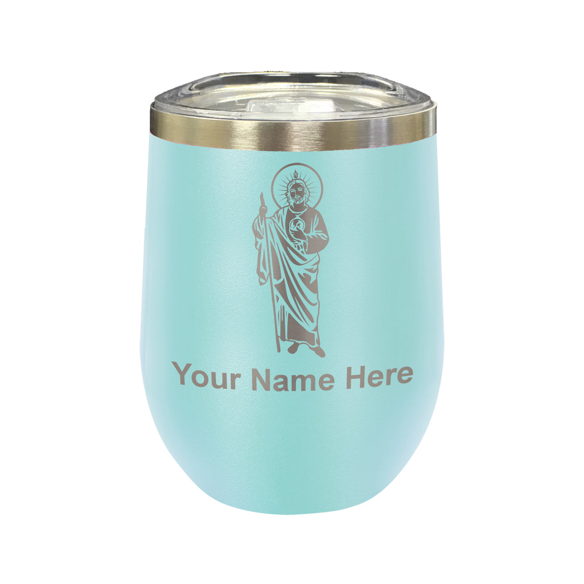 LaserGram Double Wall Stainless Steel Wine Glass, Saint Jude, Personalized Engraving Included