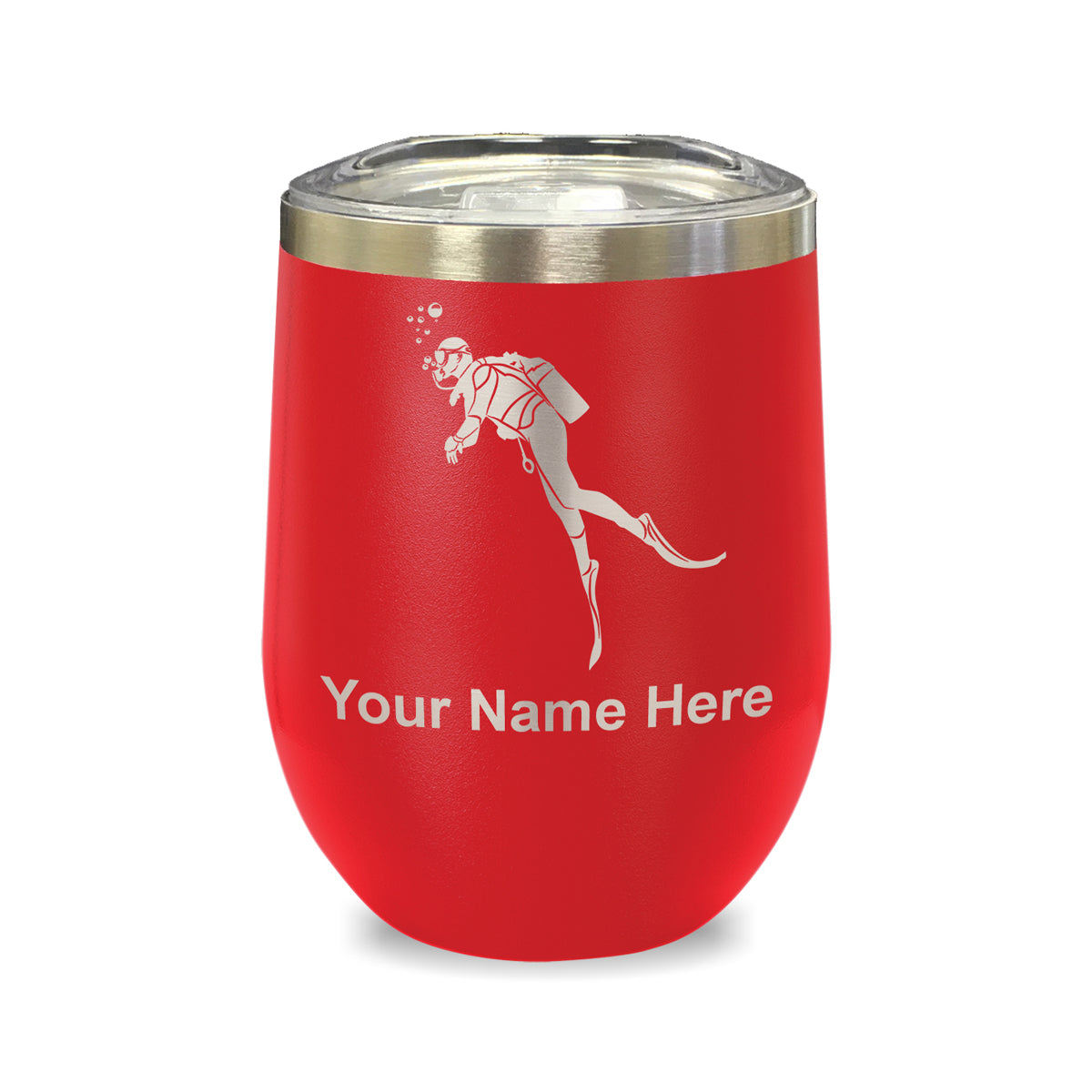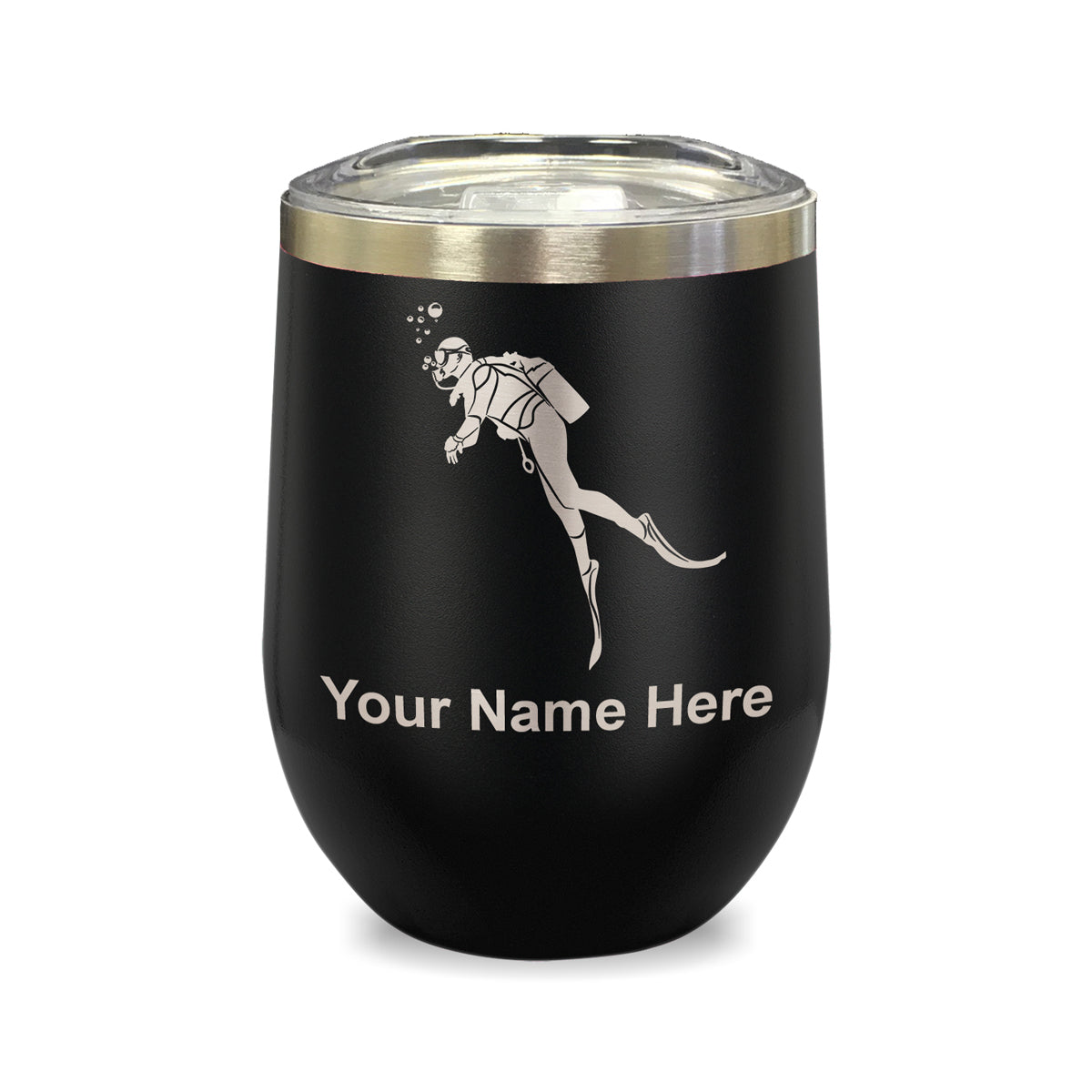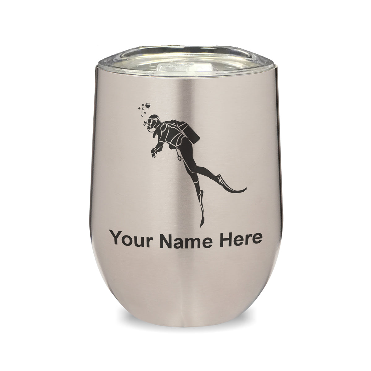 LaserGram Double Wall Stainless Steel Wine Glass, Scuba Diver, Personalized Engraving Included