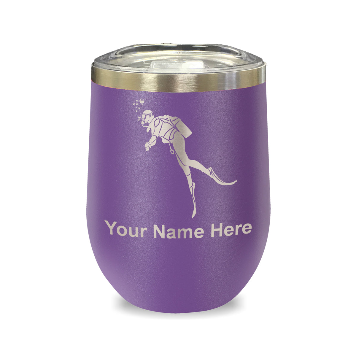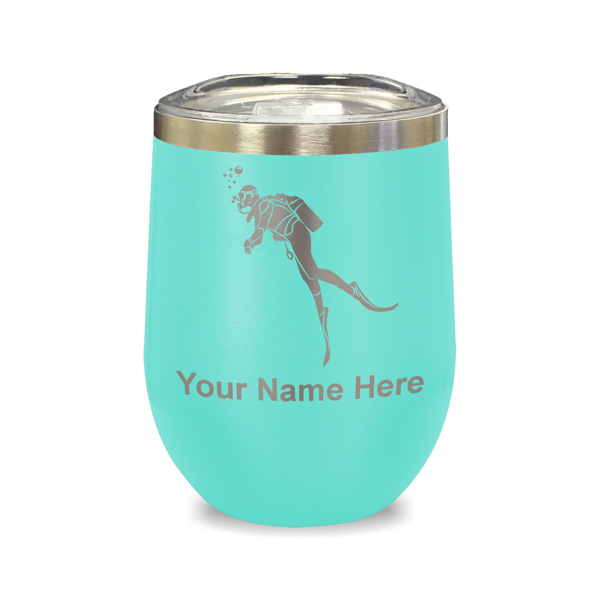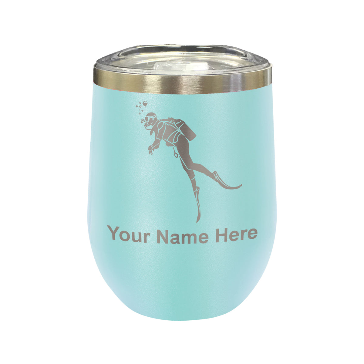 LaserGram Double Wall Stainless Steel Wine Glass, Scuba Diver, Personalized Engraving Included