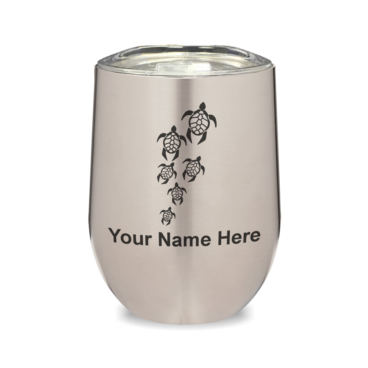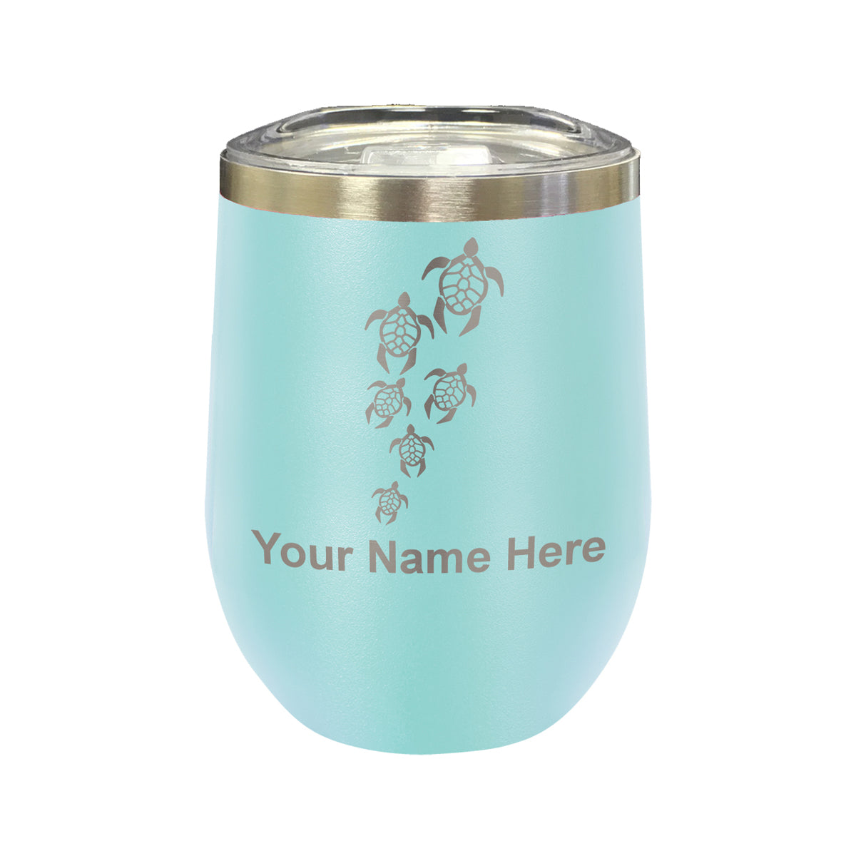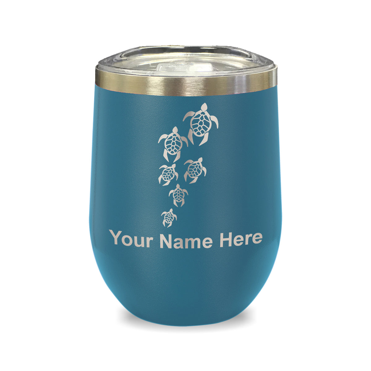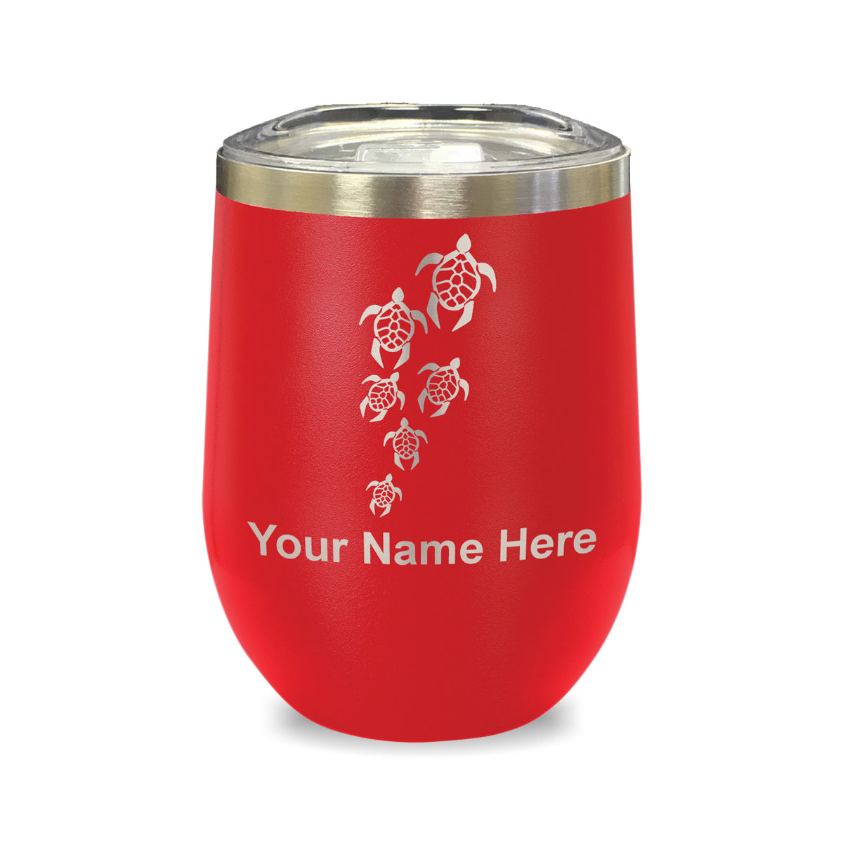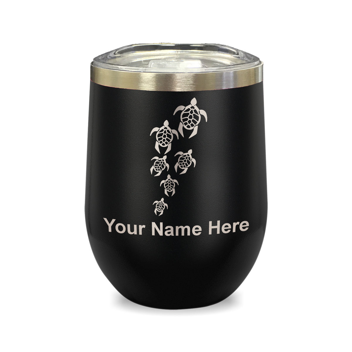 LaserGram Double Wall Stainless Steel Wine Glass, Sea Turtle Family, Personalized Engraving Included