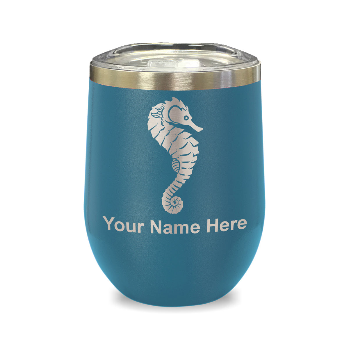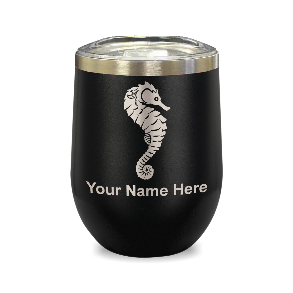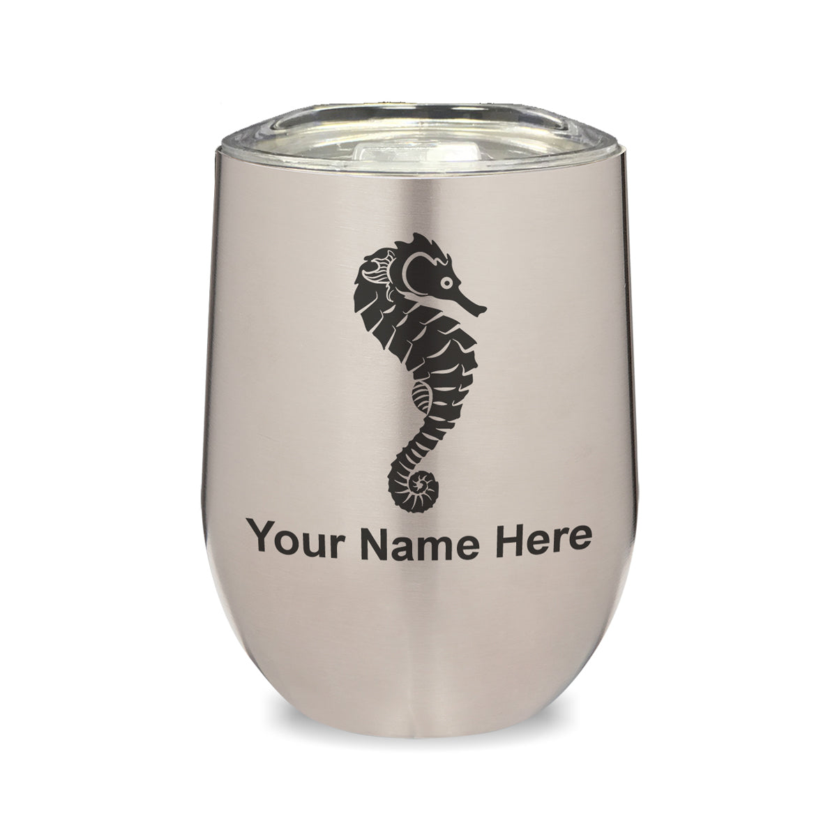 LaserGram Double Wall Stainless Steel Wine Glass, Seahorse, Personalized Engraving Included