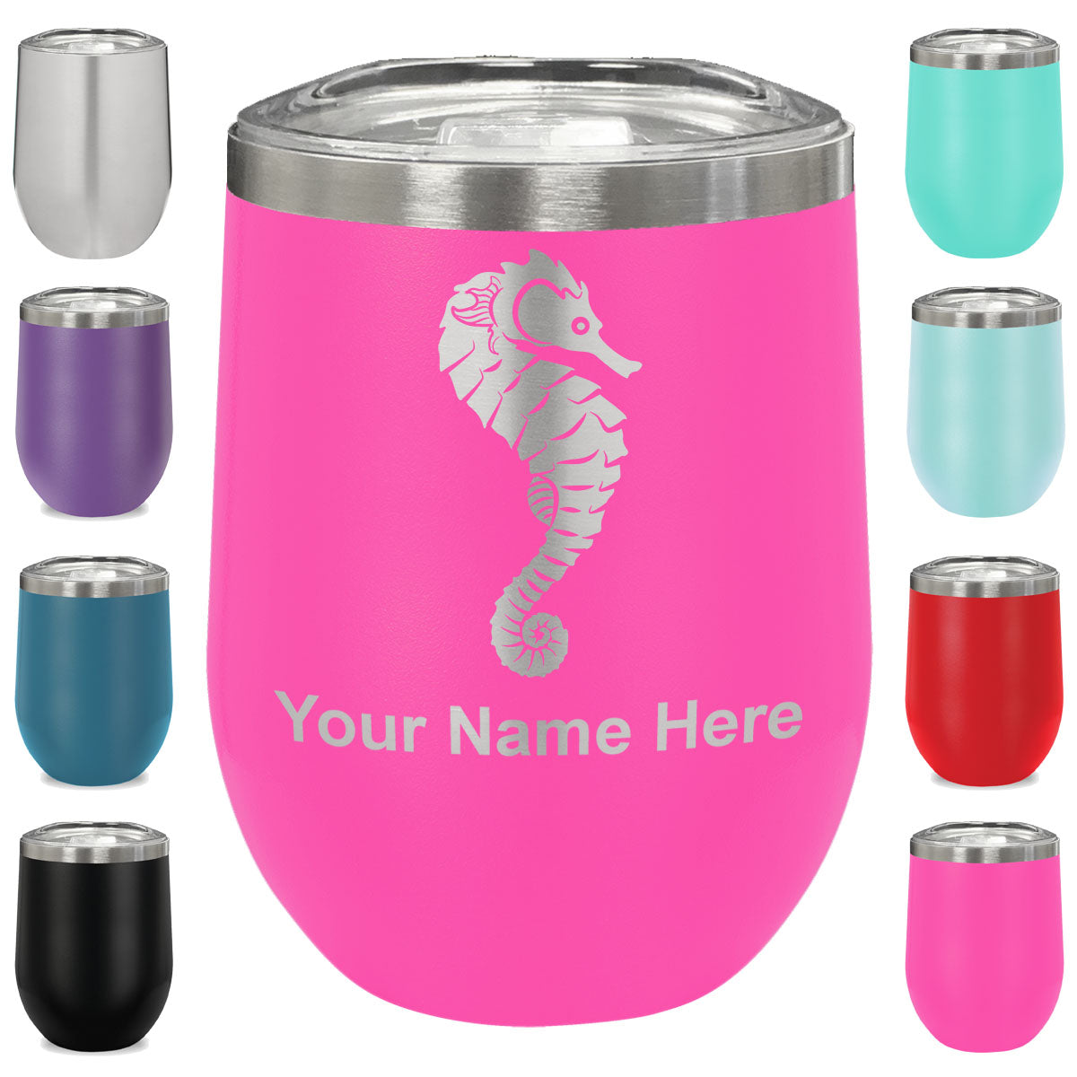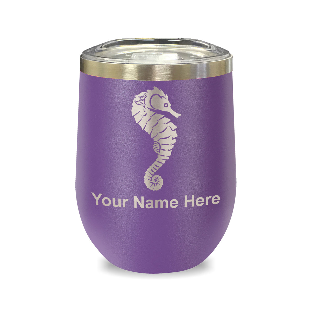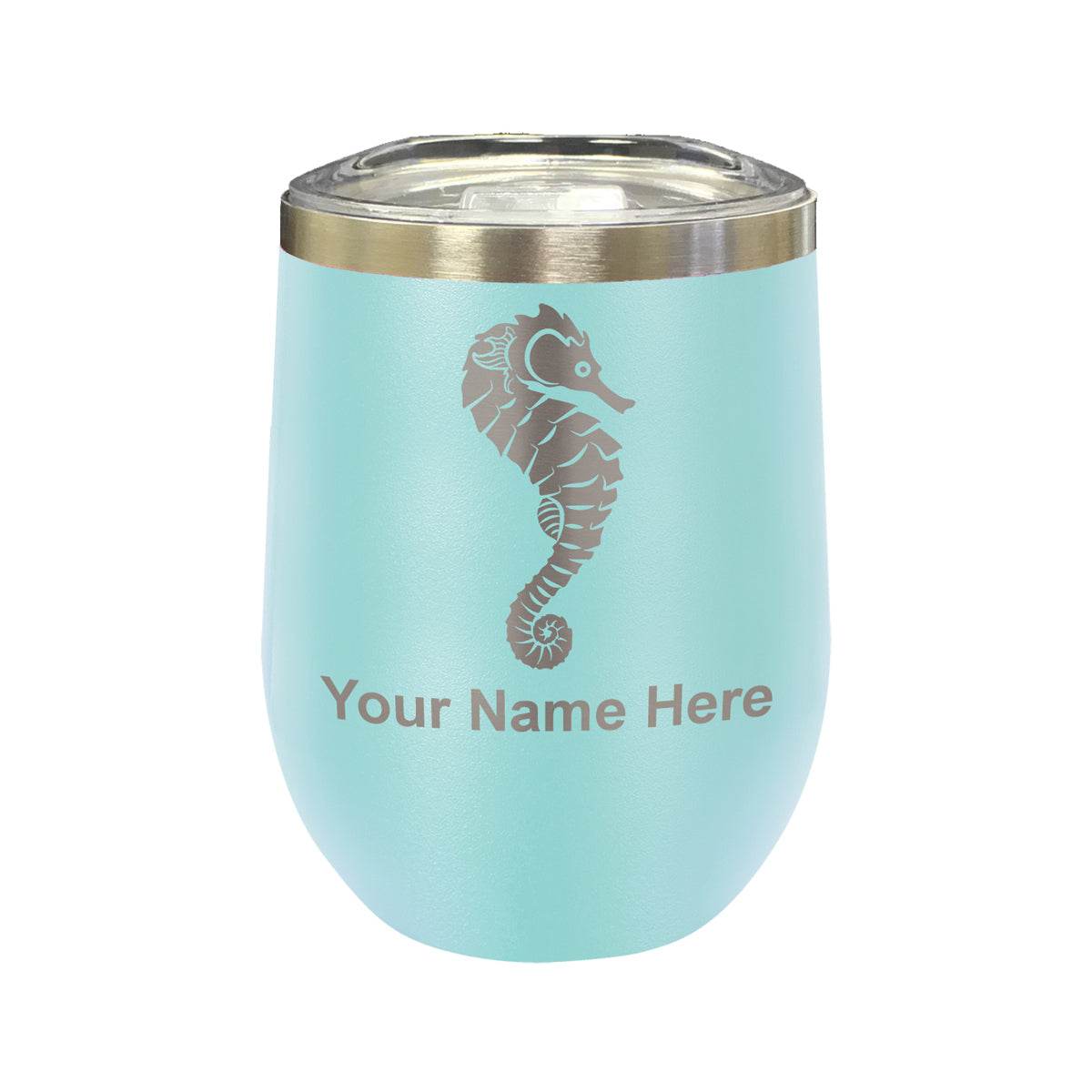 LaserGram Double Wall Stainless Steel Wine Glass, Seahorse, Personalized Engraving Included
