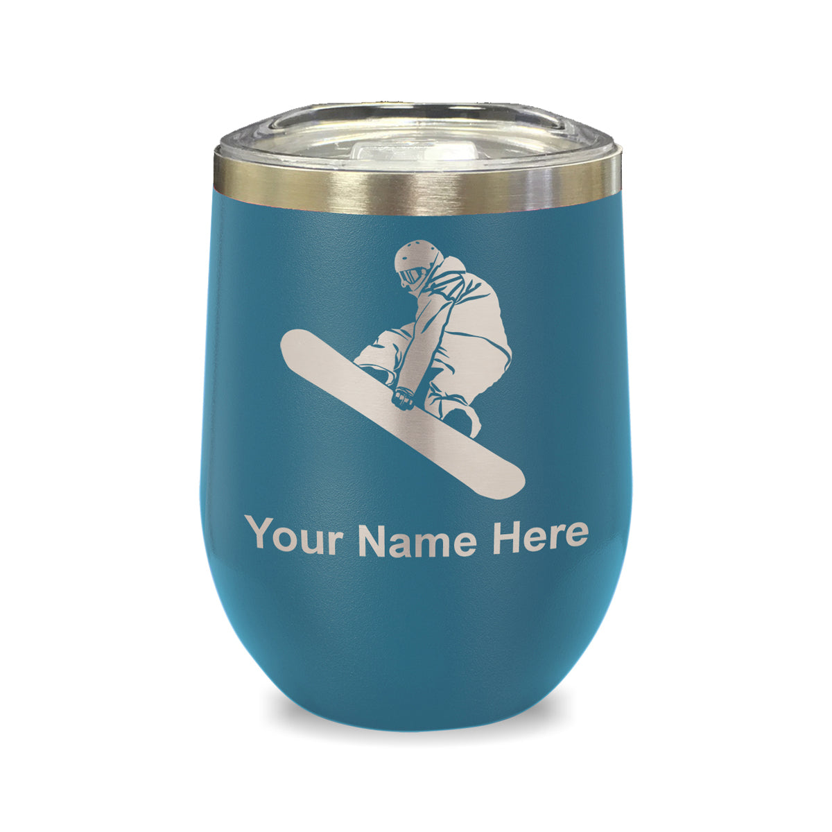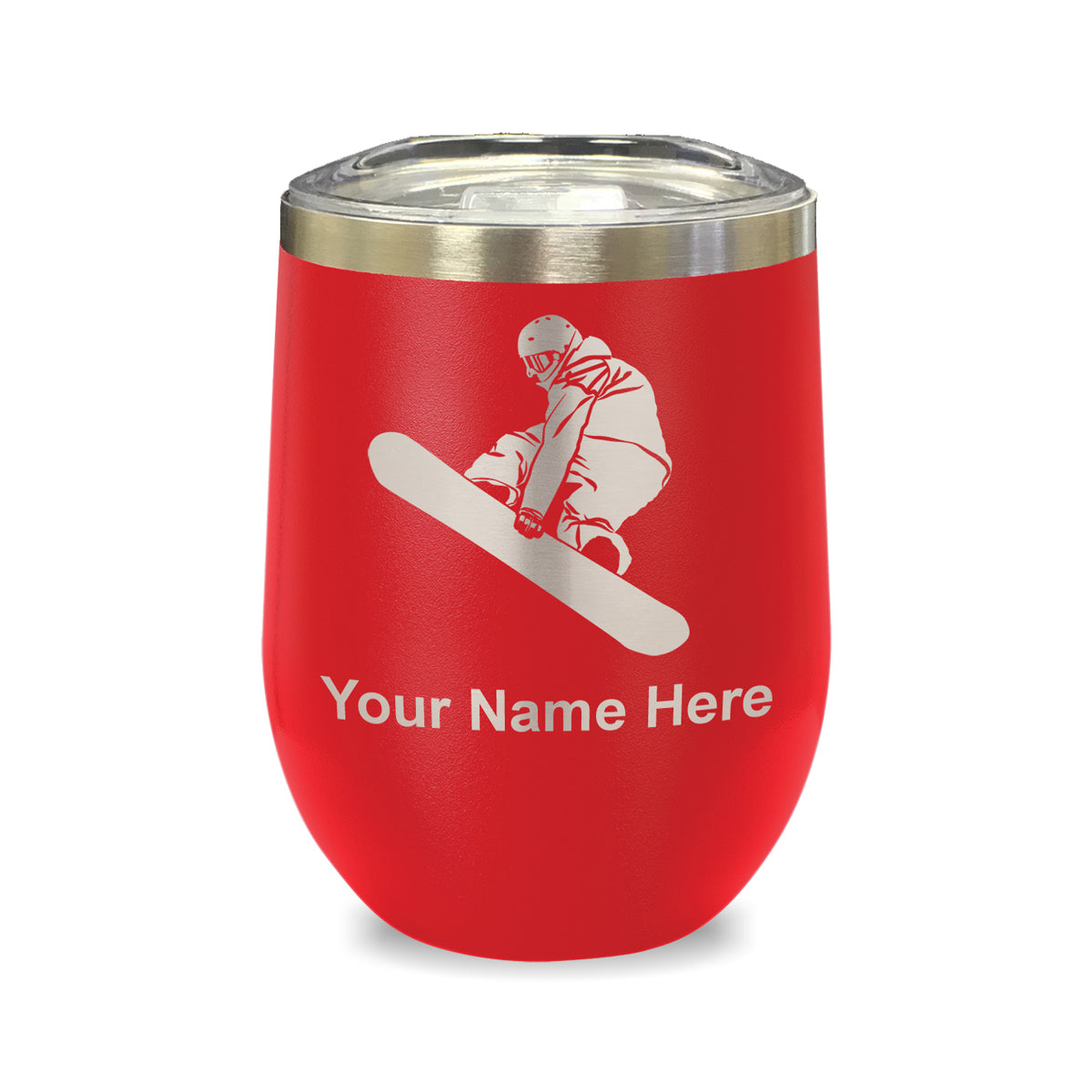 LaserGram Double Wall Stainless Steel Wine Glass, Snowboarder Man, Personalized Engraving Included