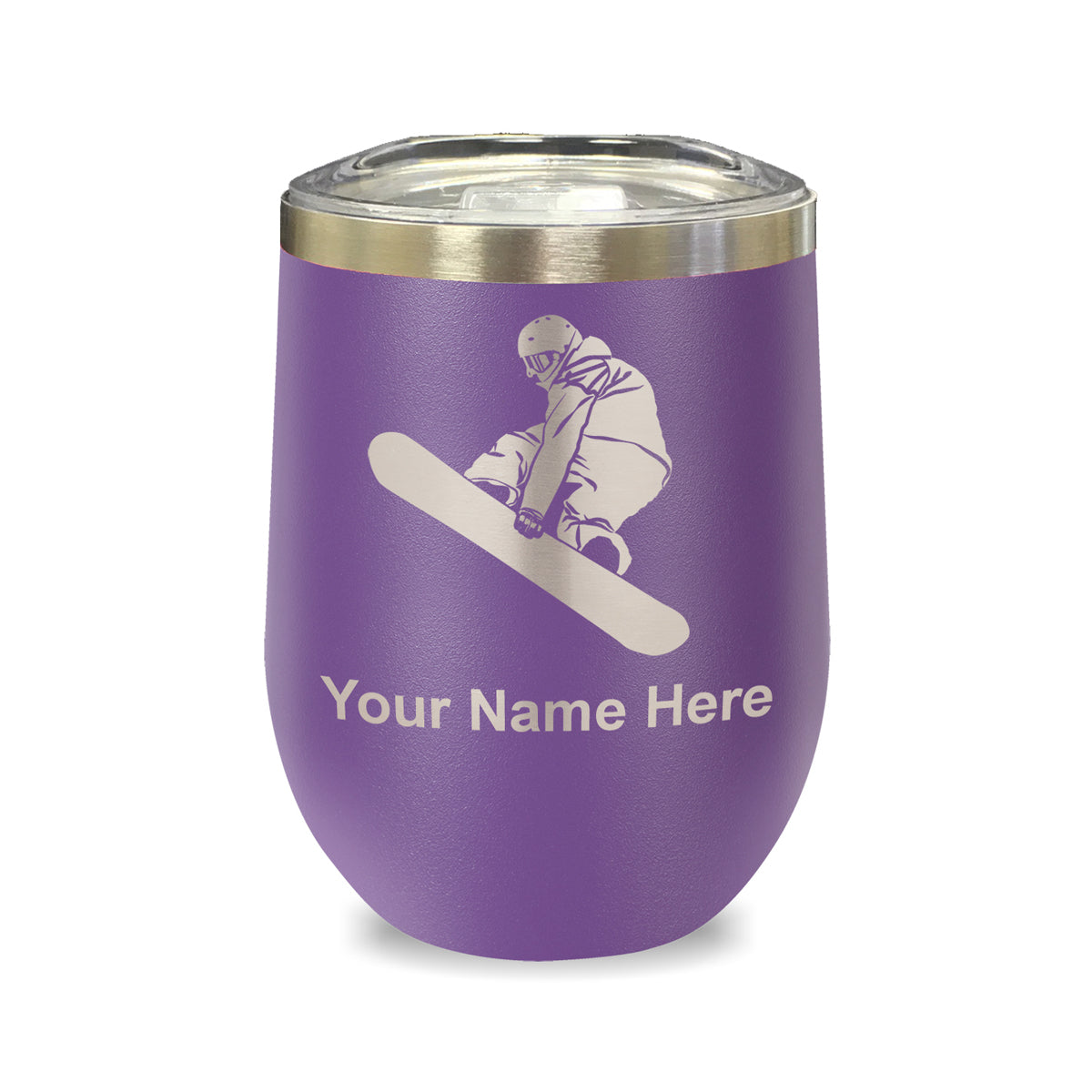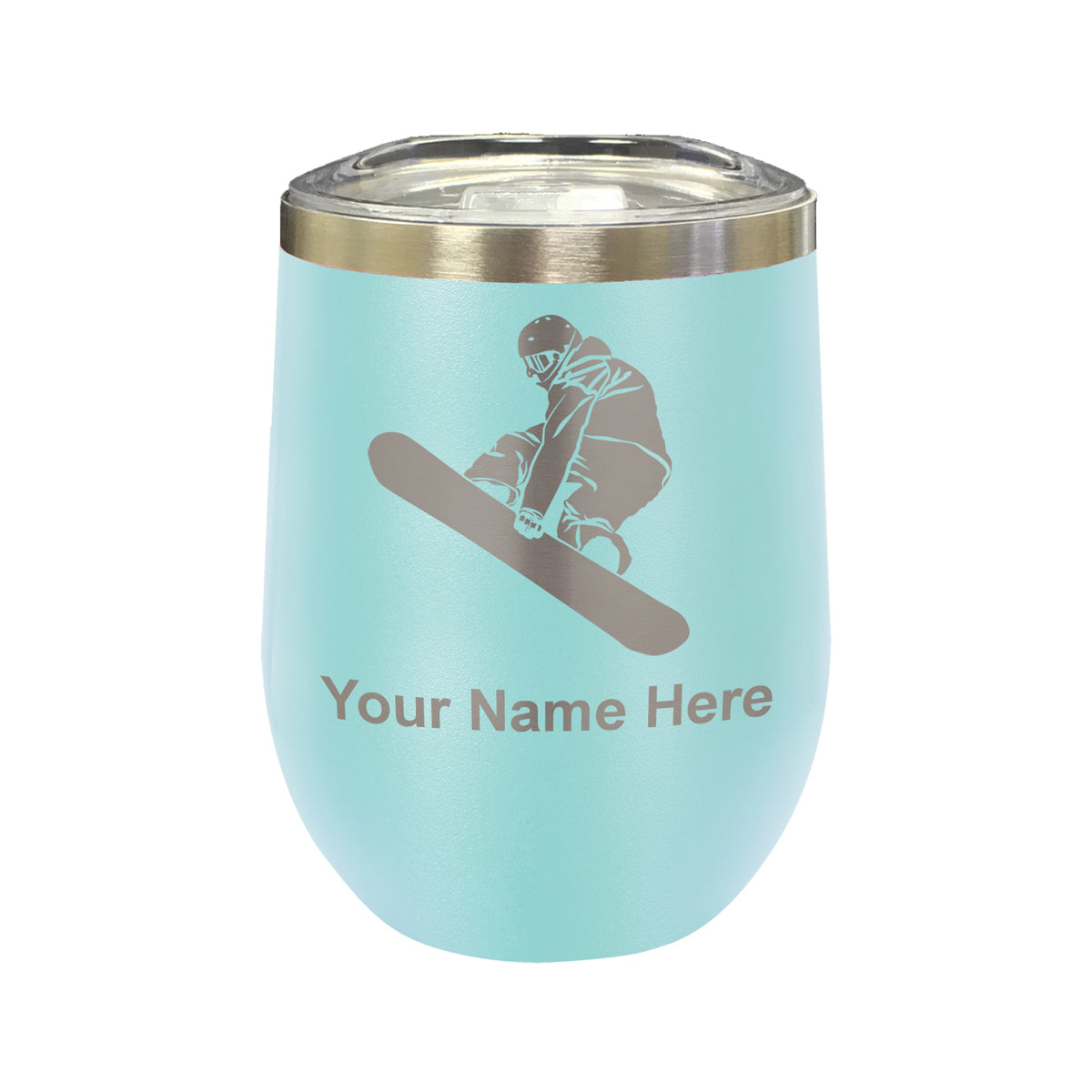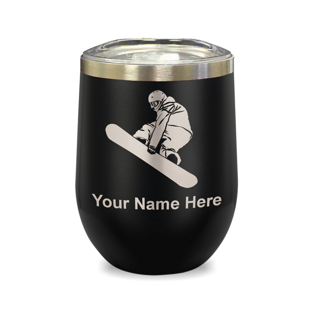 LaserGram Double Wall Stainless Steel Wine Glass, Snowboarder Woman, Personalized Engraving Included