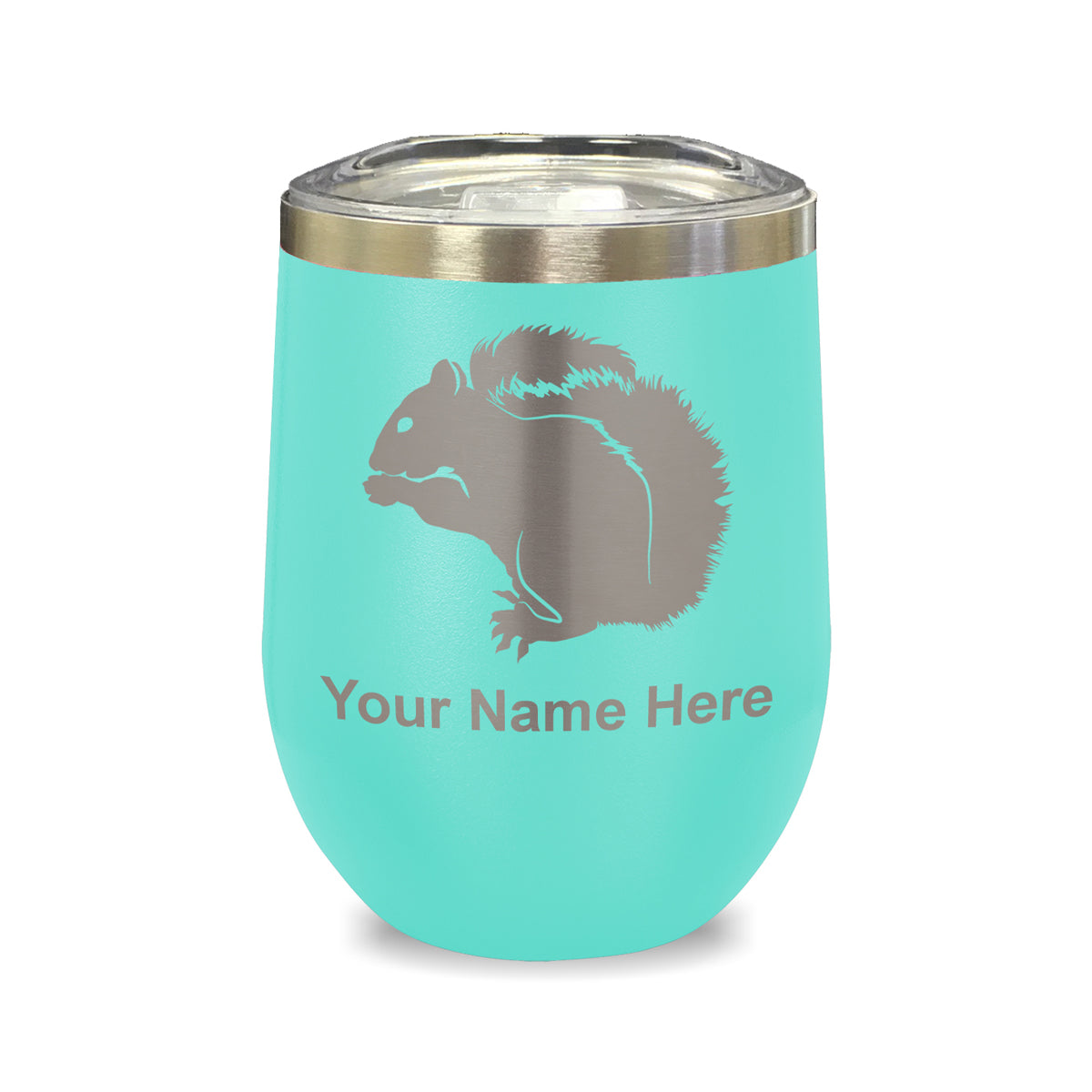 LaserGram Double Wall Stainless Steel Wine Glass, Squirrel, Personalized Engraving Included