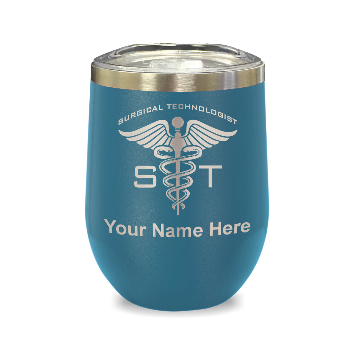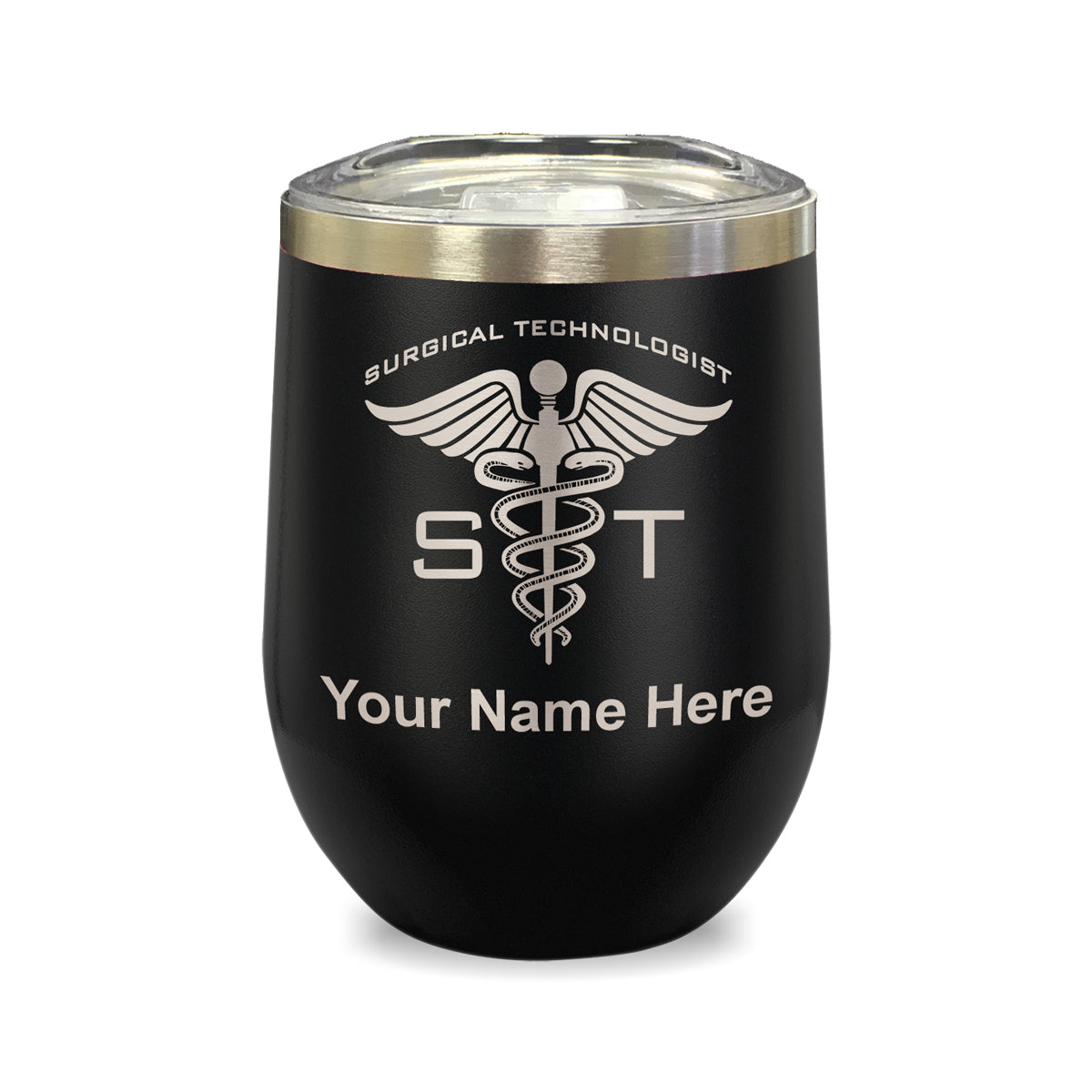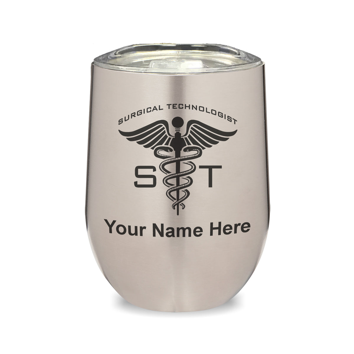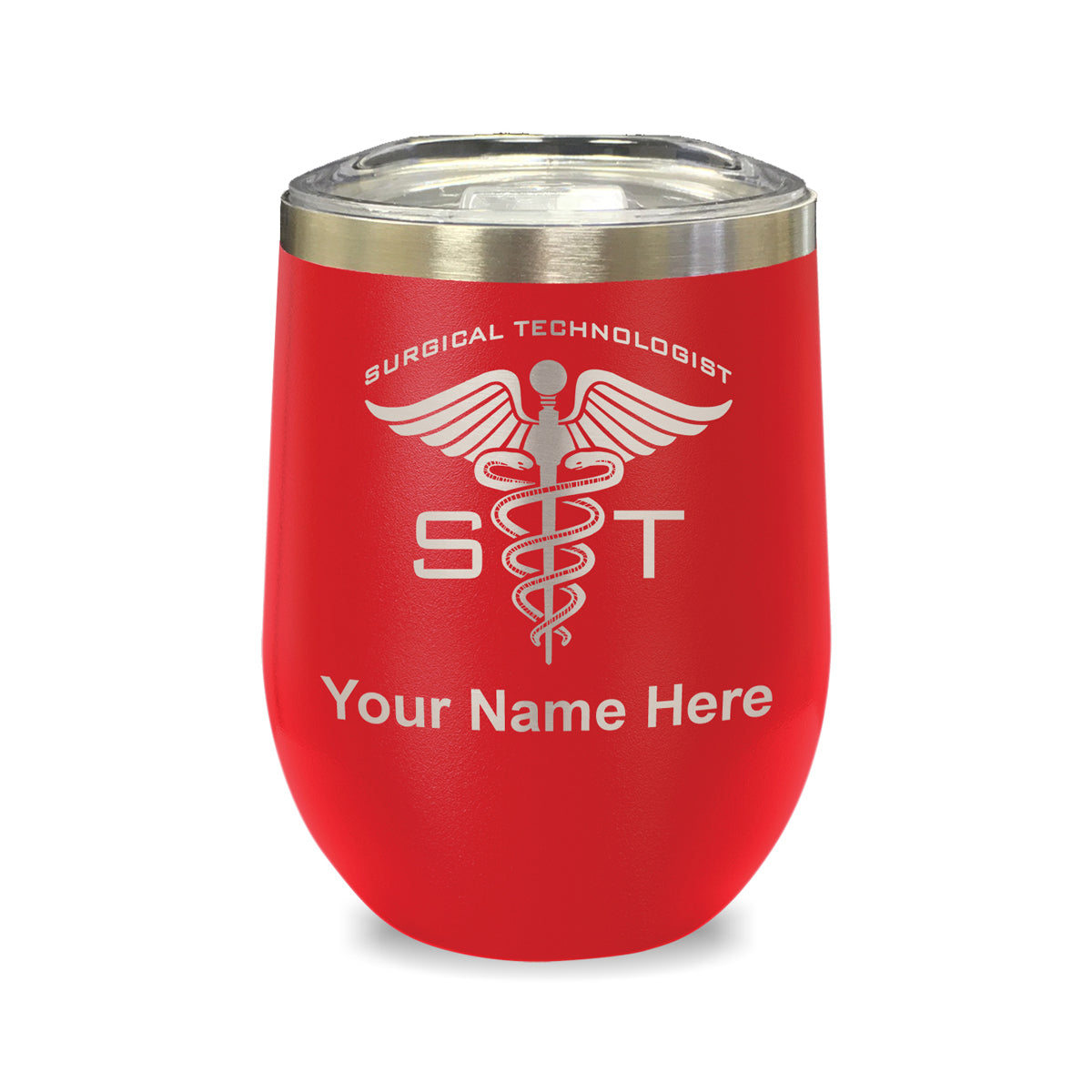 LaserGram Double Wall Stainless Steel Wine Glass, ST Surgical Technologist, Personalized Engraving Included