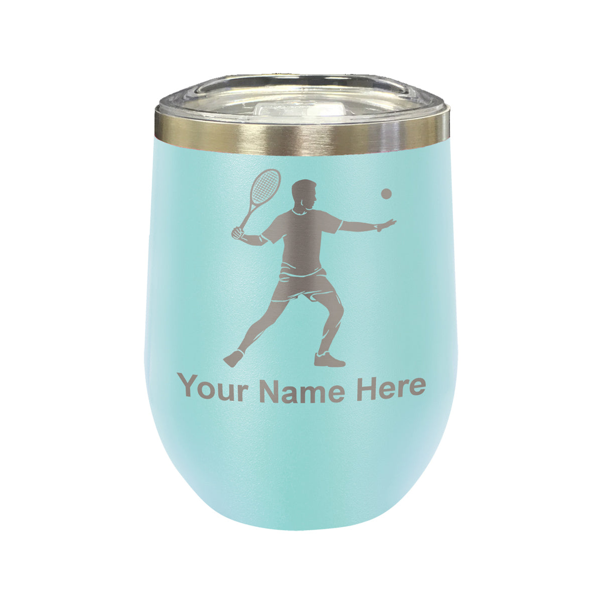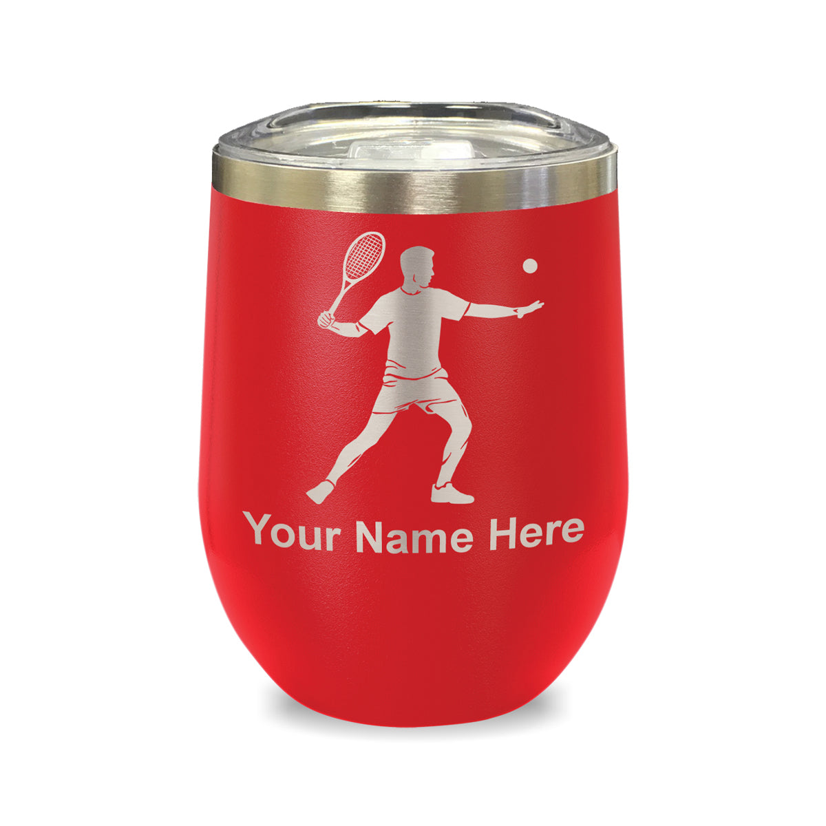 LaserGram Double Wall Stainless Steel Wine Glass, Tennis Player Man, Personalized Engraving Included