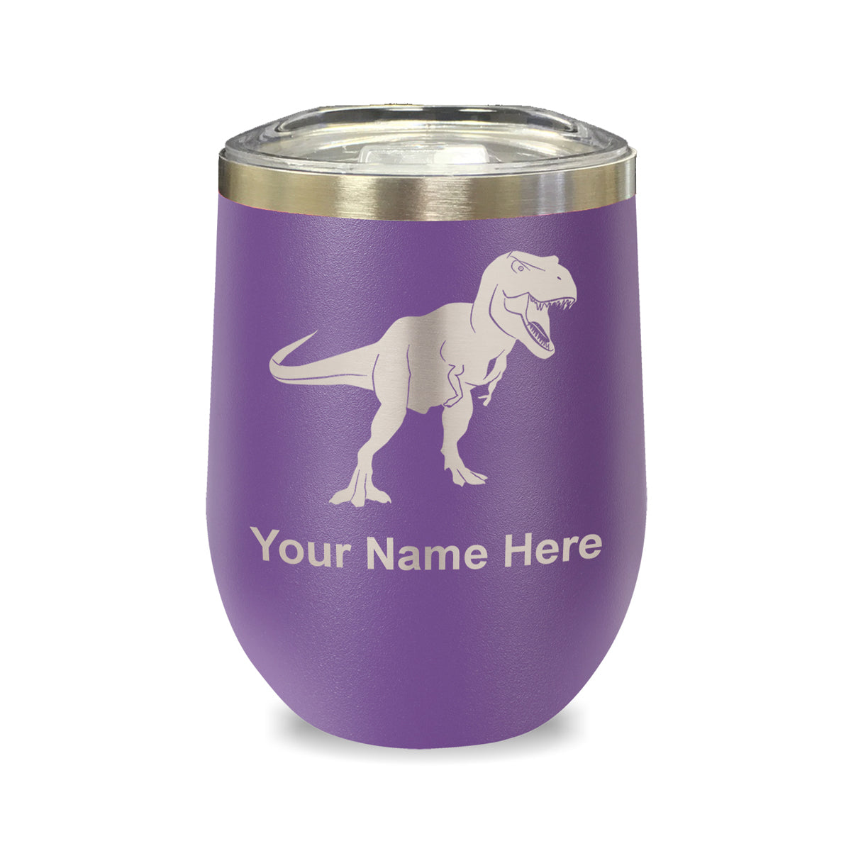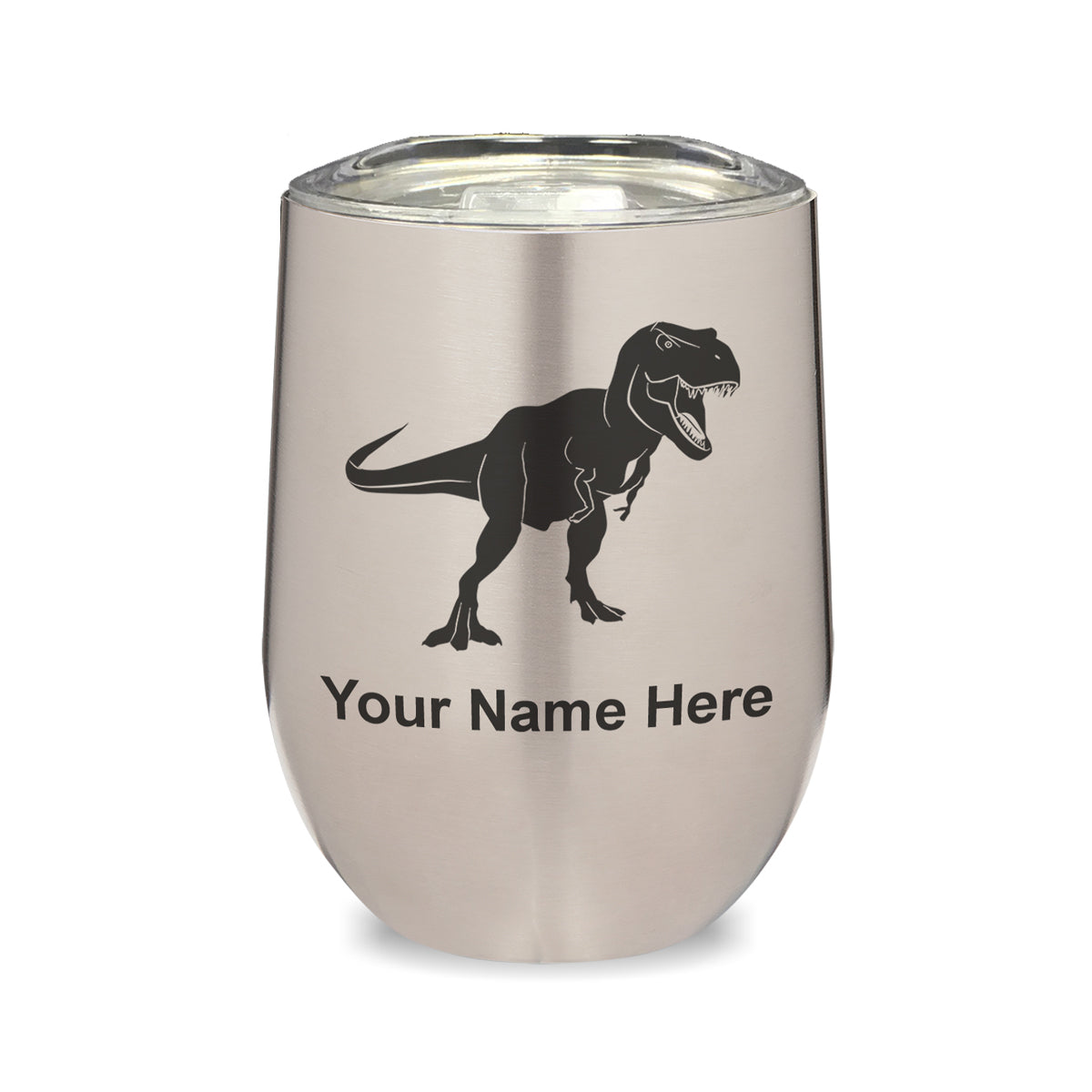 LaserGram Double Wall Stainless Steel Wine Glass, Tyrannosaurus Rex Dinosaur, Personalized Engraving Included