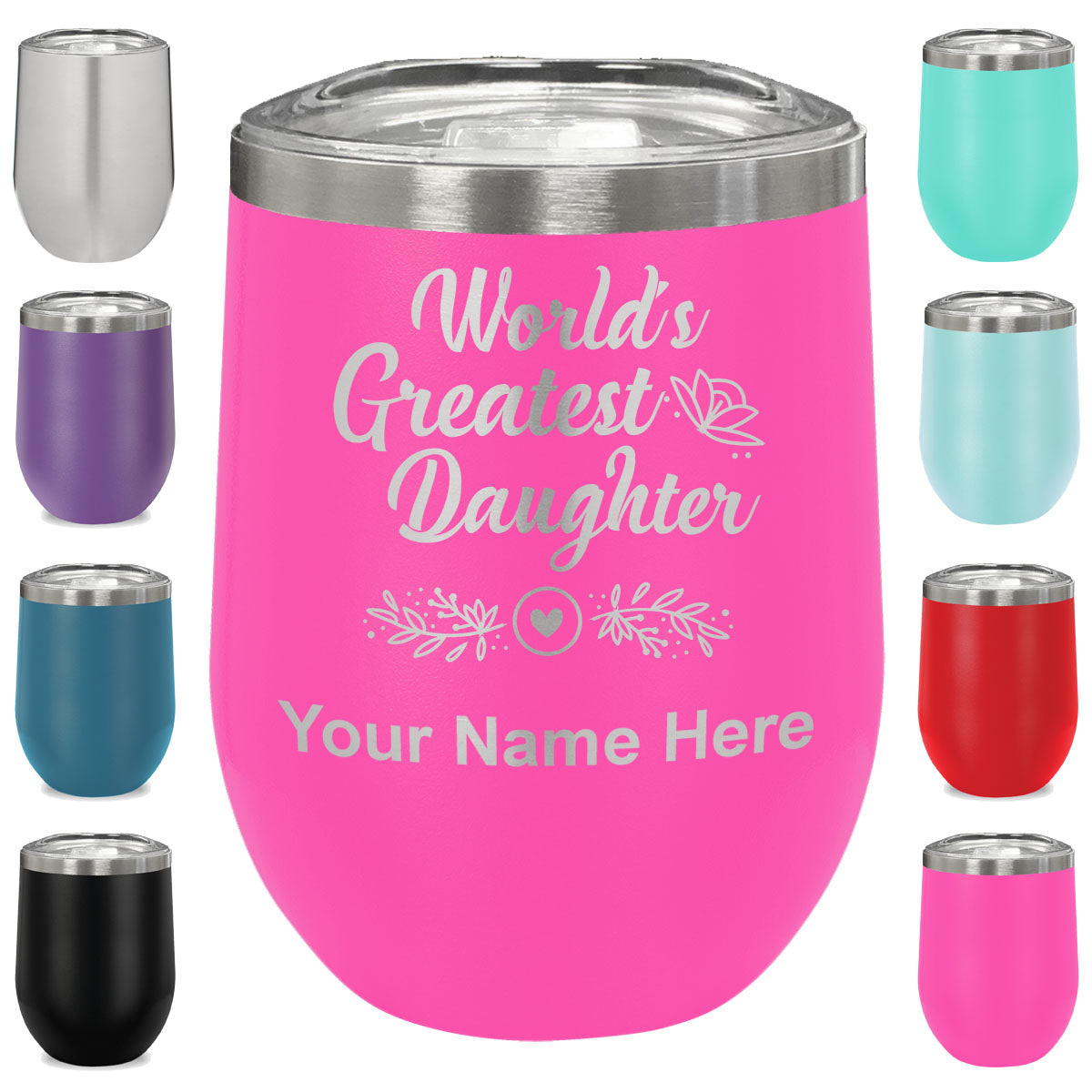 LaserGram Double Wall Stainless Steel Wine Glass, World's Greatest Daughter, Personalized Engraving Included