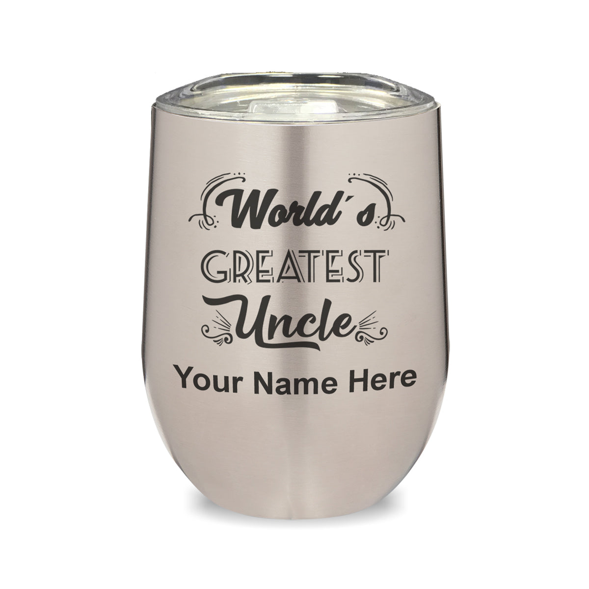 LaserGram Double Wall Stainless Steel Wine Glass, World's Greatest Uncle, Personalized Engraving Included