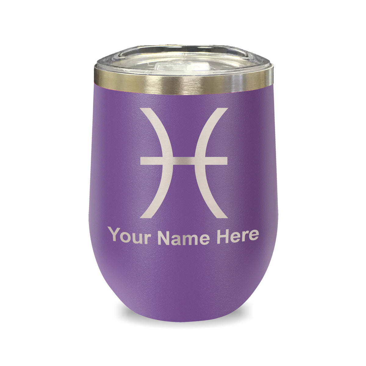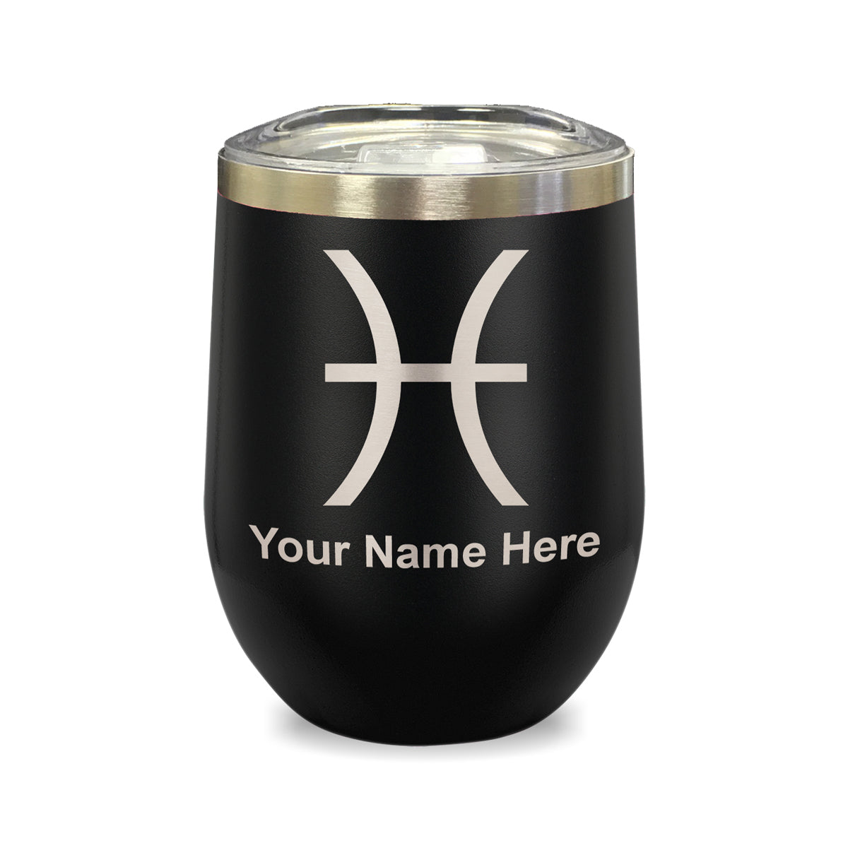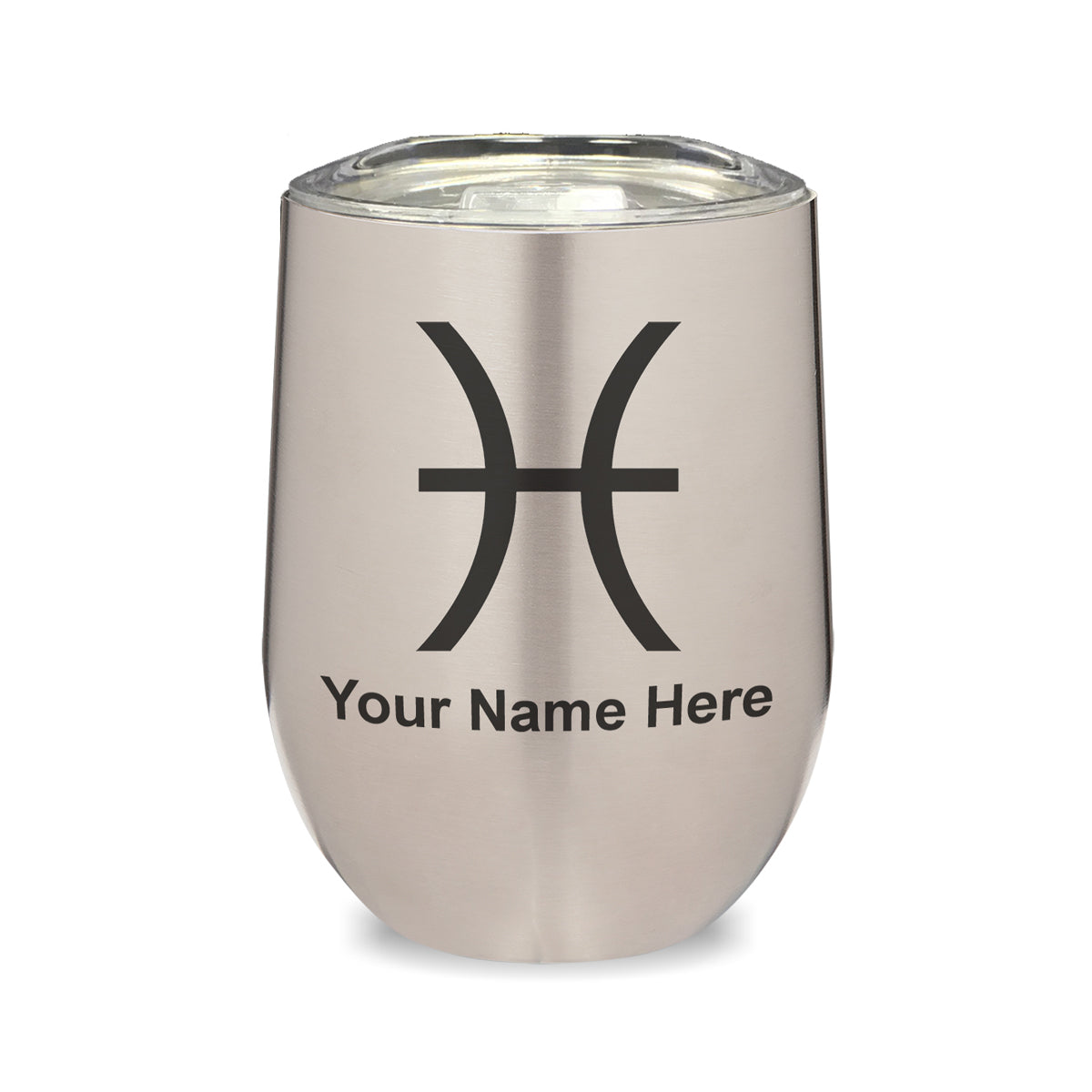 LaserGram Double Wall Stainless Steel Wine Glass, Zodiac Sign Pisces, Personalized Engraving Included