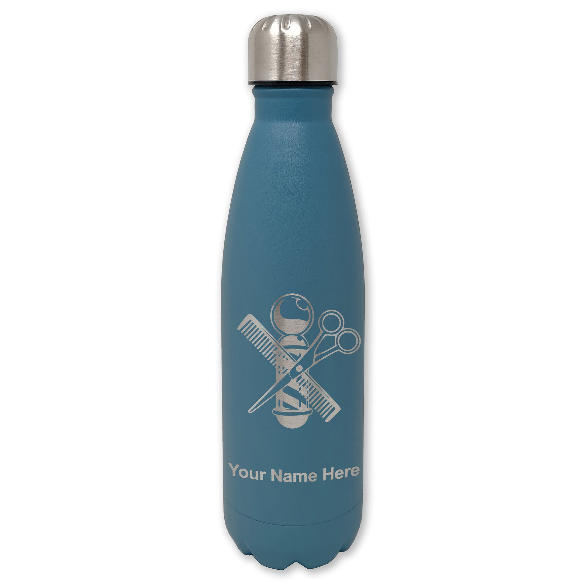 LaserGram Double Wall Water Bottle, Barber Shop Pole, Personalized Engraving Included