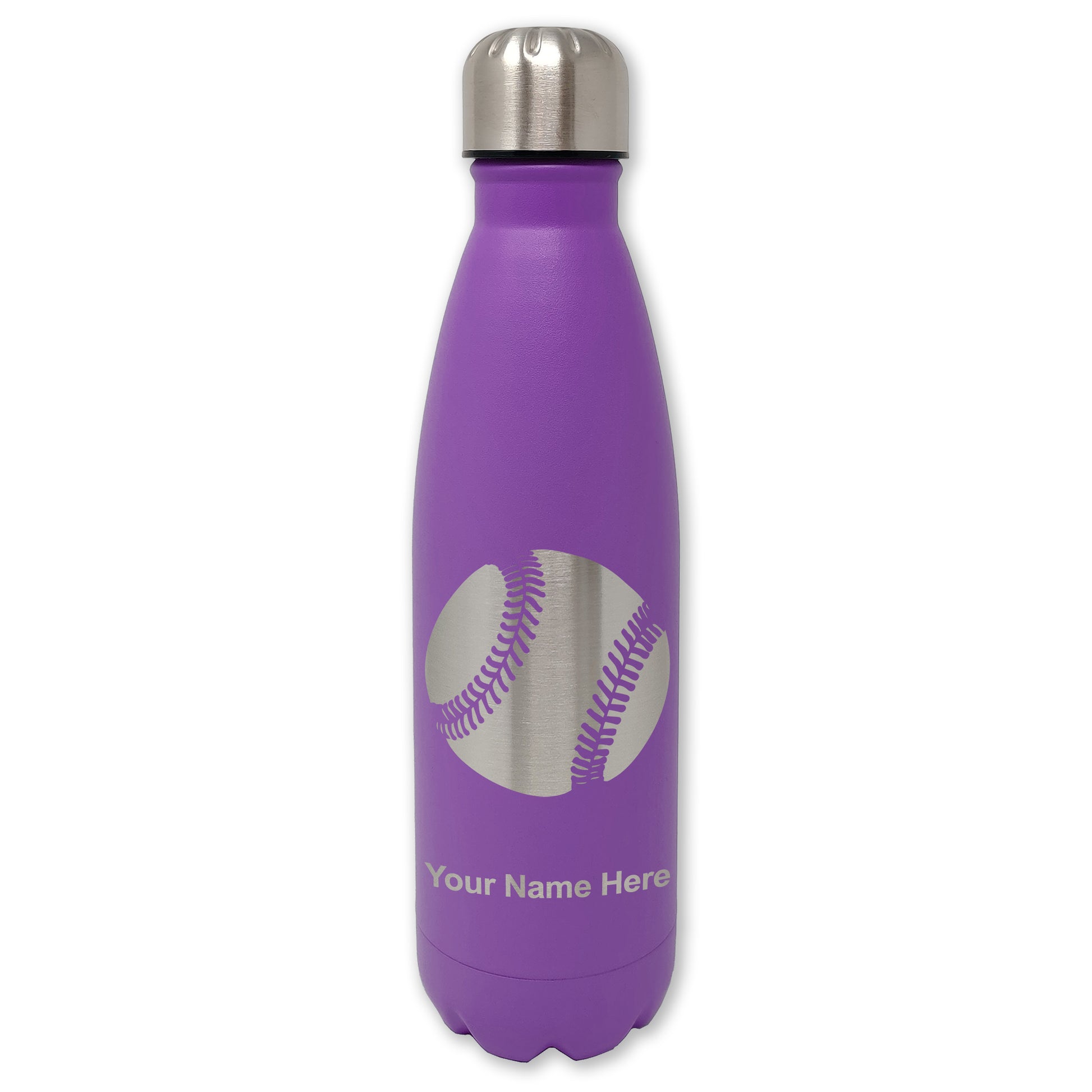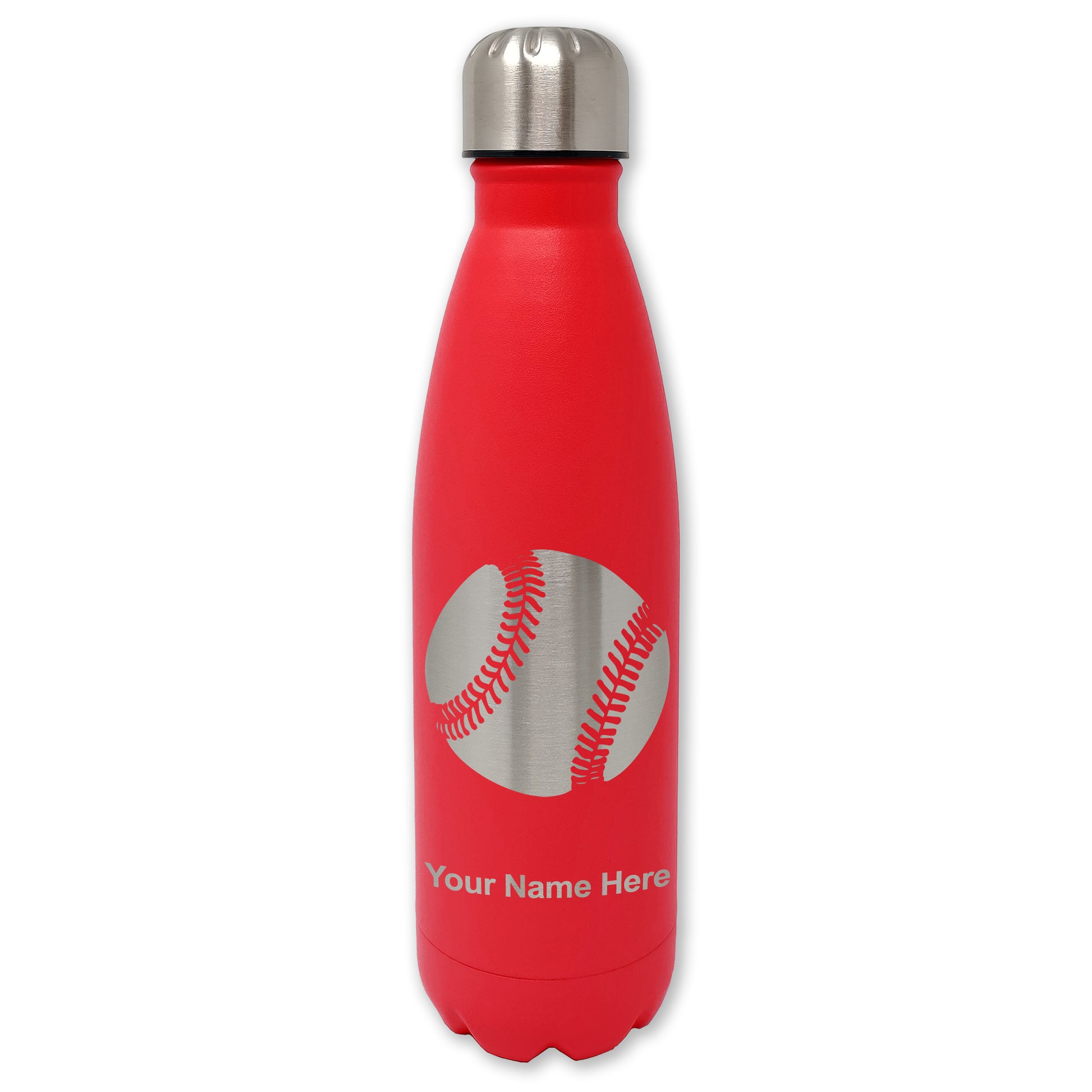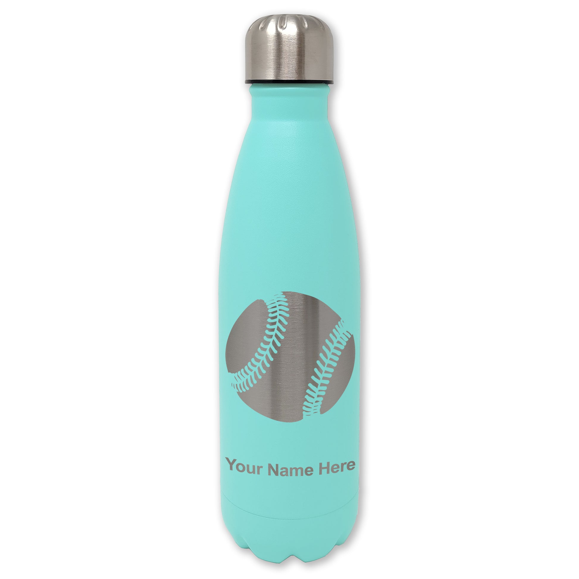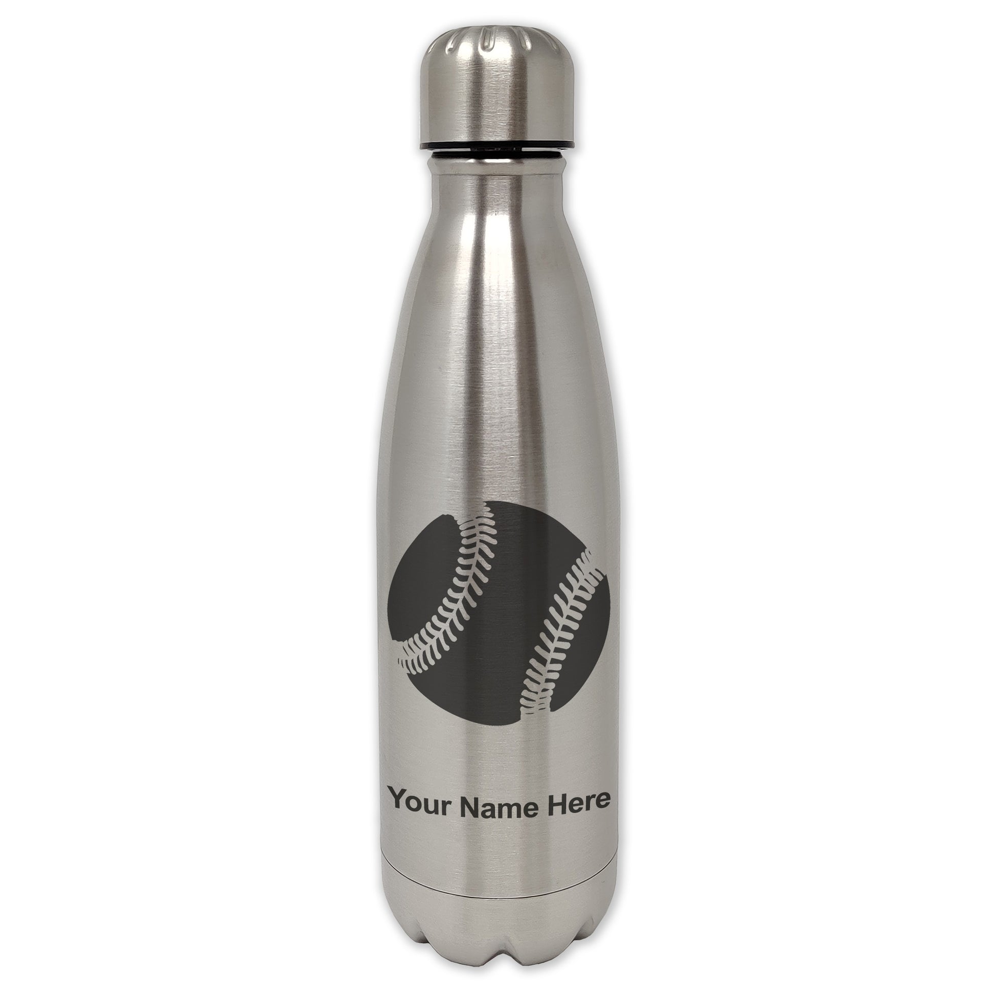 LaserGram Double Wall Water Bottle, Baseball Ball, Personalized Engraving Included