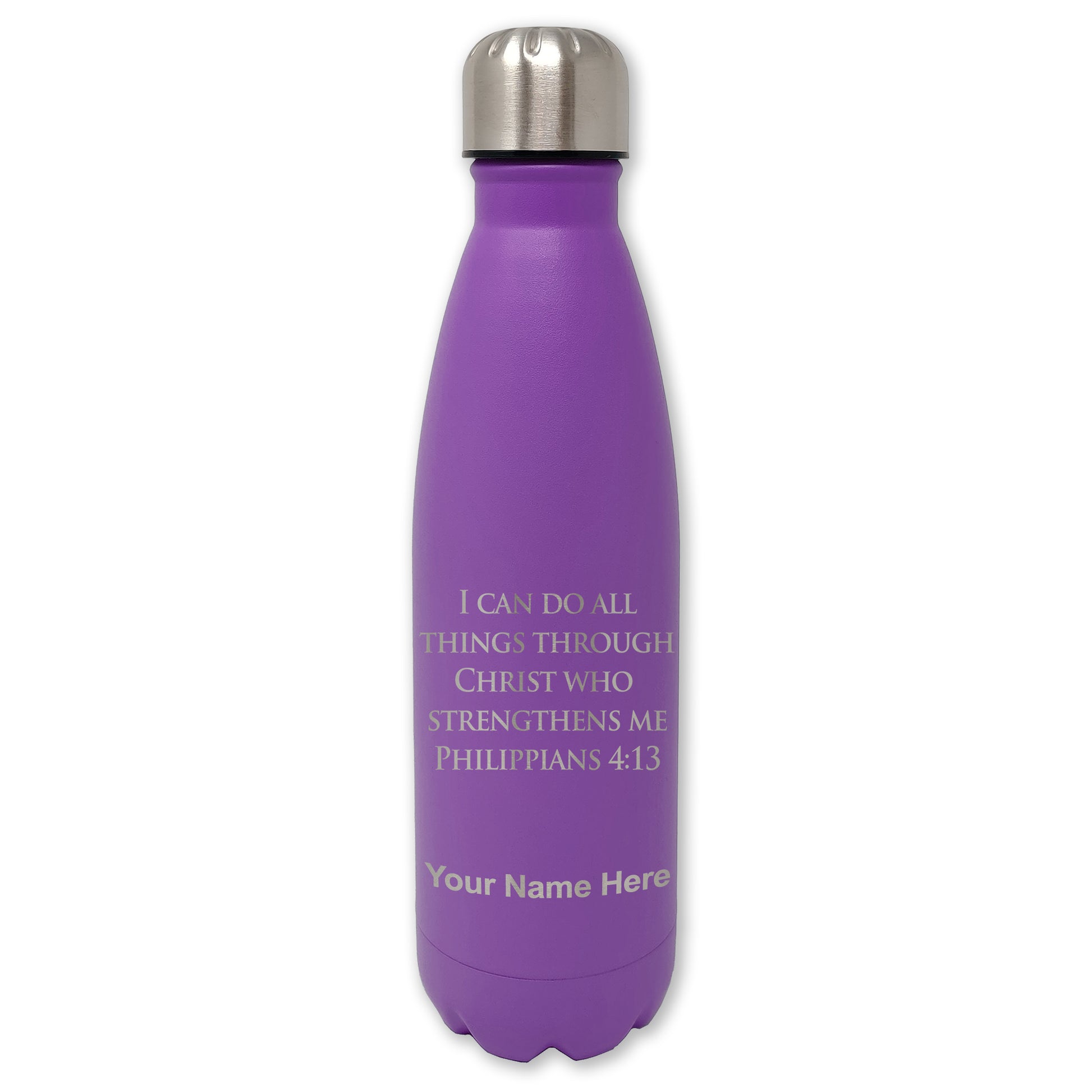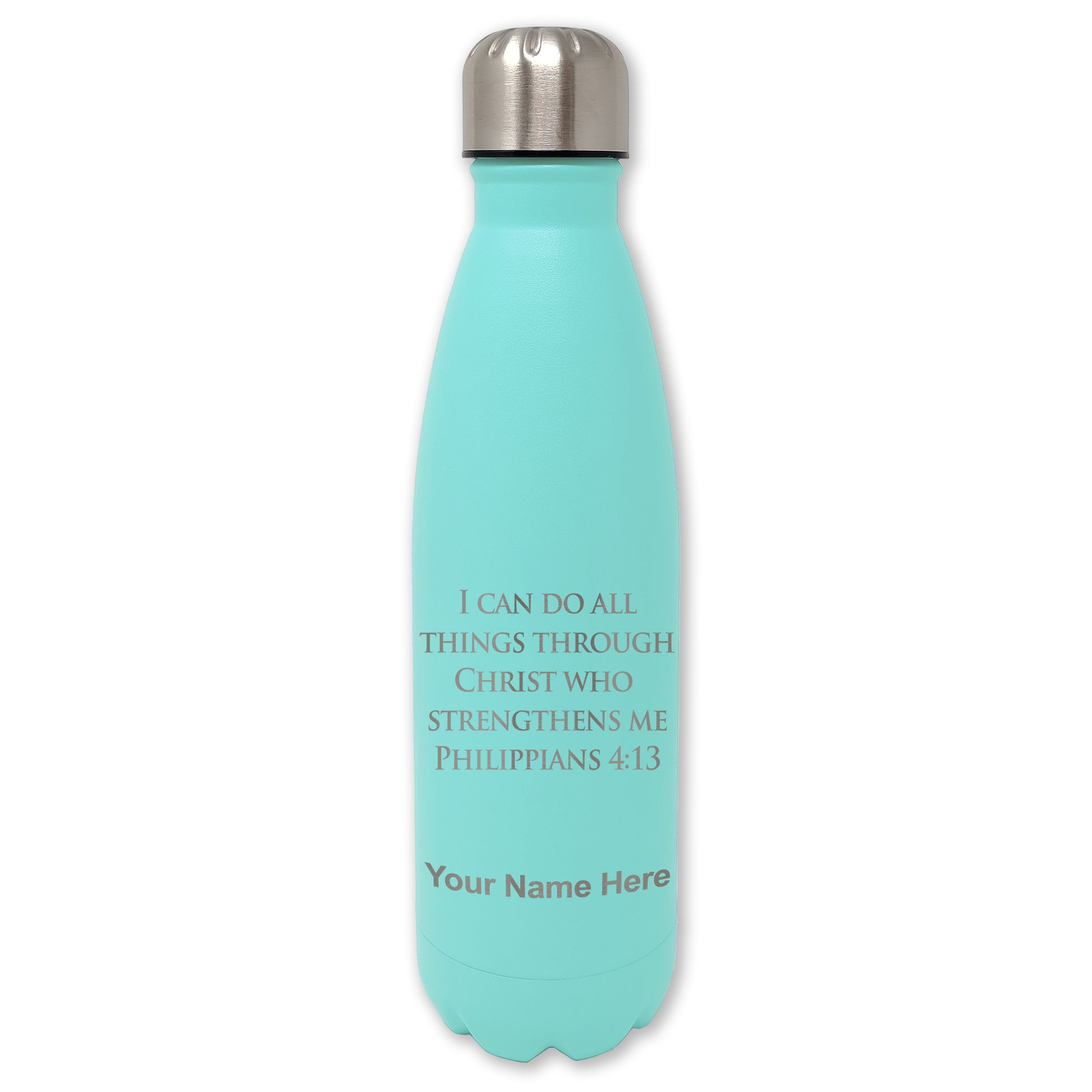 LaserGram Double Wall Water Bottle, Bible Verse Philippians 4-13, Personalized Engraving Included