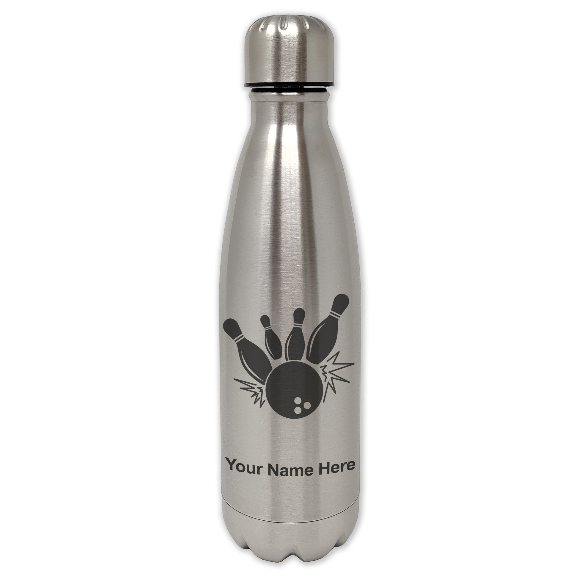 LaserGram Double Wall Water Bottle, Bowling Ball and Pins, Personalized Engraving Included