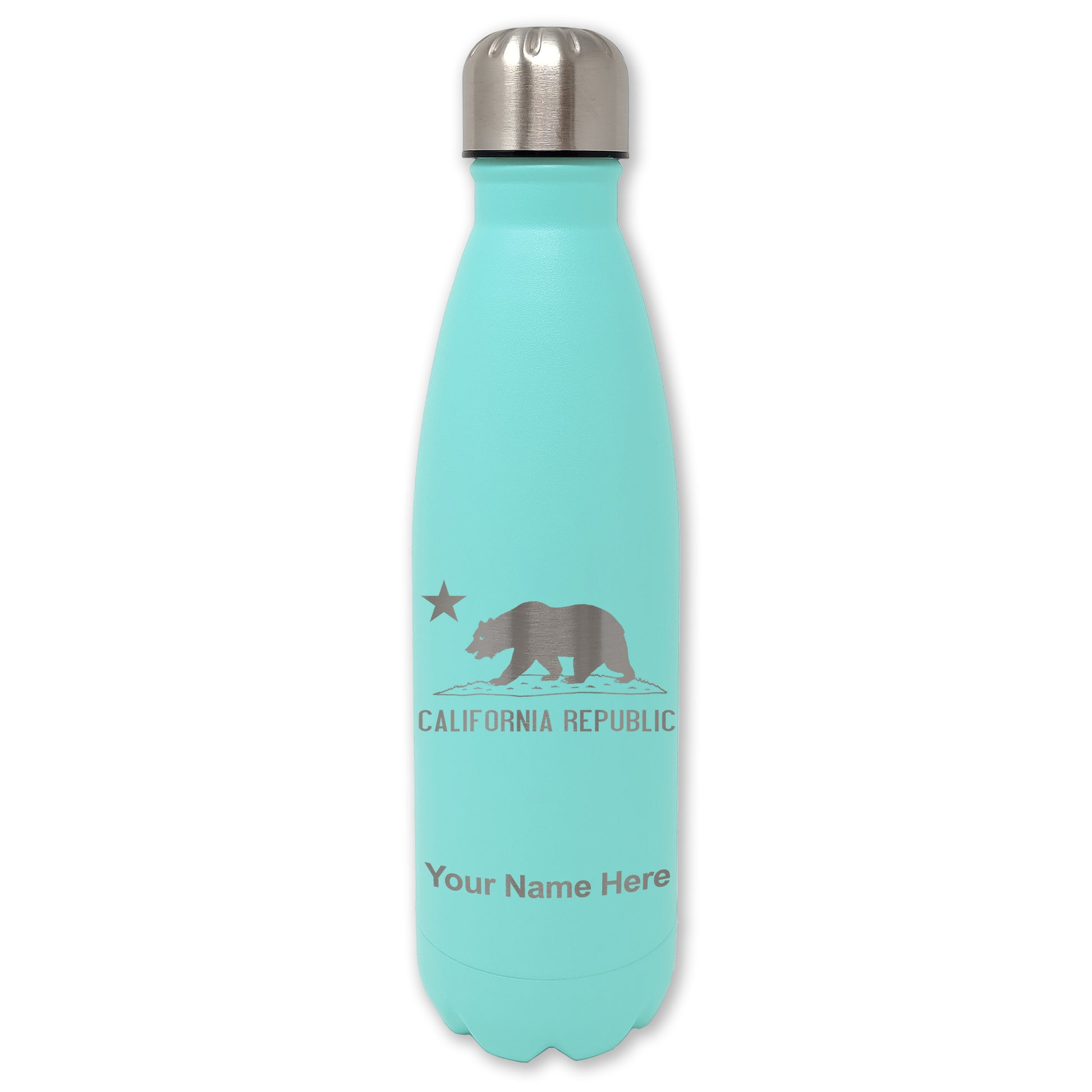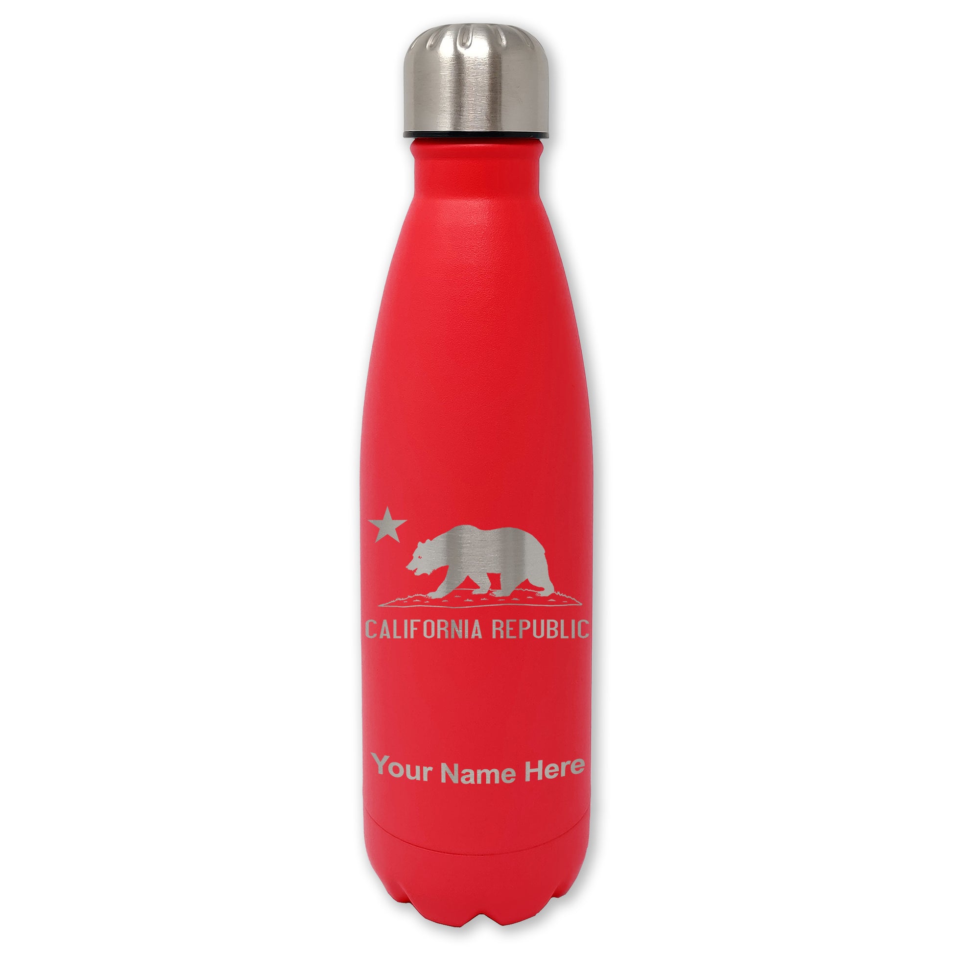 LaserGram Double Wall Water Bottle, California Republic Bear Flag, Personalized Engraving Included