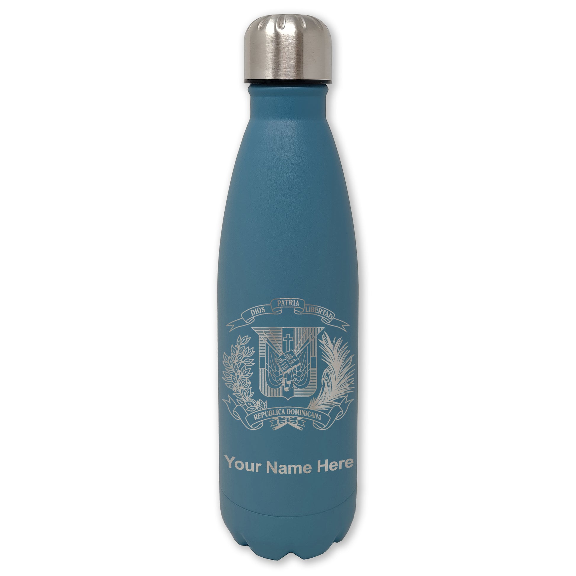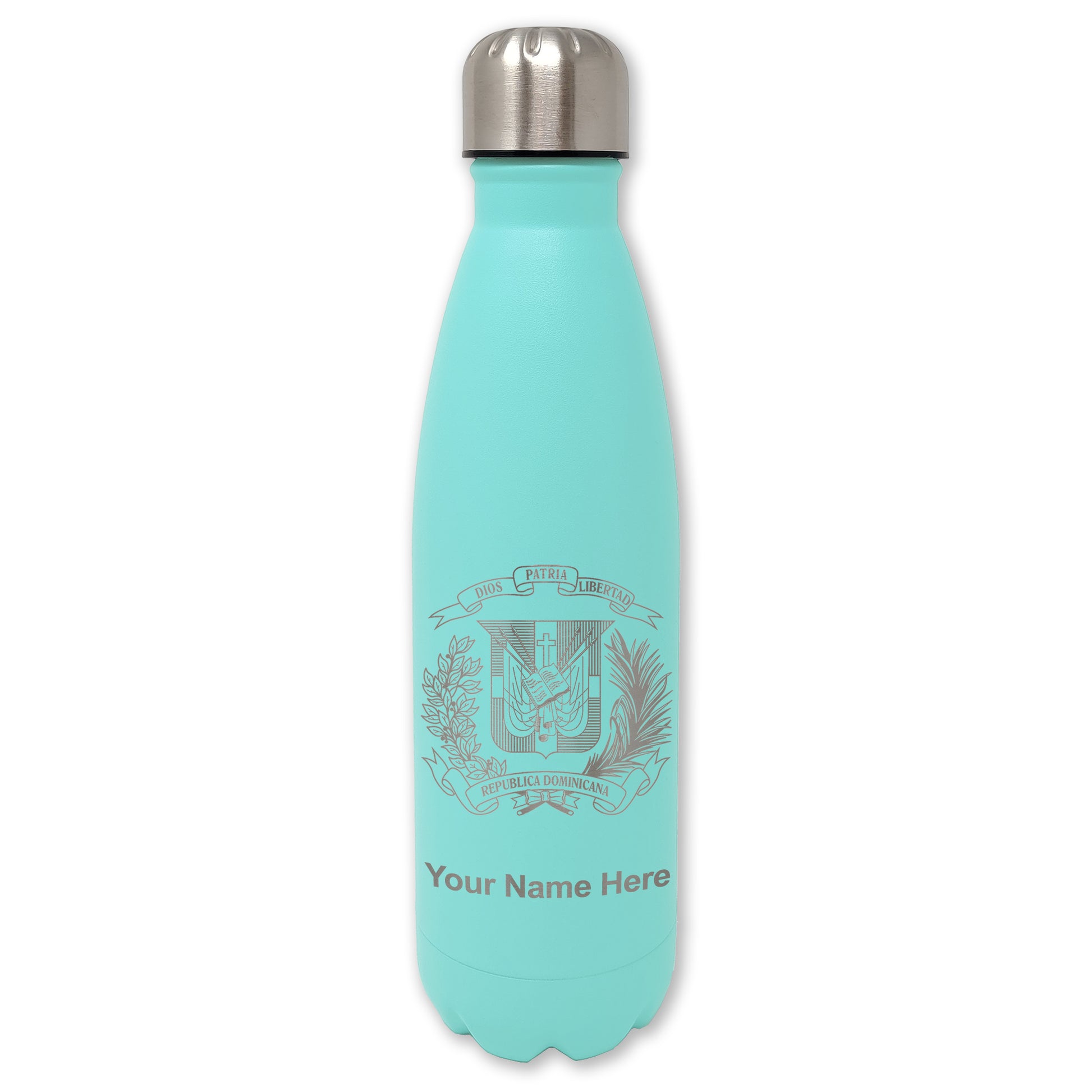 LaserGram Double Wall Water Bottle, Coat of Arms Dominican Republic, Personalized Engraving Included