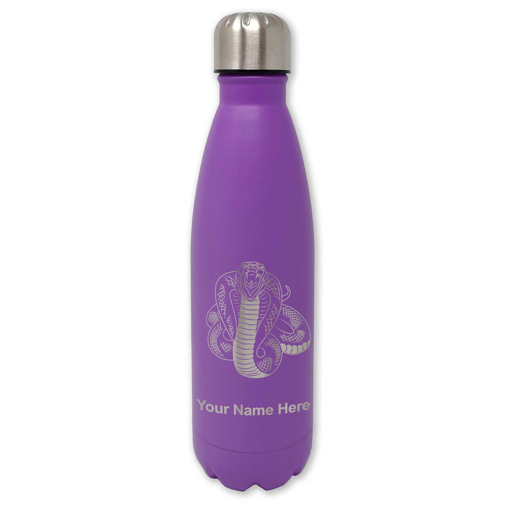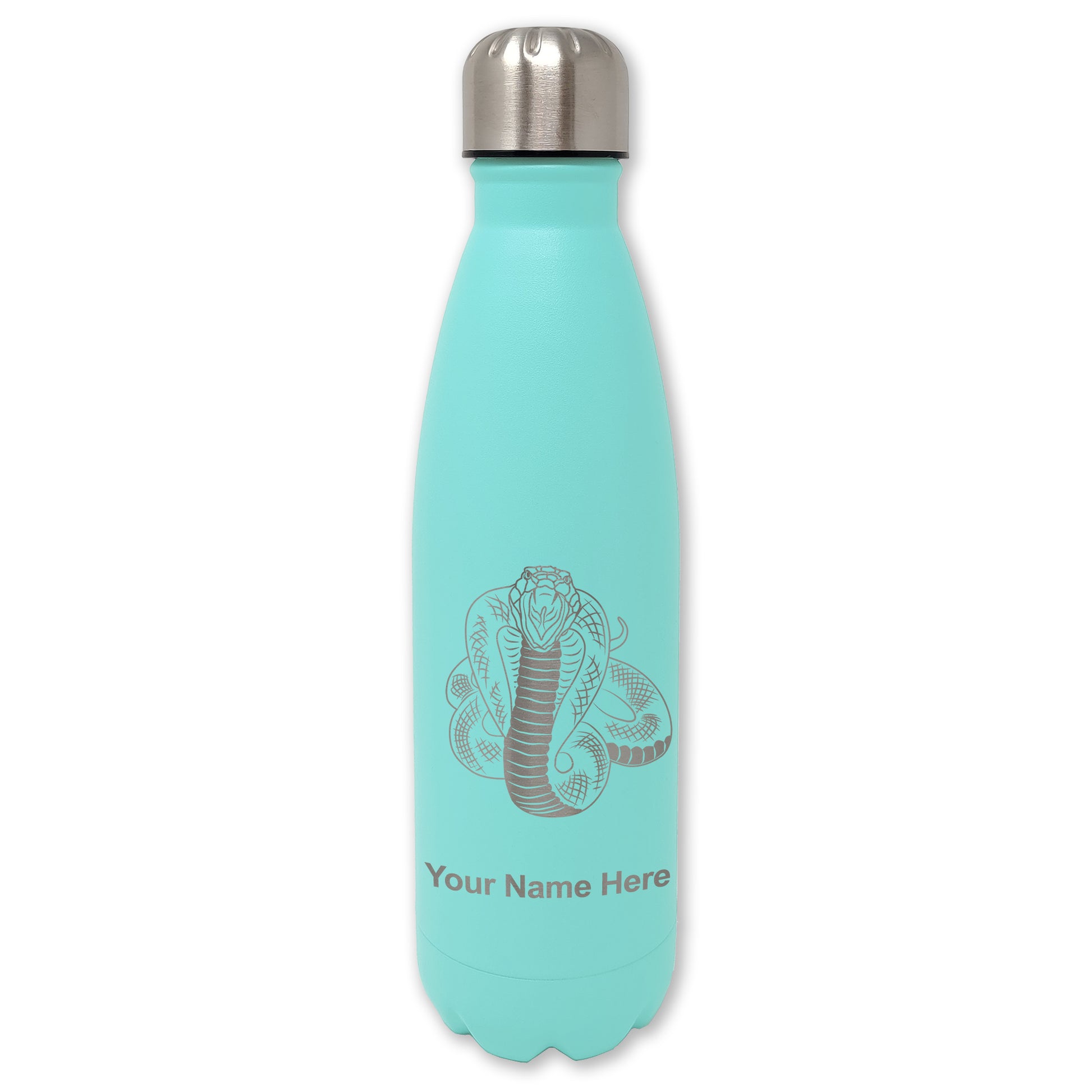 LaserGram Double Wall Water Bottle, Cobra Snake, Personalized Engraving Included