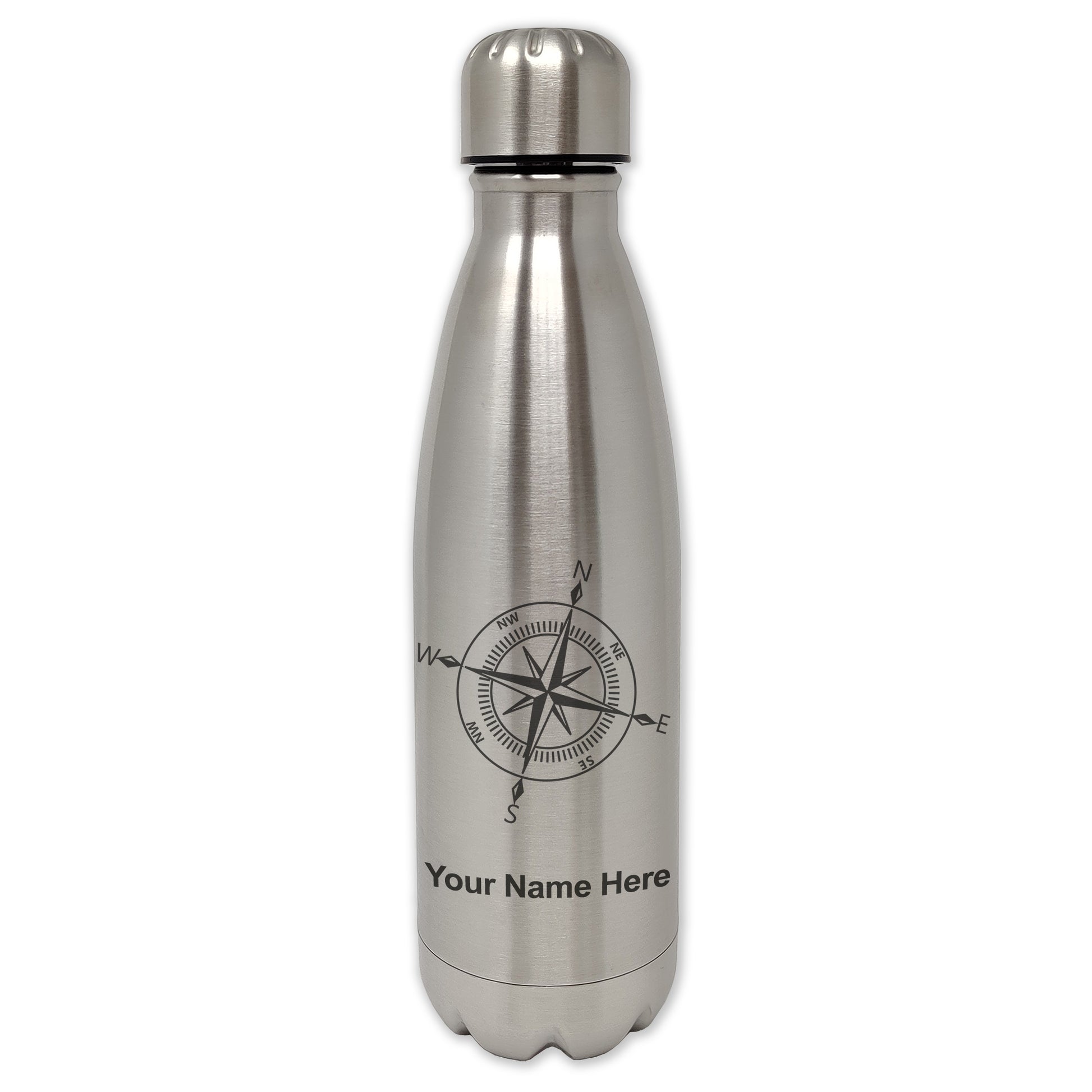 LaserGram Double Wall Water Bottle, Compass Rose, Personalized Engraving Included
