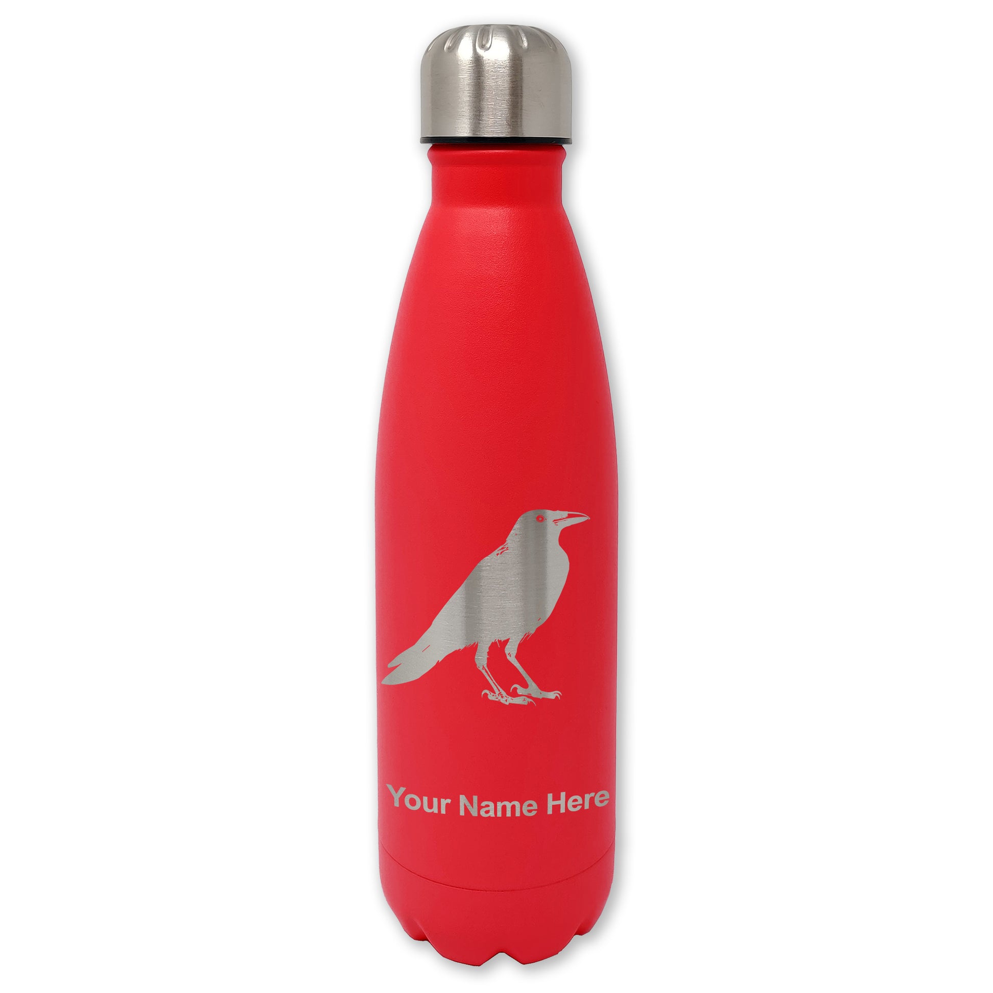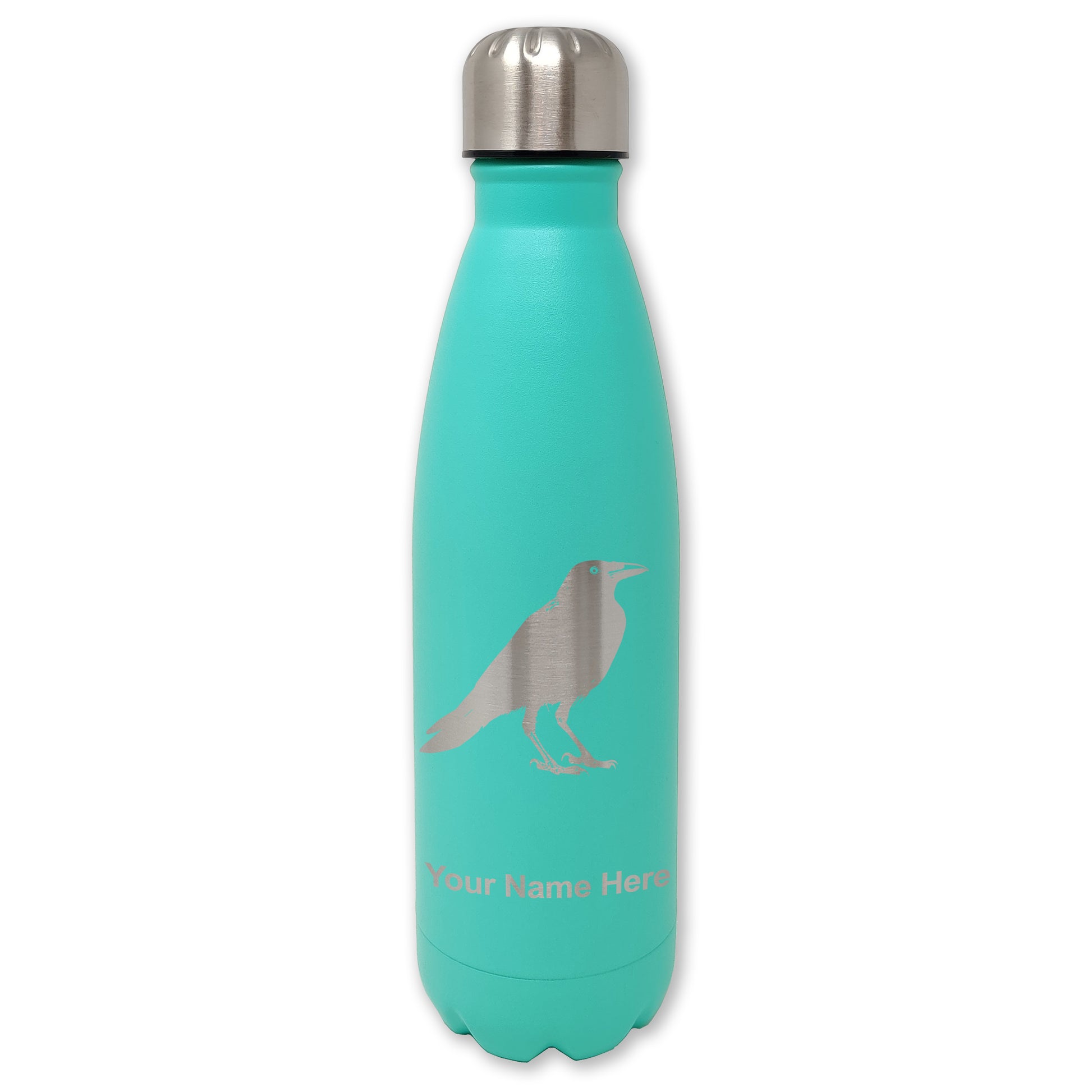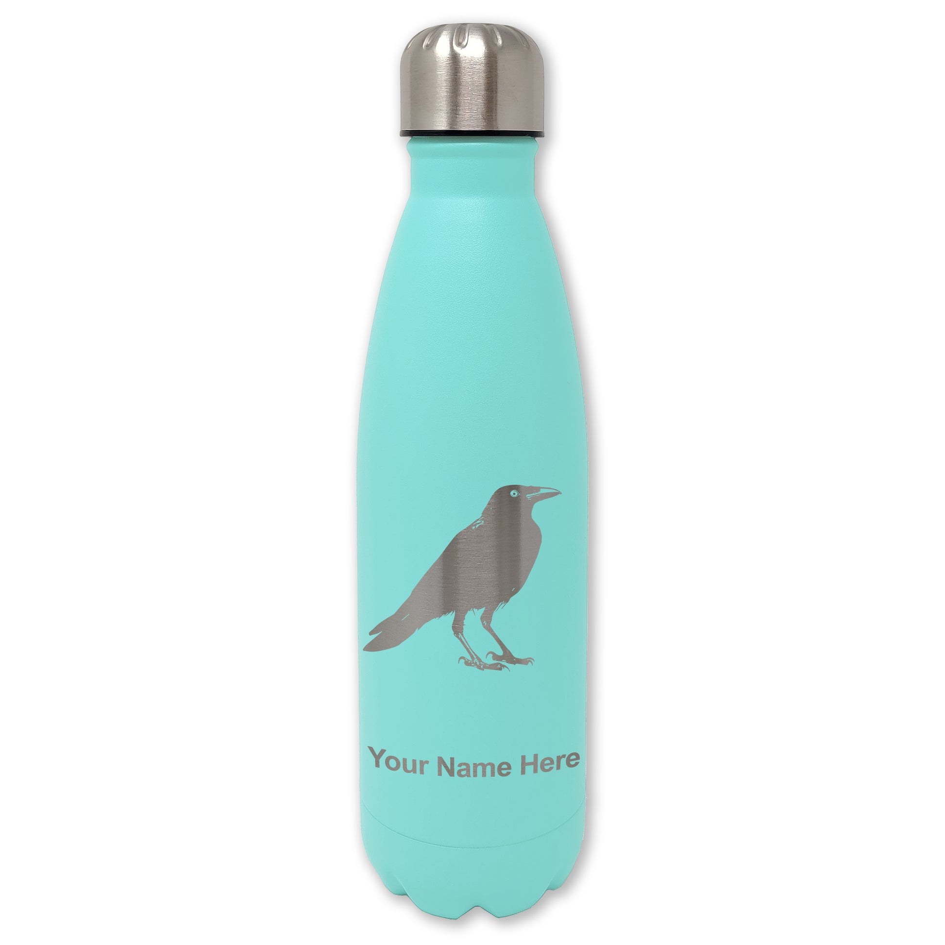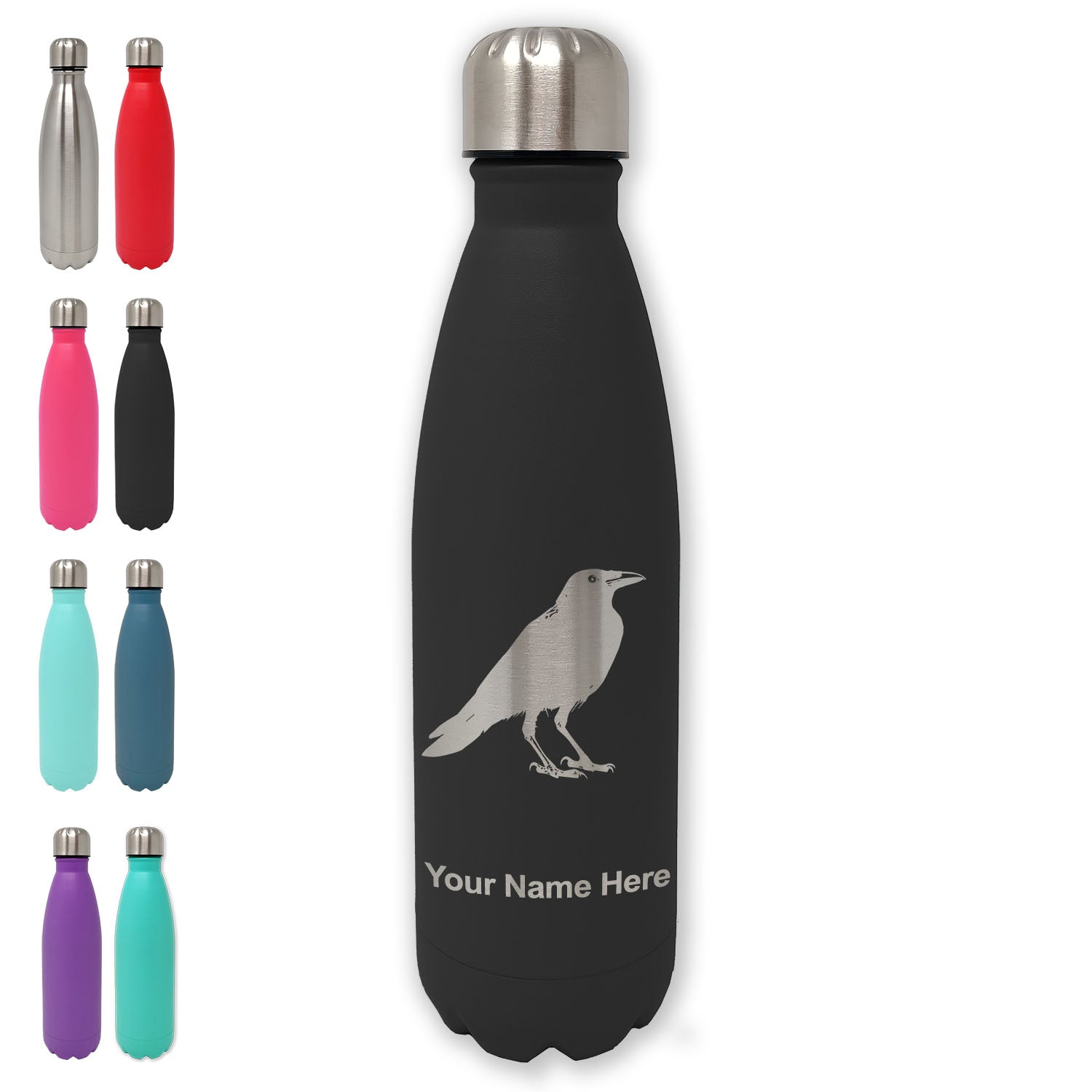 LaserGram Double Wall Water Bottle, Crow, Personalized Engraving Included