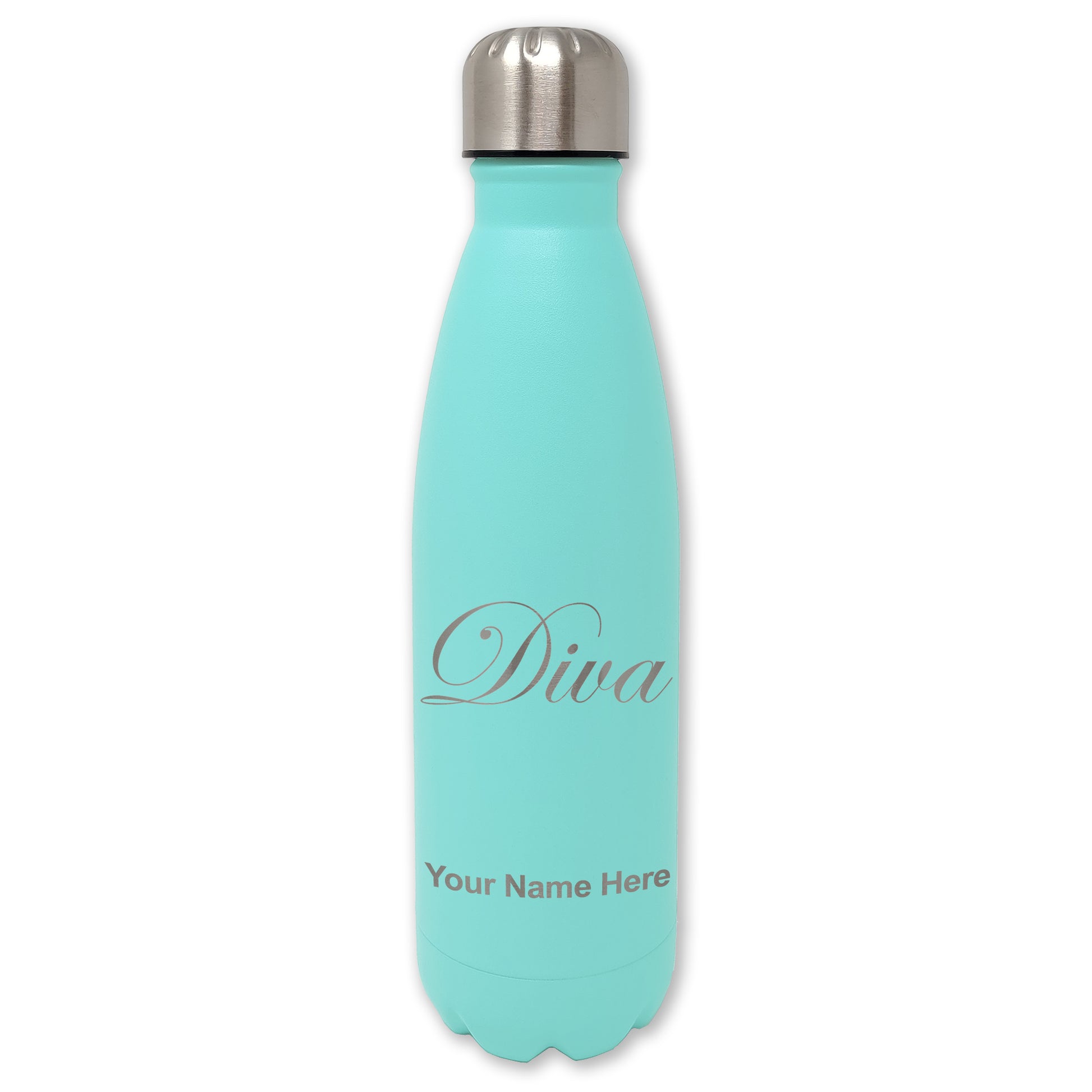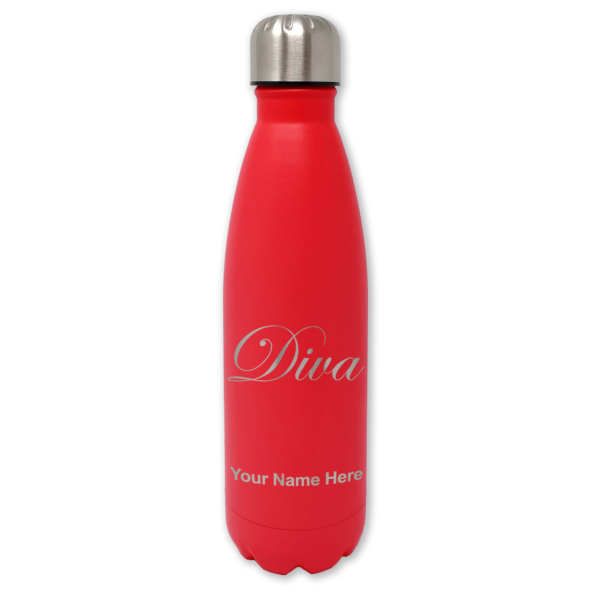 LaserGram Double Wall Water Bottle, Diva, Personalized Engraving Included