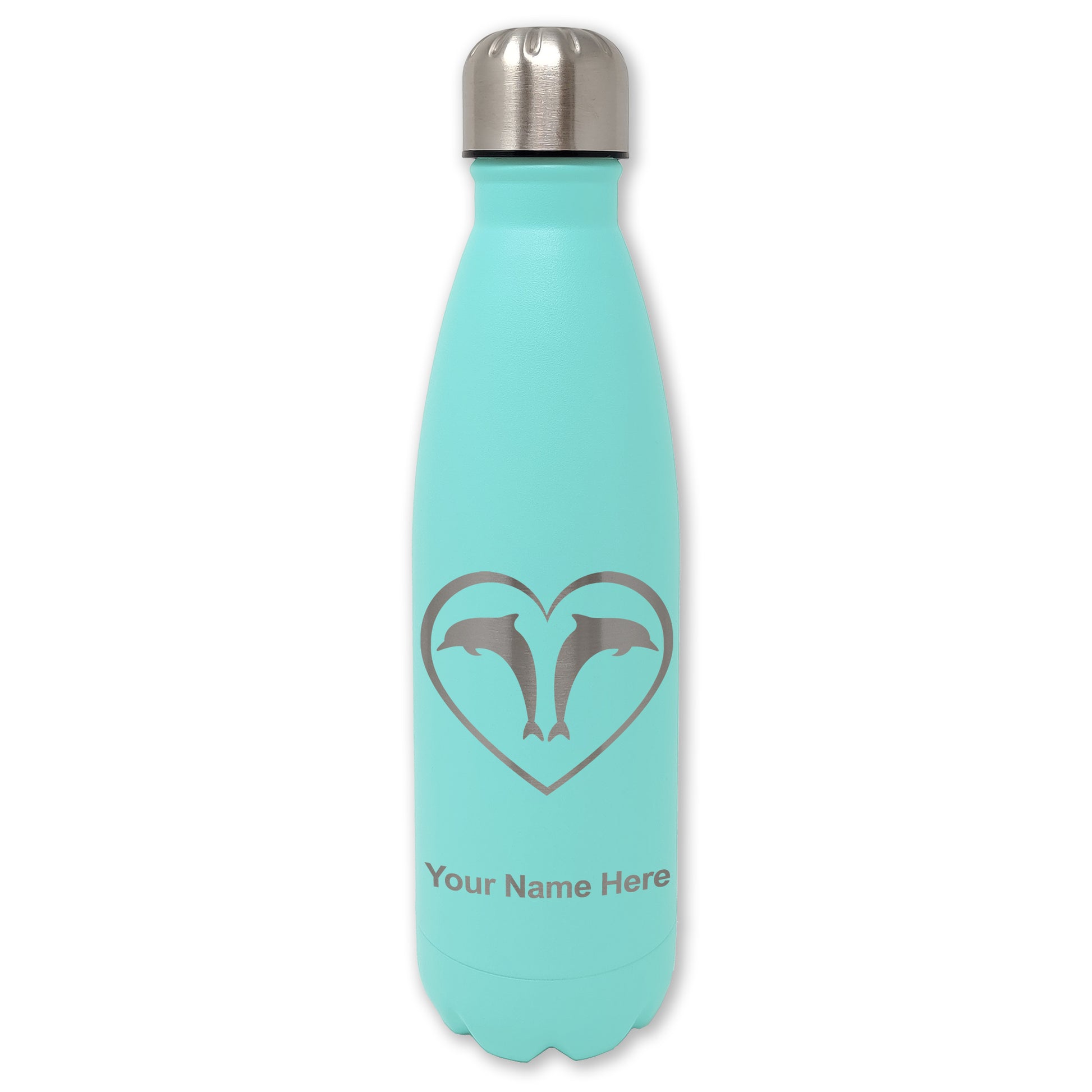 LaserGram Double Wall Water Bottle, Dolphin Heart, Personalized Engraving Included