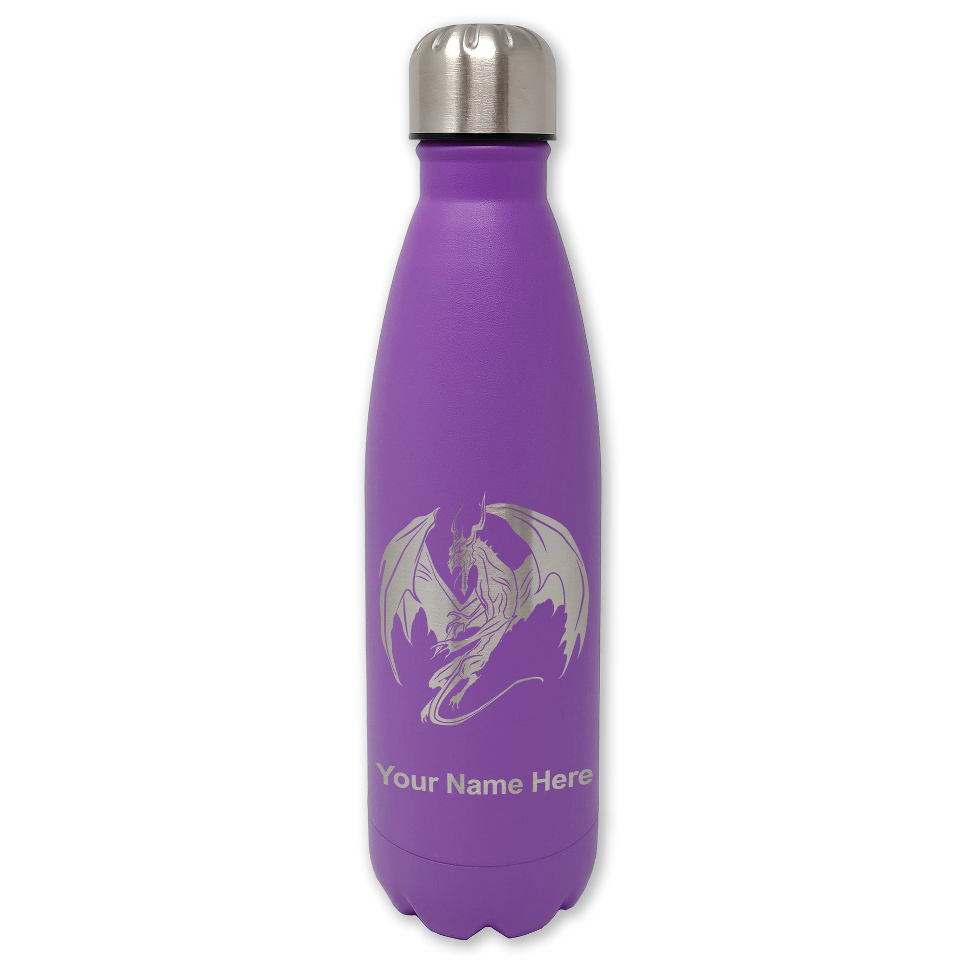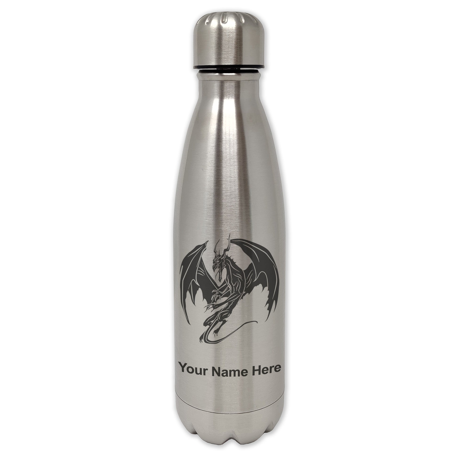 LaserGram Double Wall Water Bottle, Dragon, Personalized Engraving Included