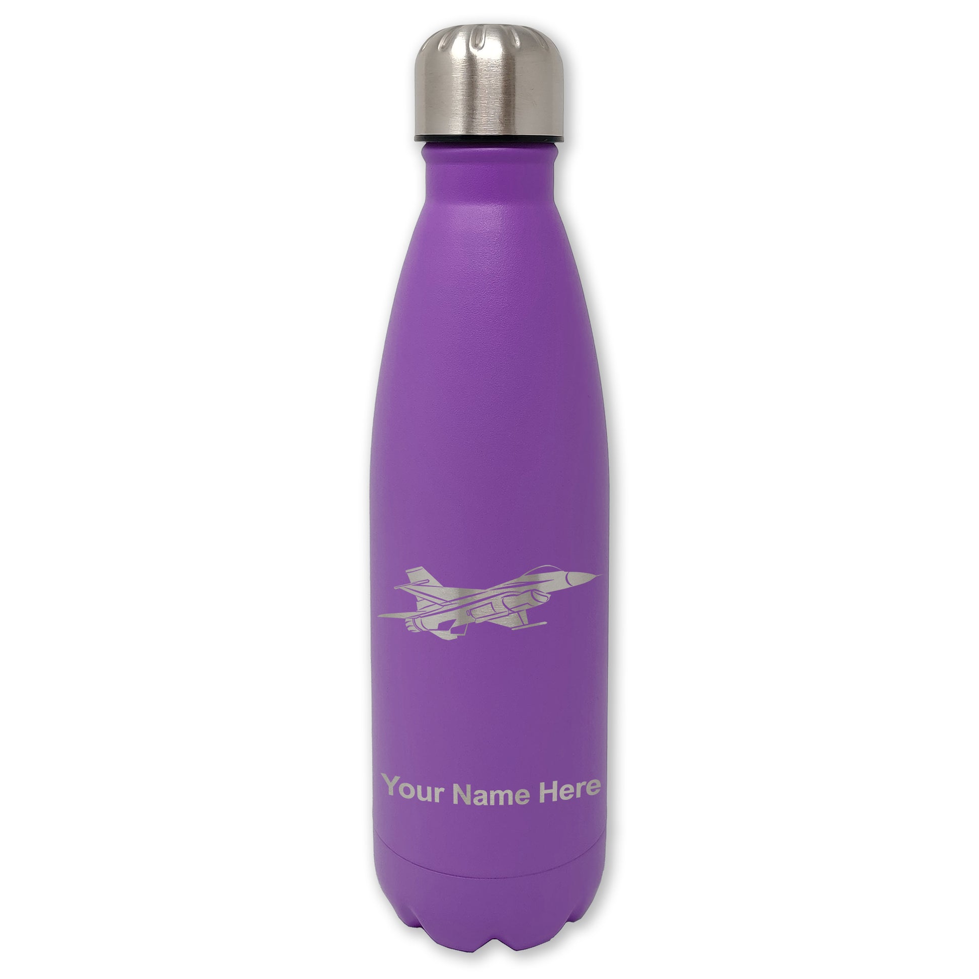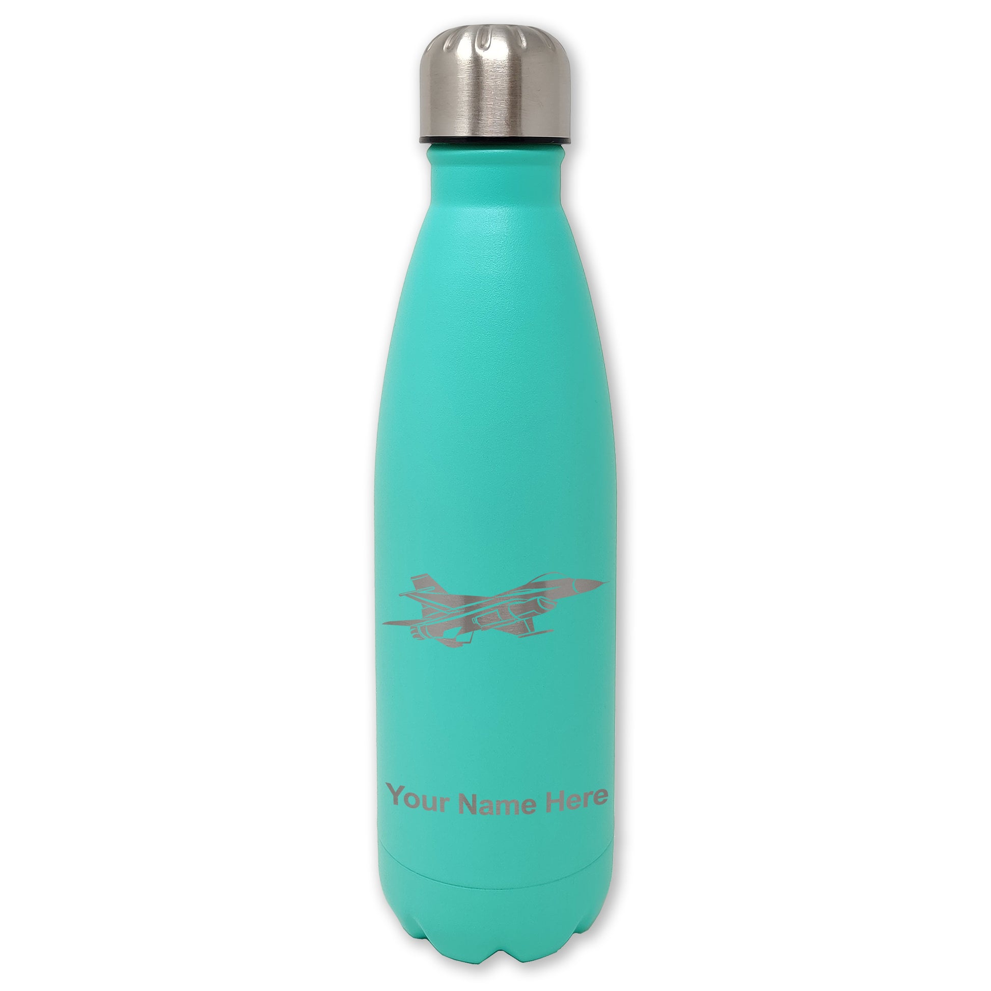 LaserGram Double Wall Water Bottle, Fighter Jet 1, Personalized Engraving Included