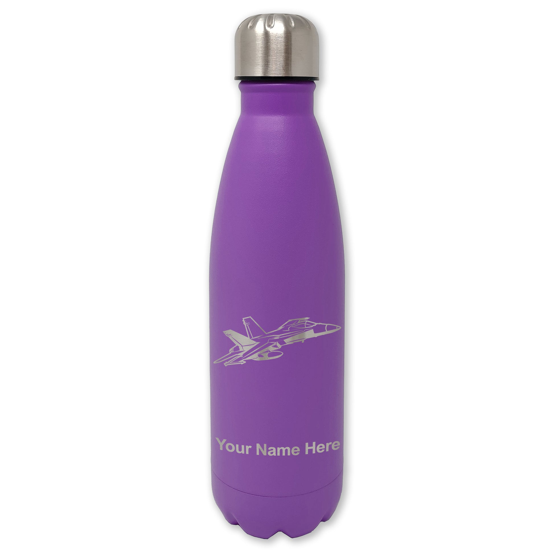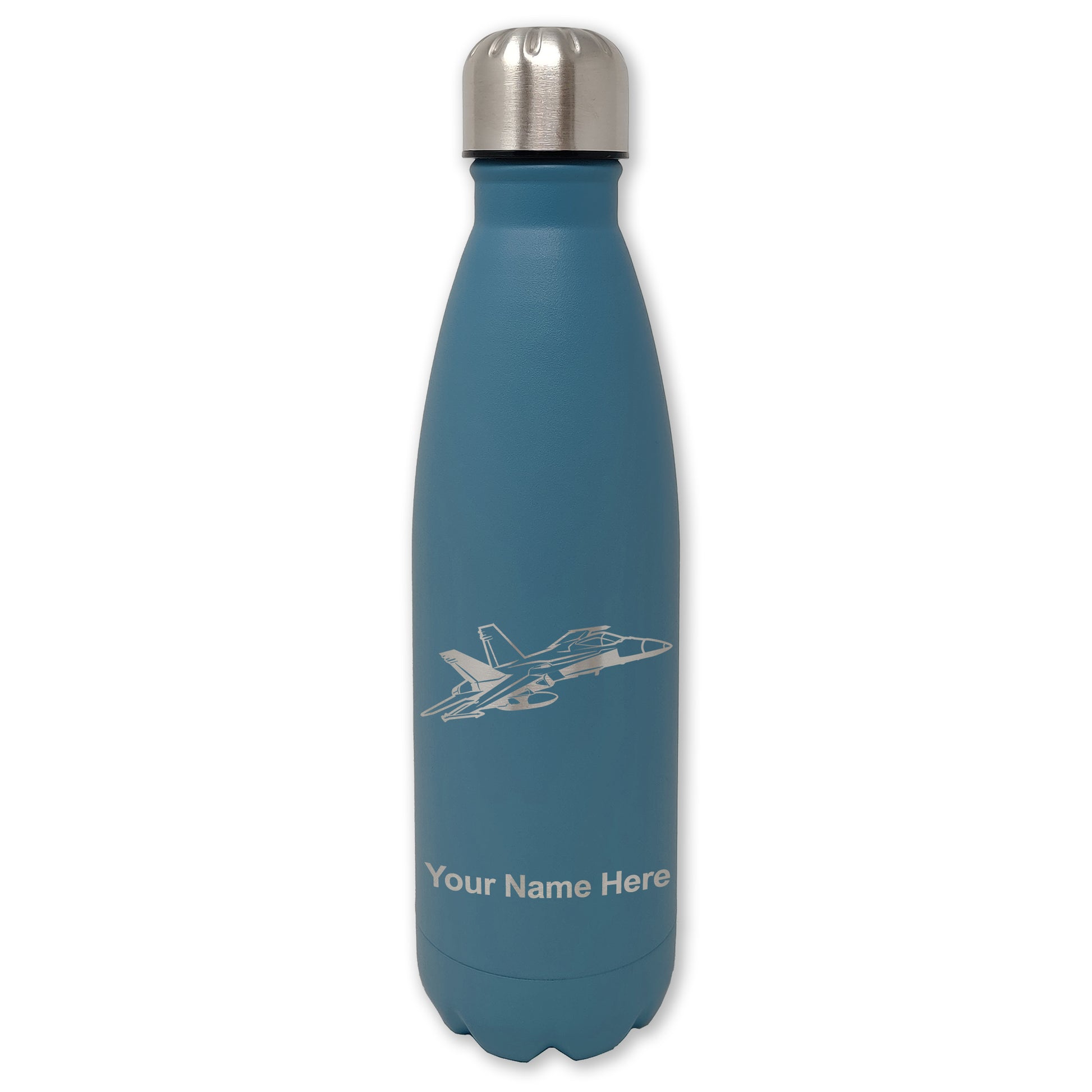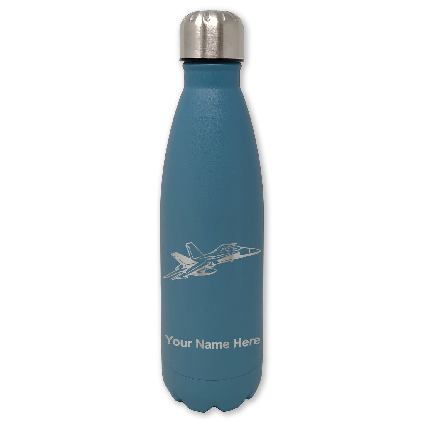 LaserGram Double Wall Water Bottle, Fighter Jet 2, Personalized Engraving Included
