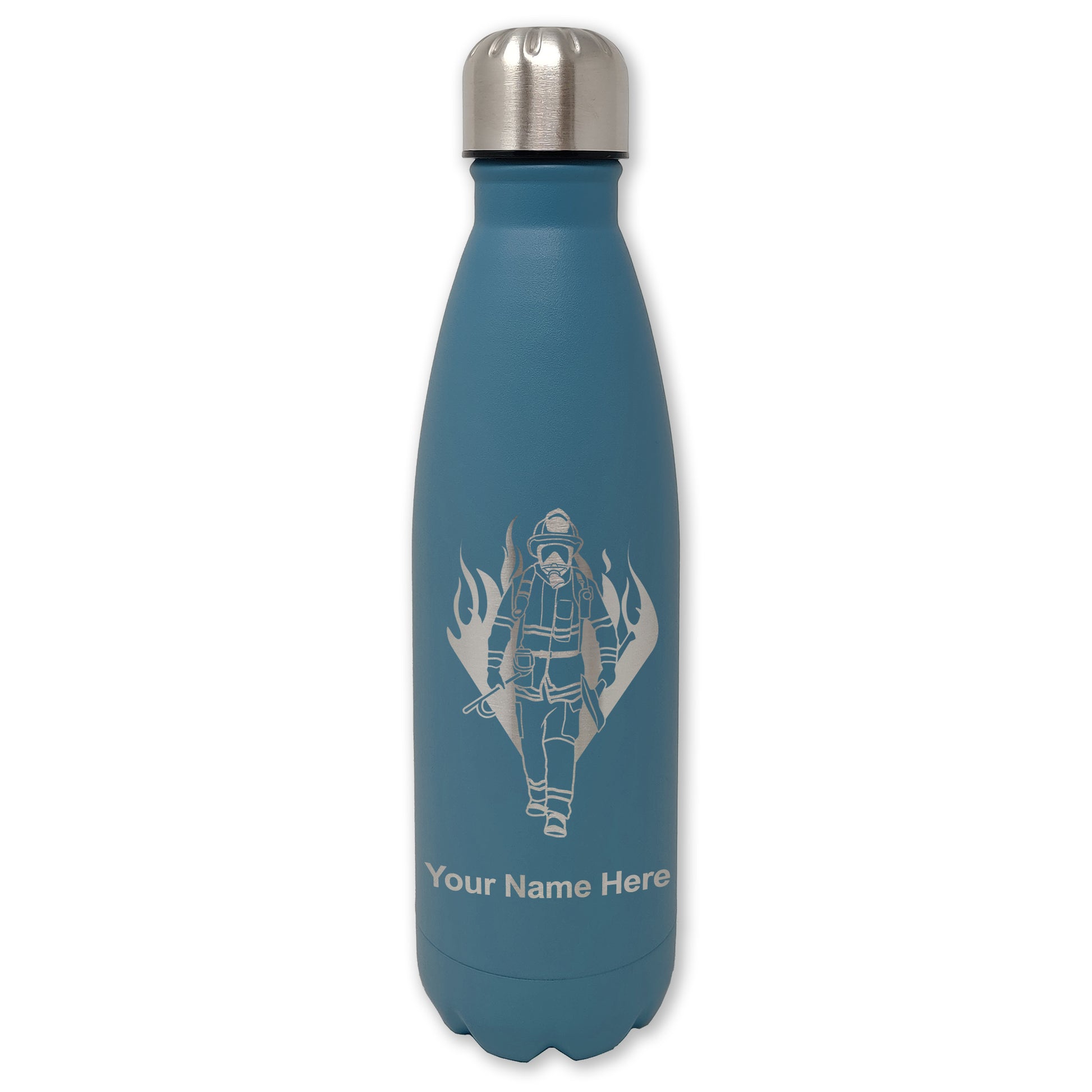 LaserGram Double Wall Water Bottle, Fireman, Personalized Engraving Included