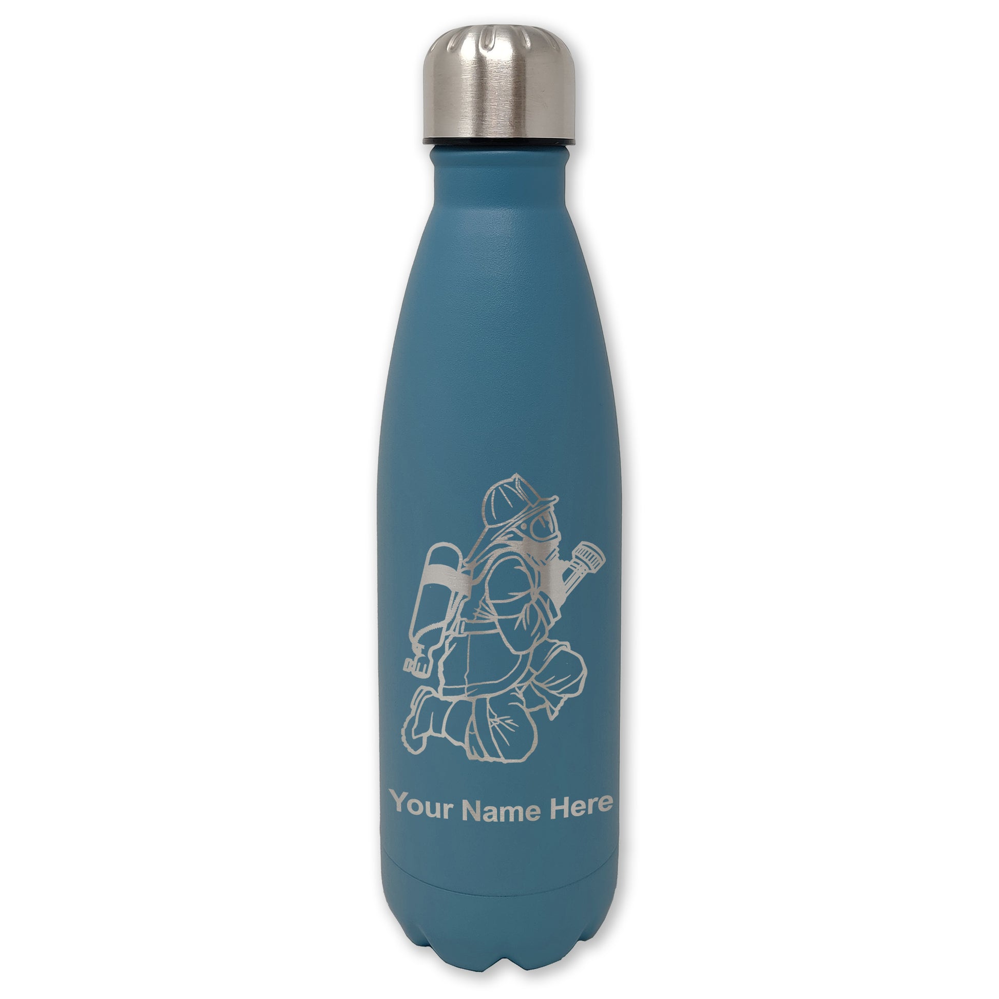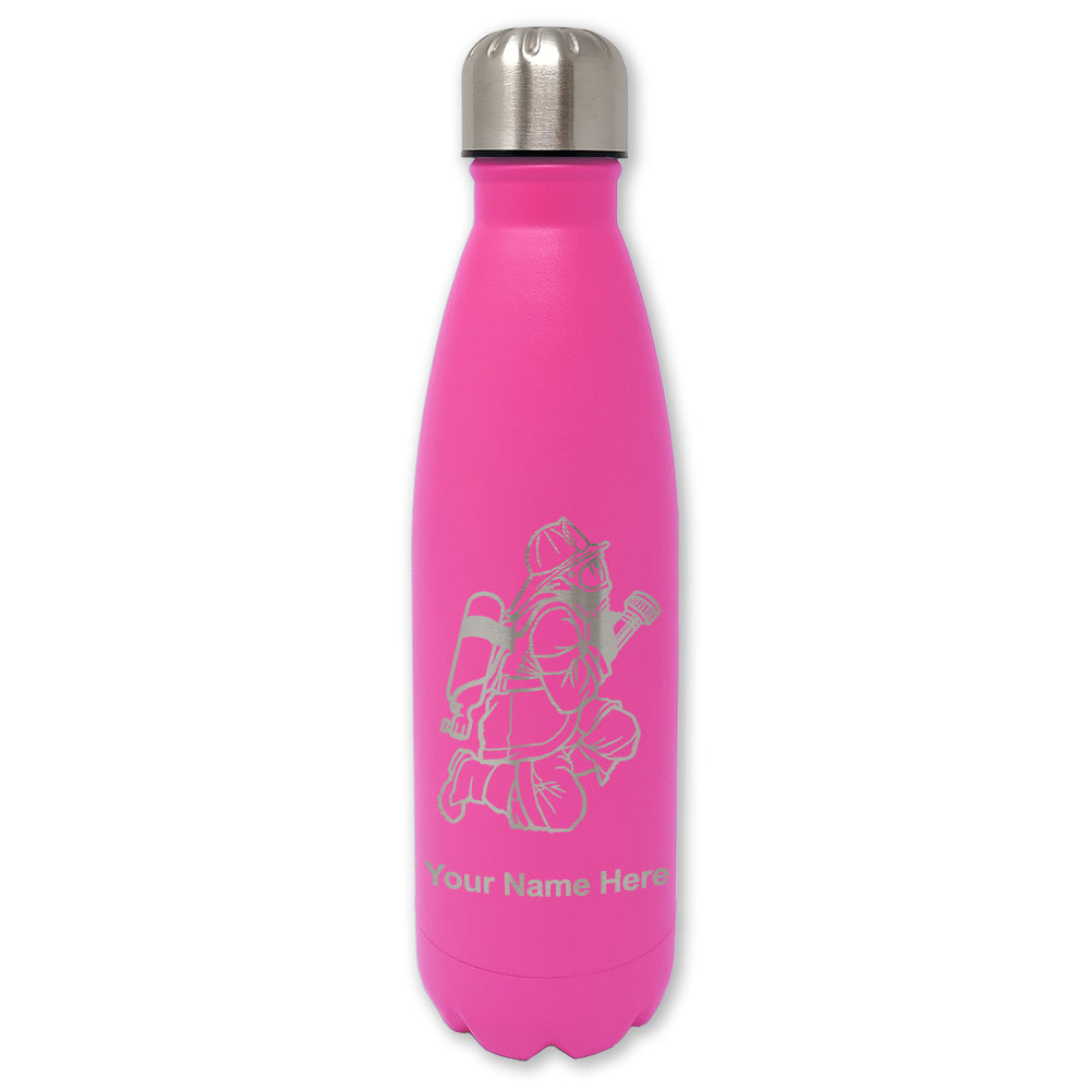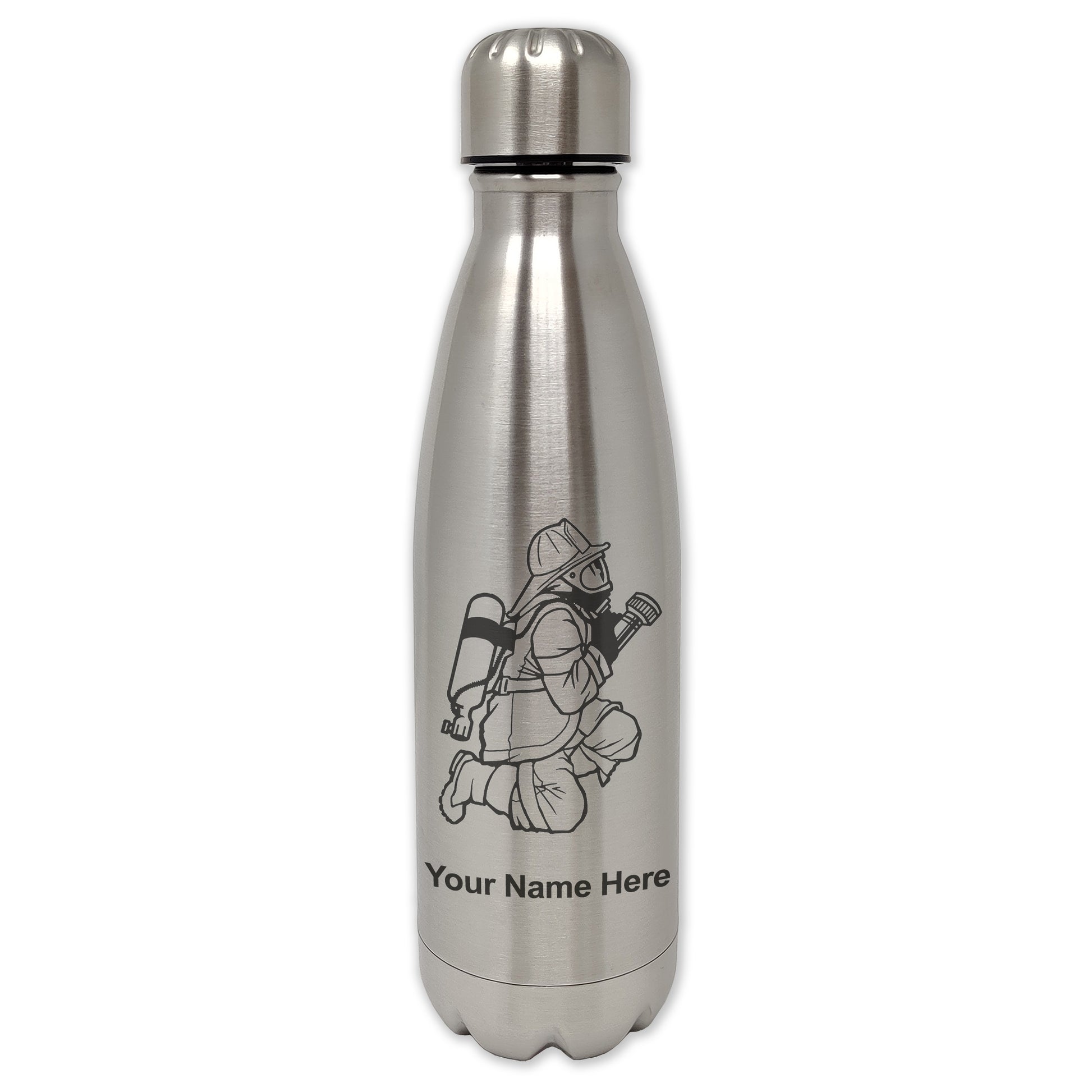 LaserGram Double Wall Water Bottle, Fireman with Hose, Personalized Engraving Included