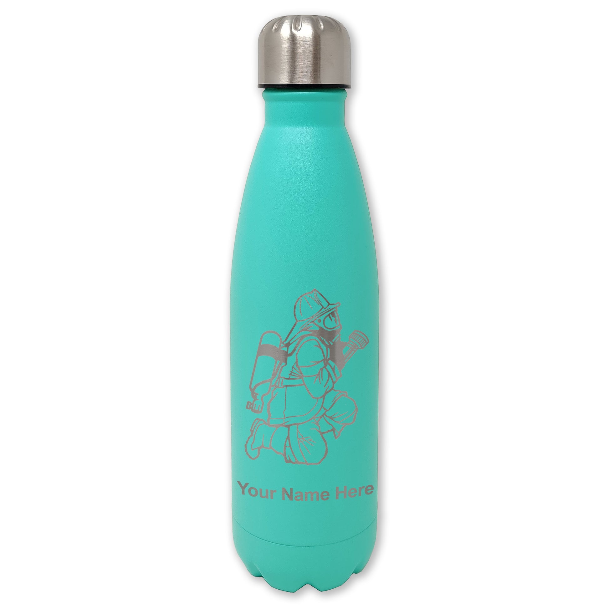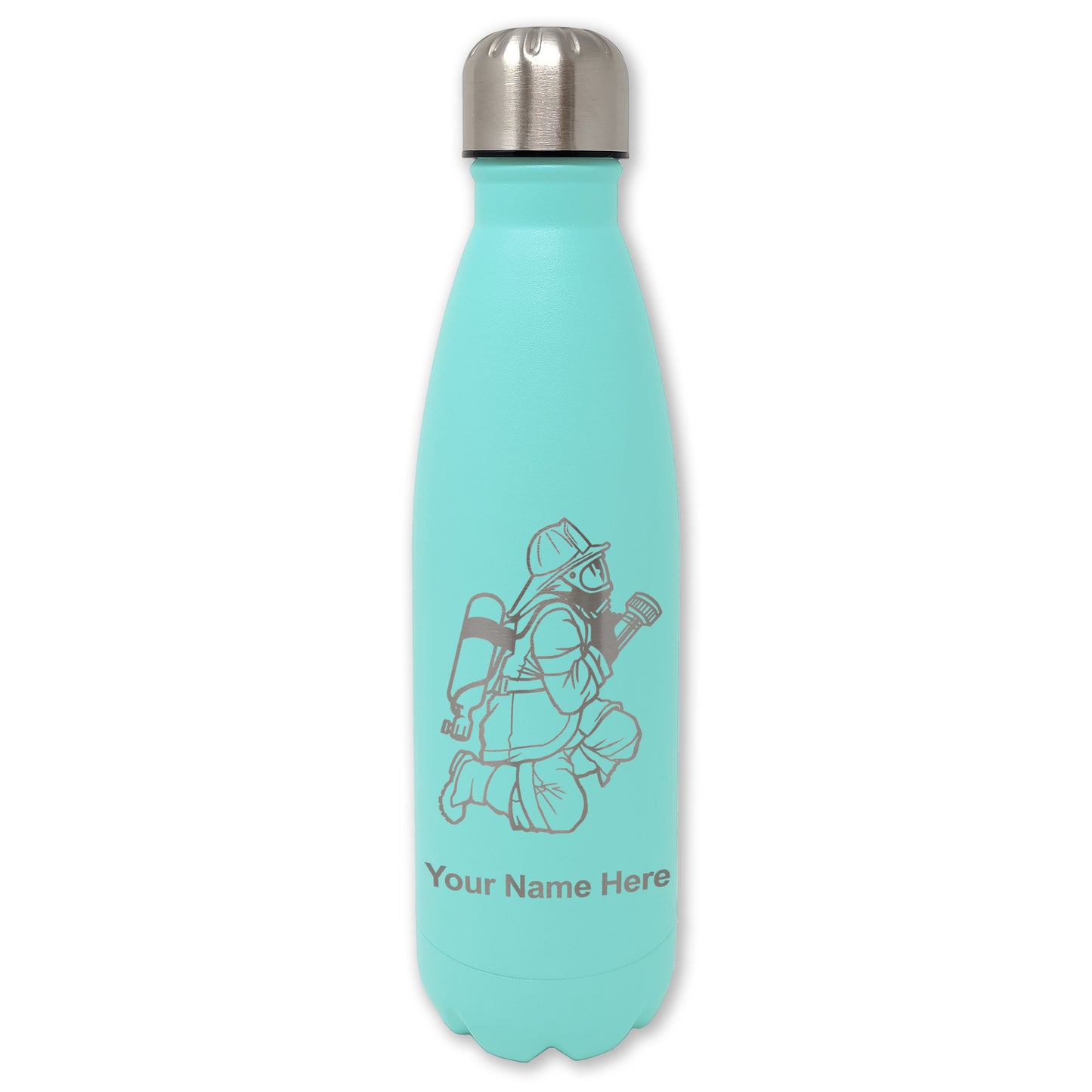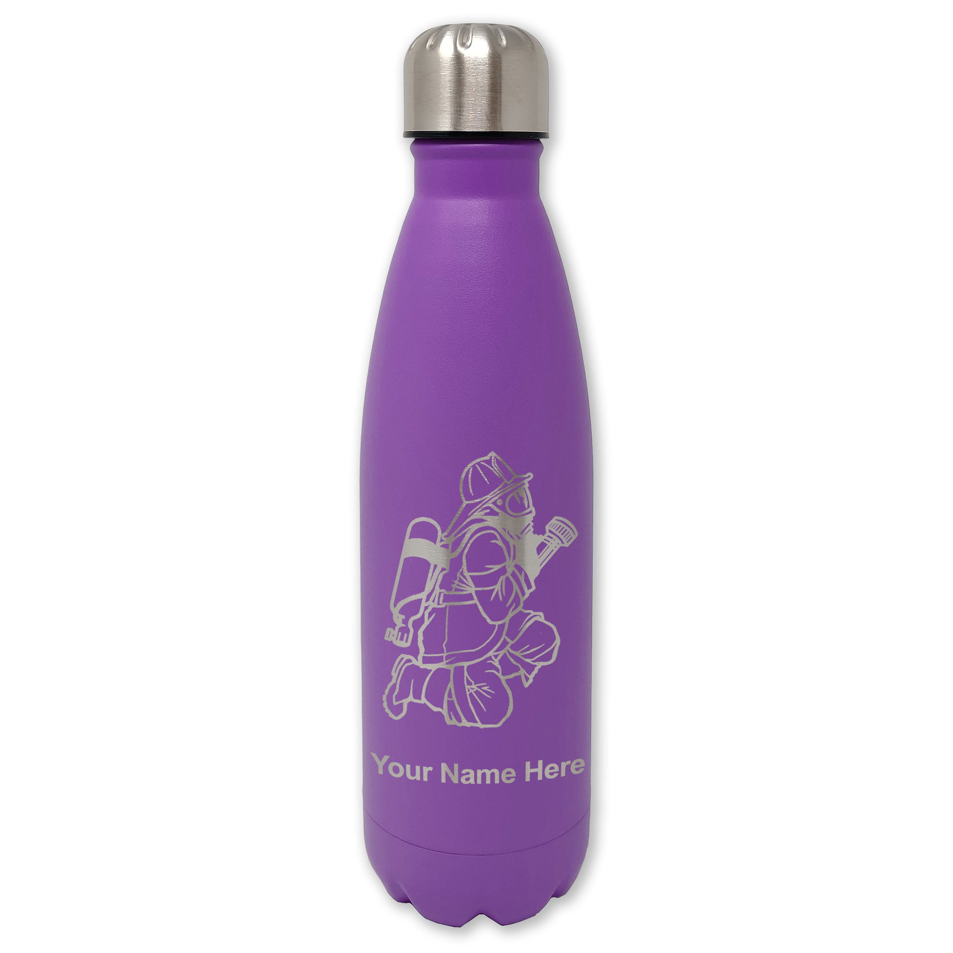 LaserGram Double Wall Water Bottle, Fireman with Hose, Personalized Engraving Included