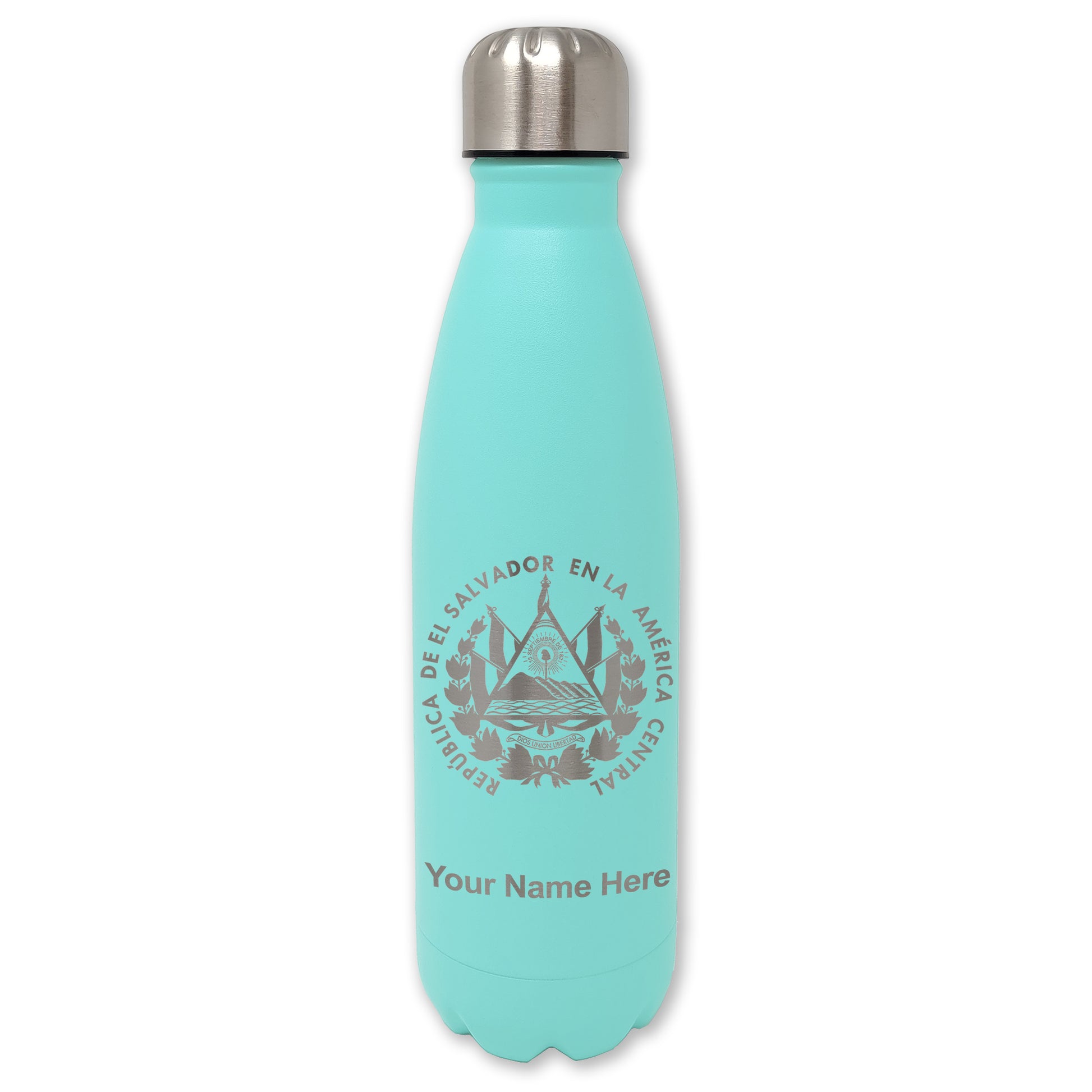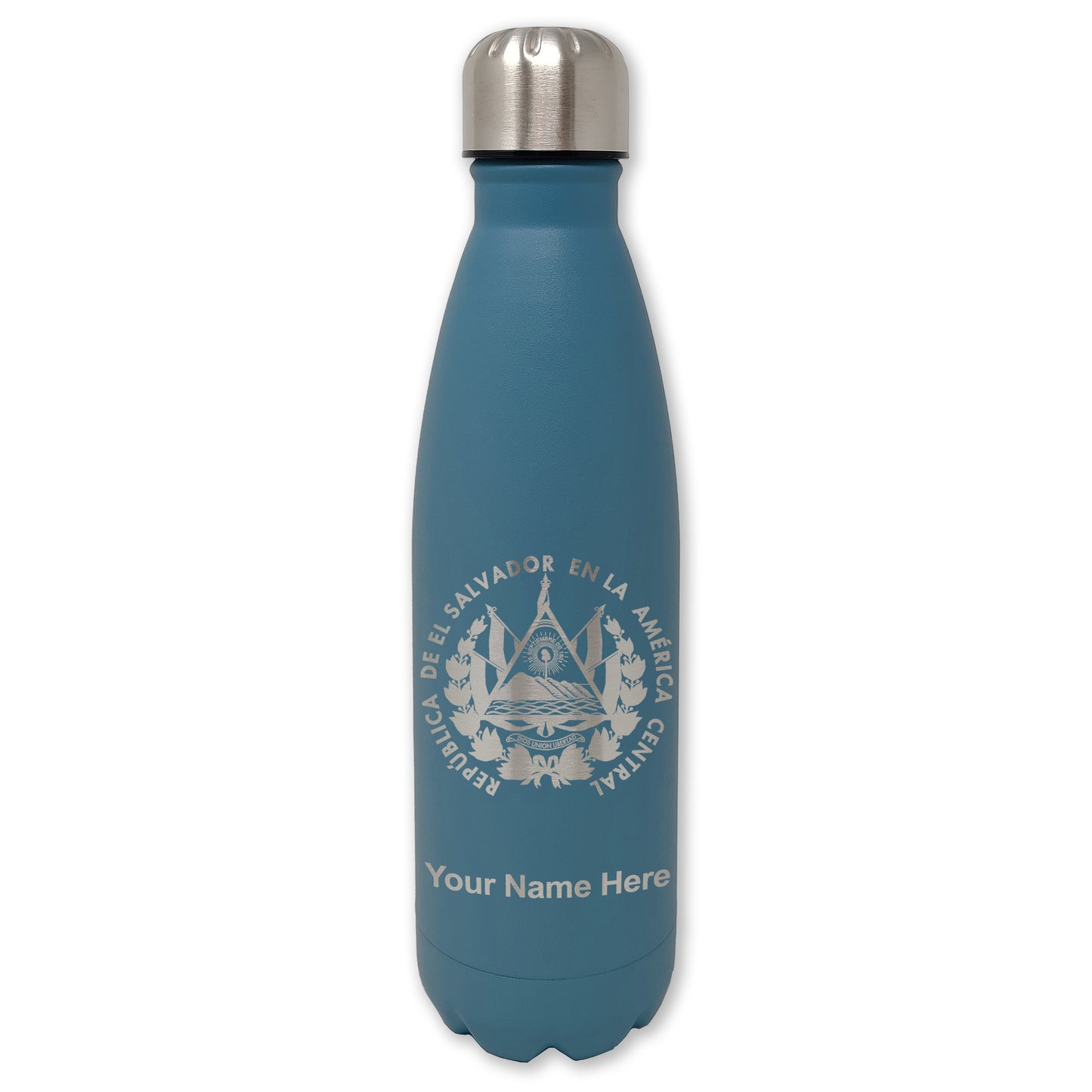 LaserGram Double Wall Water Bottle, Flag of El Salvador, Personalized Engraving Included