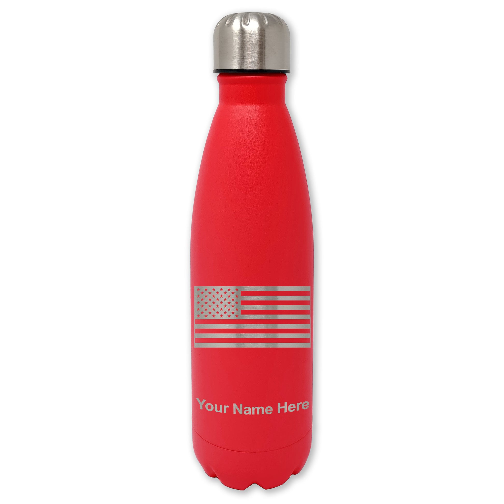 LaserGram Double Wall Water Bottle, Flag of the United States, Personalized Engraving Included