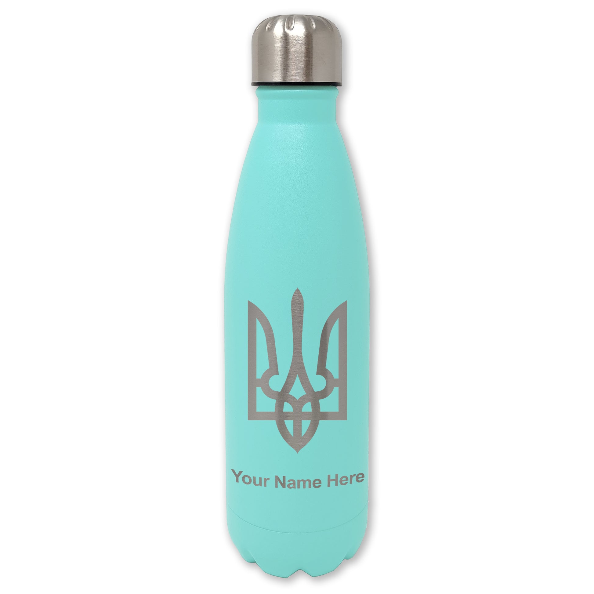 LaserGram Double Wall Water Bottle, Flag of Ukraine, Personalized Engraving Included