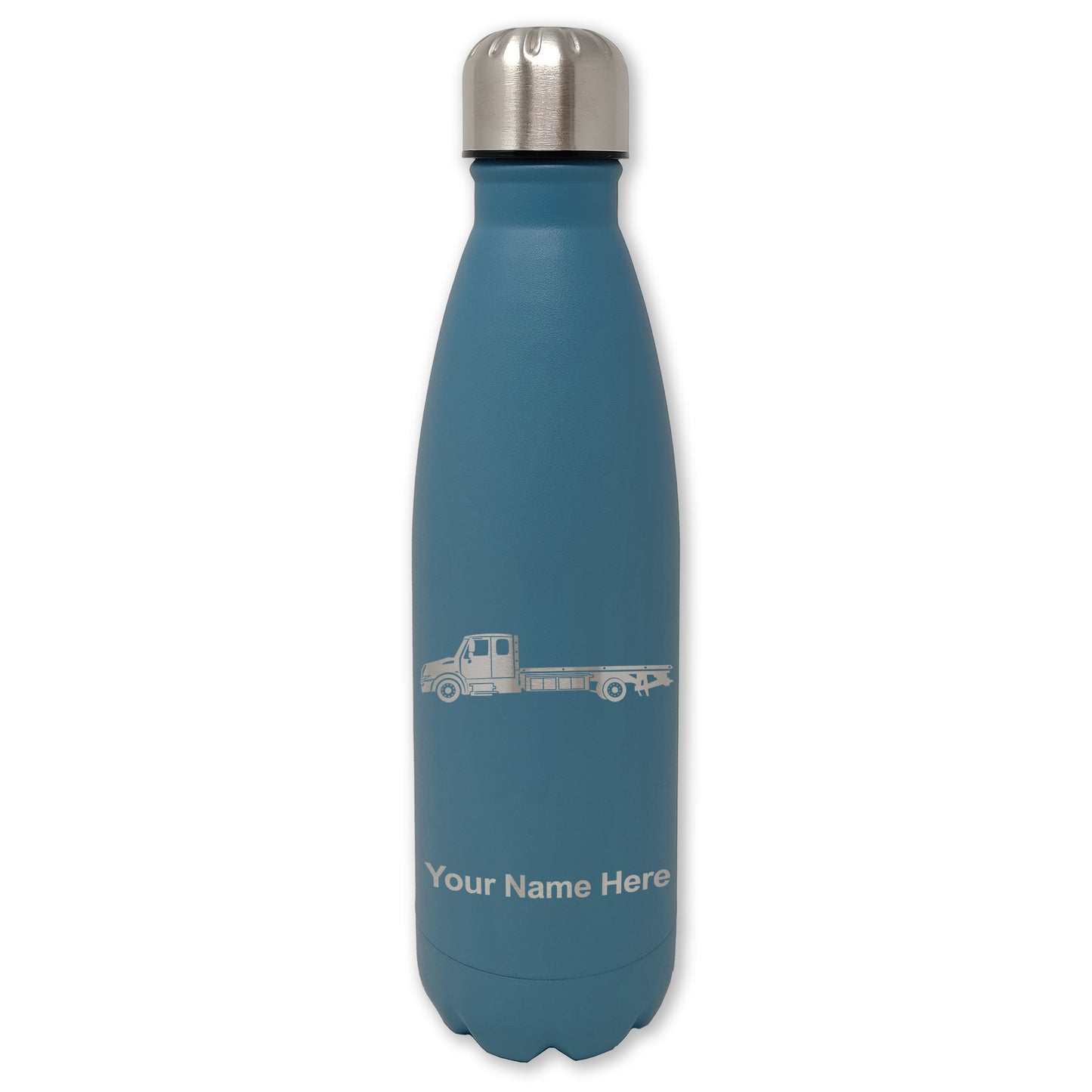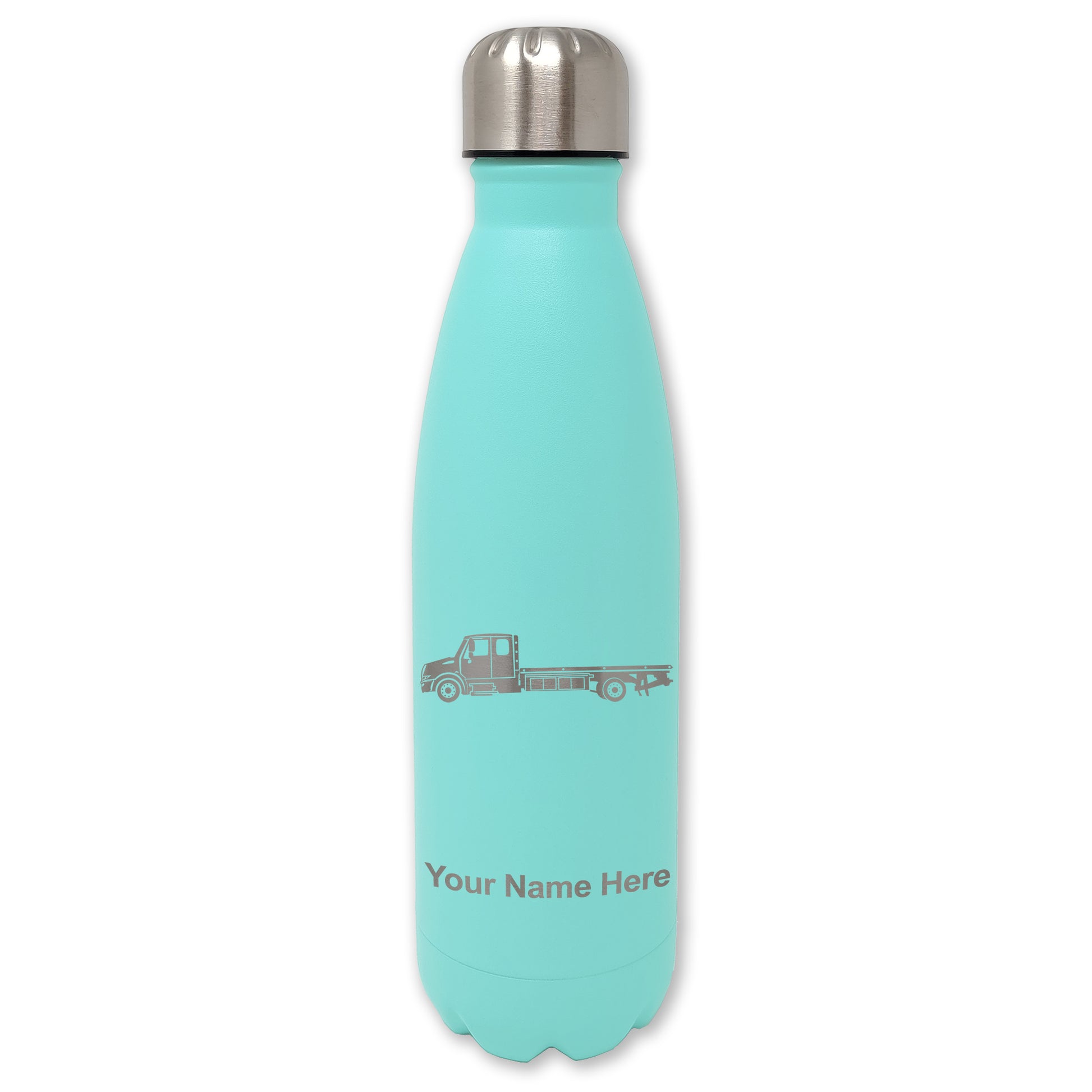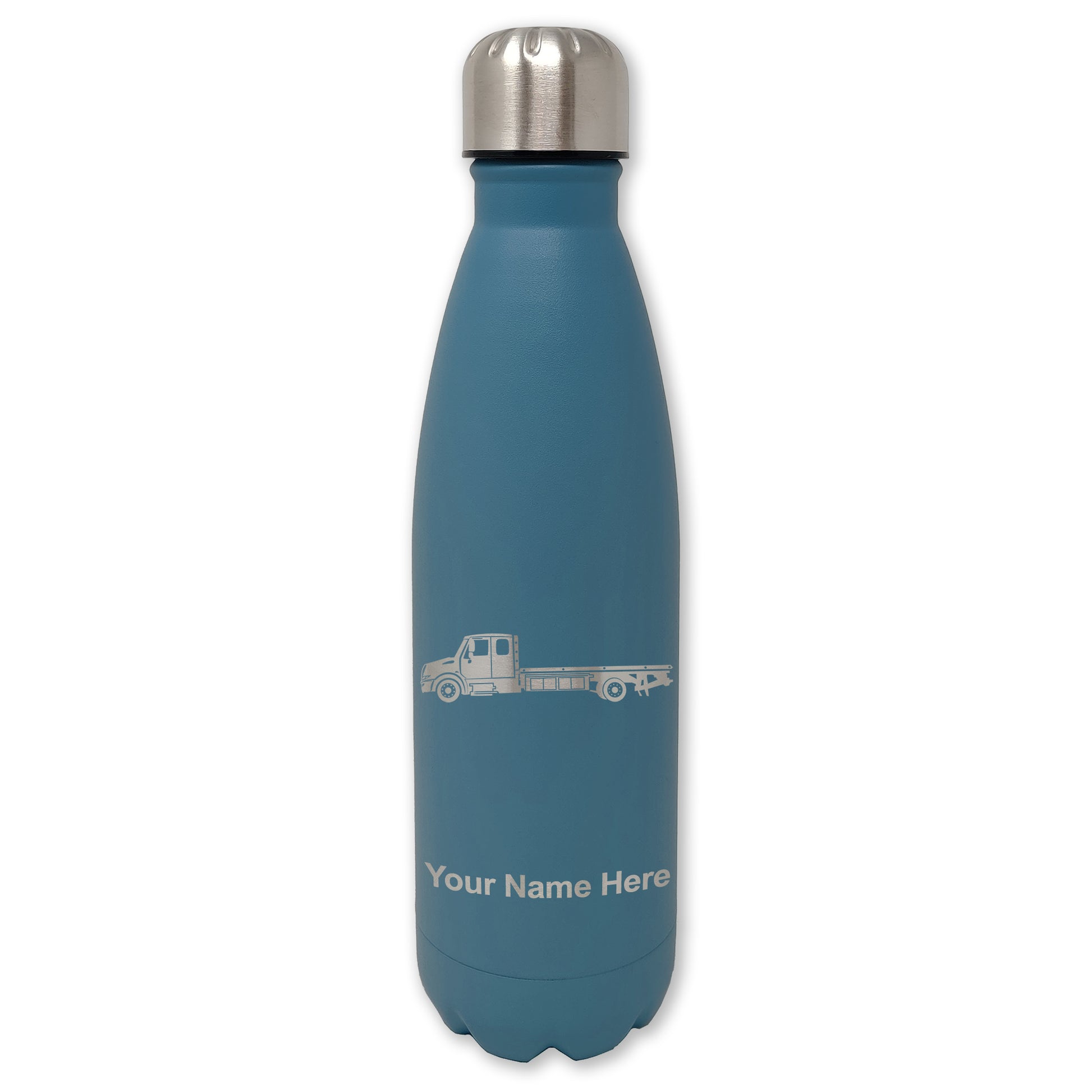 LaserGram Double Wall Water Bottle, Flat Bed Tow Truck, Personalized Engraving Included