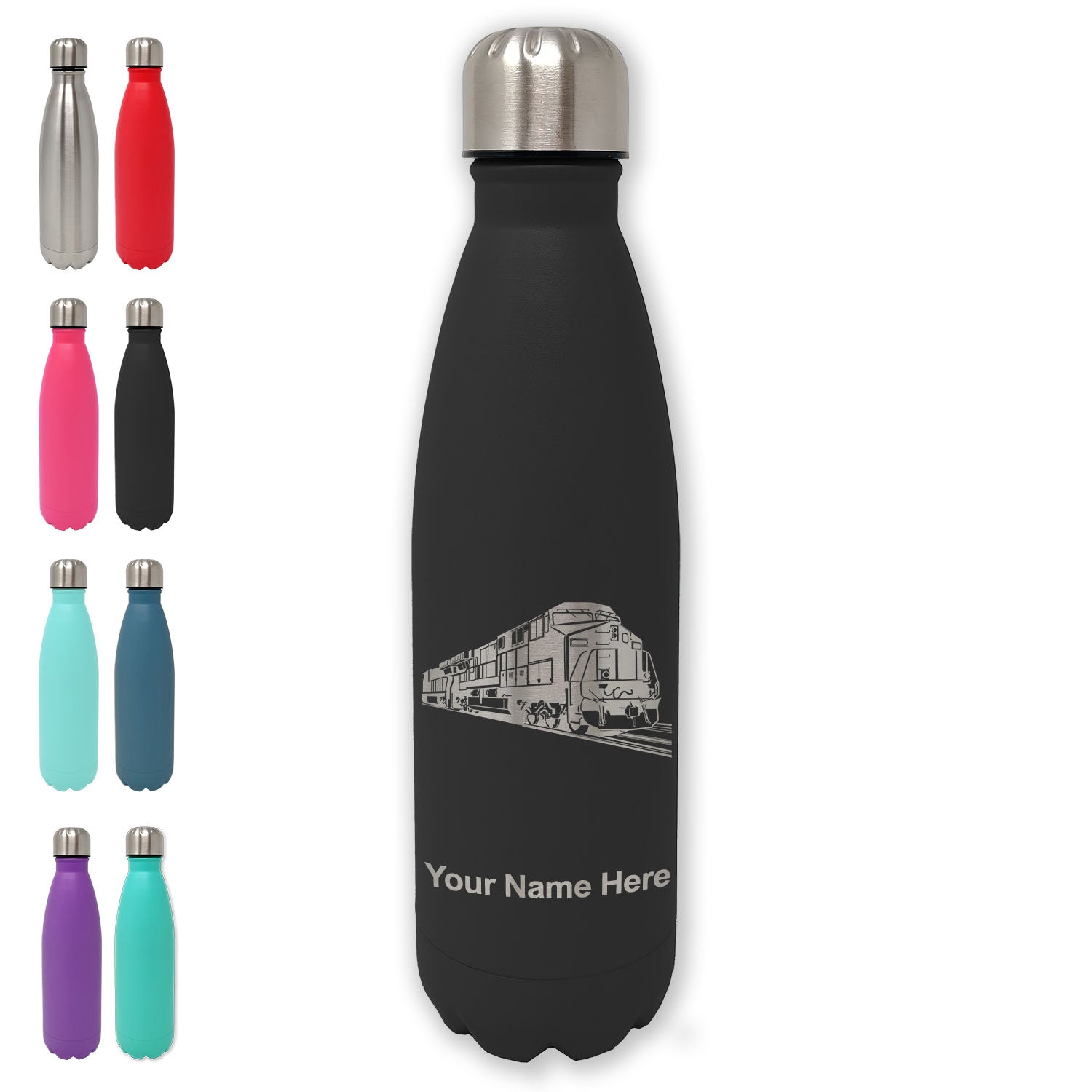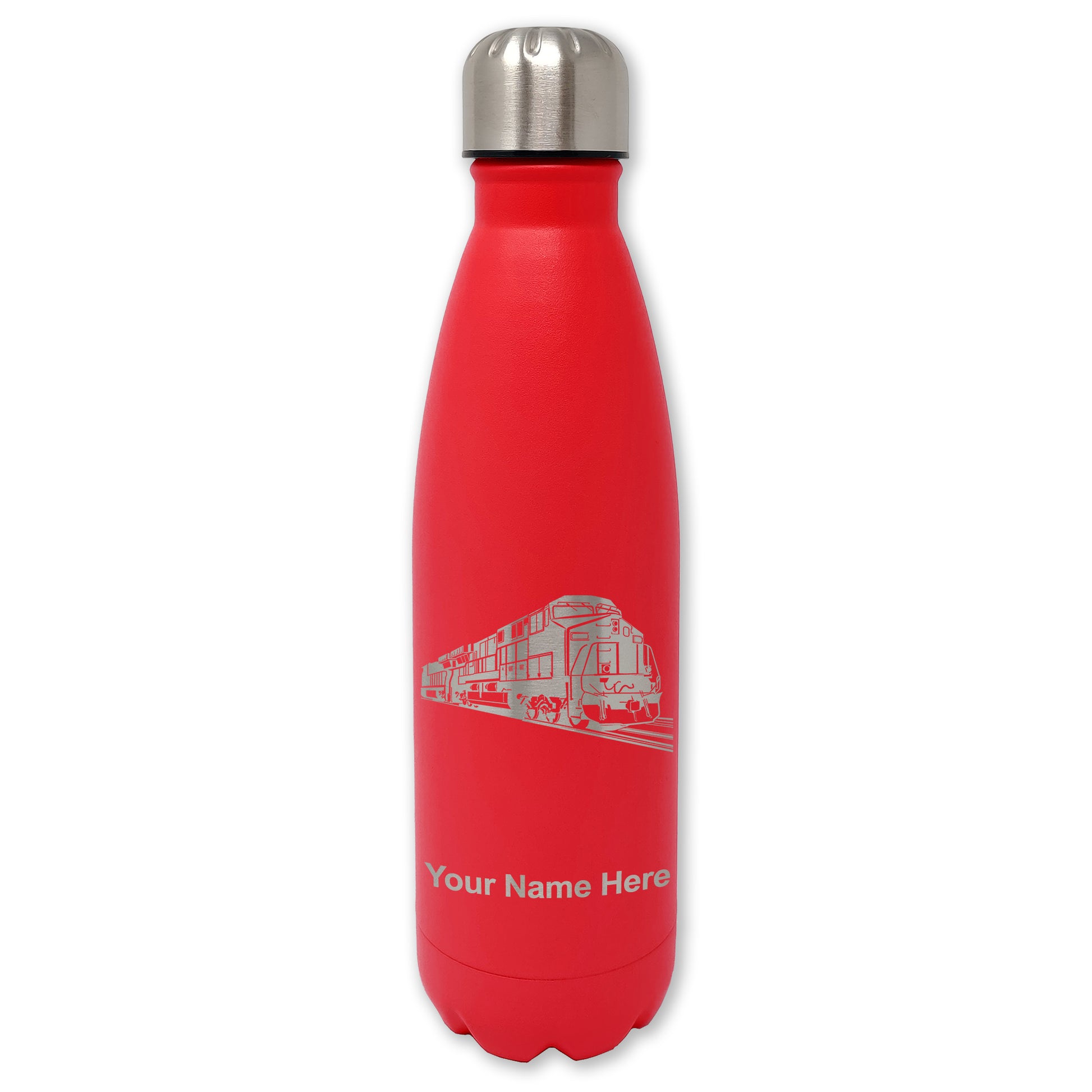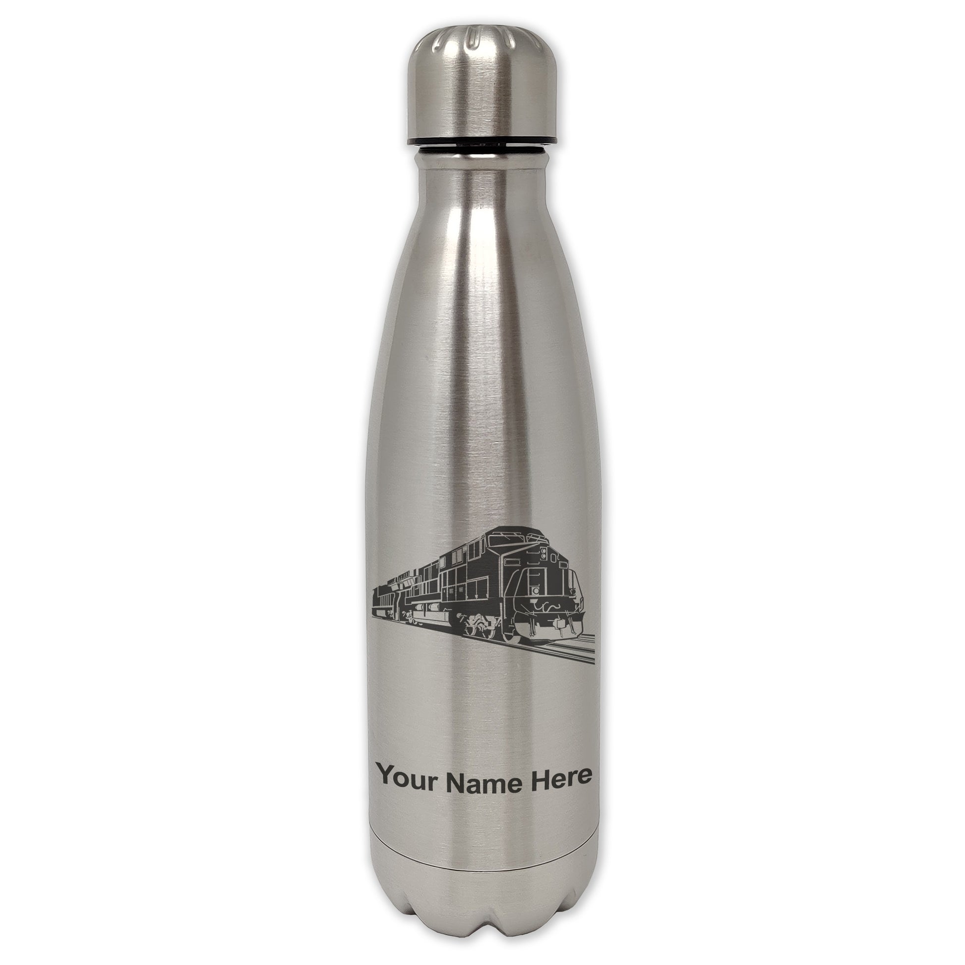 LaserGram Double Wall Water Bottle, Freight Train, Personalized Engraving Included