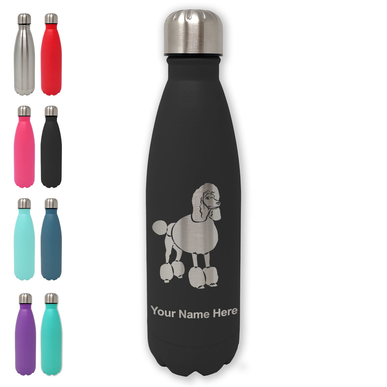 LaserGram Double Wall Water Bottle, French Poodle Dog, Personalized Engraving Included