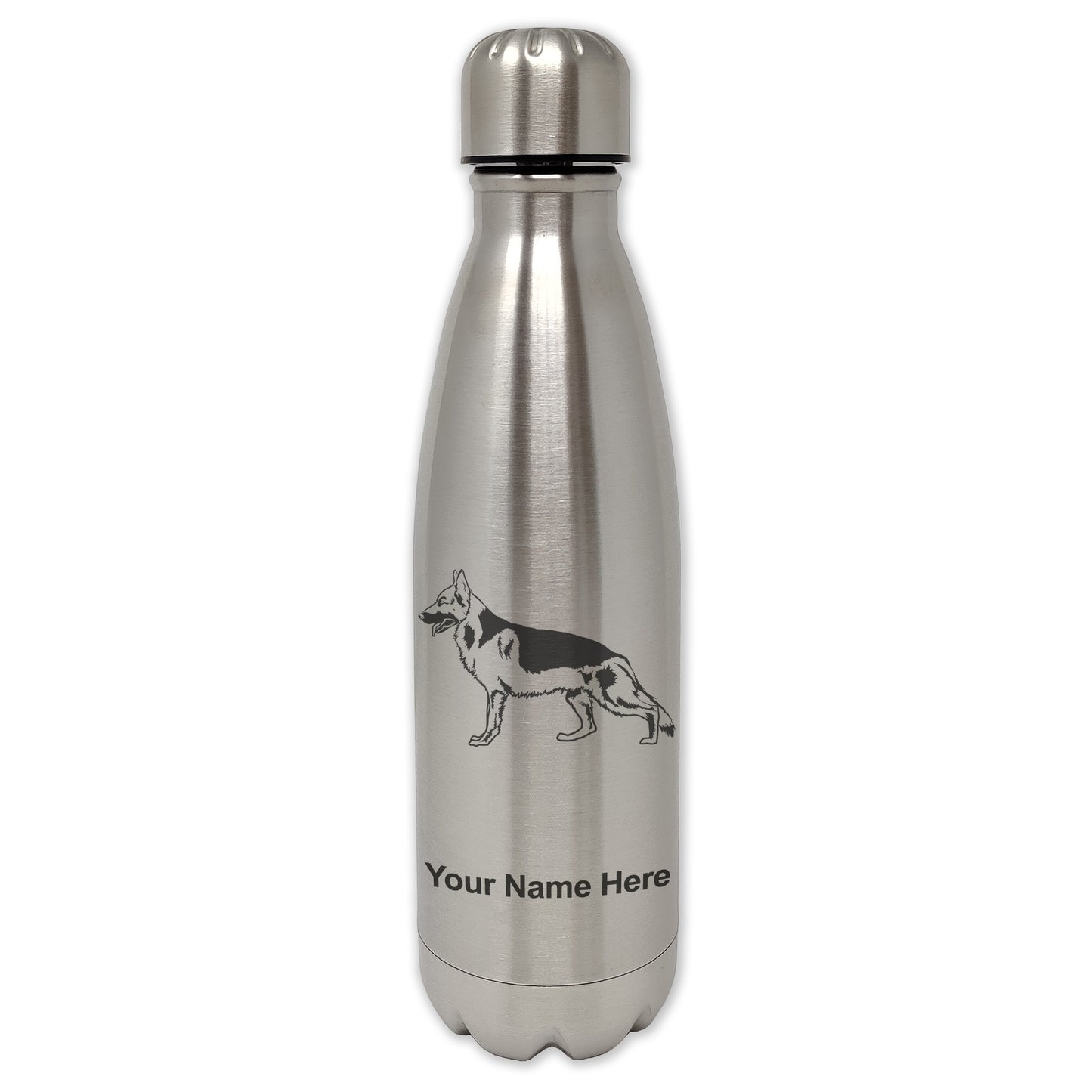 LaserGram Double Wall Water Bottle, German Shepherd Dog, Personalized Engraving Included