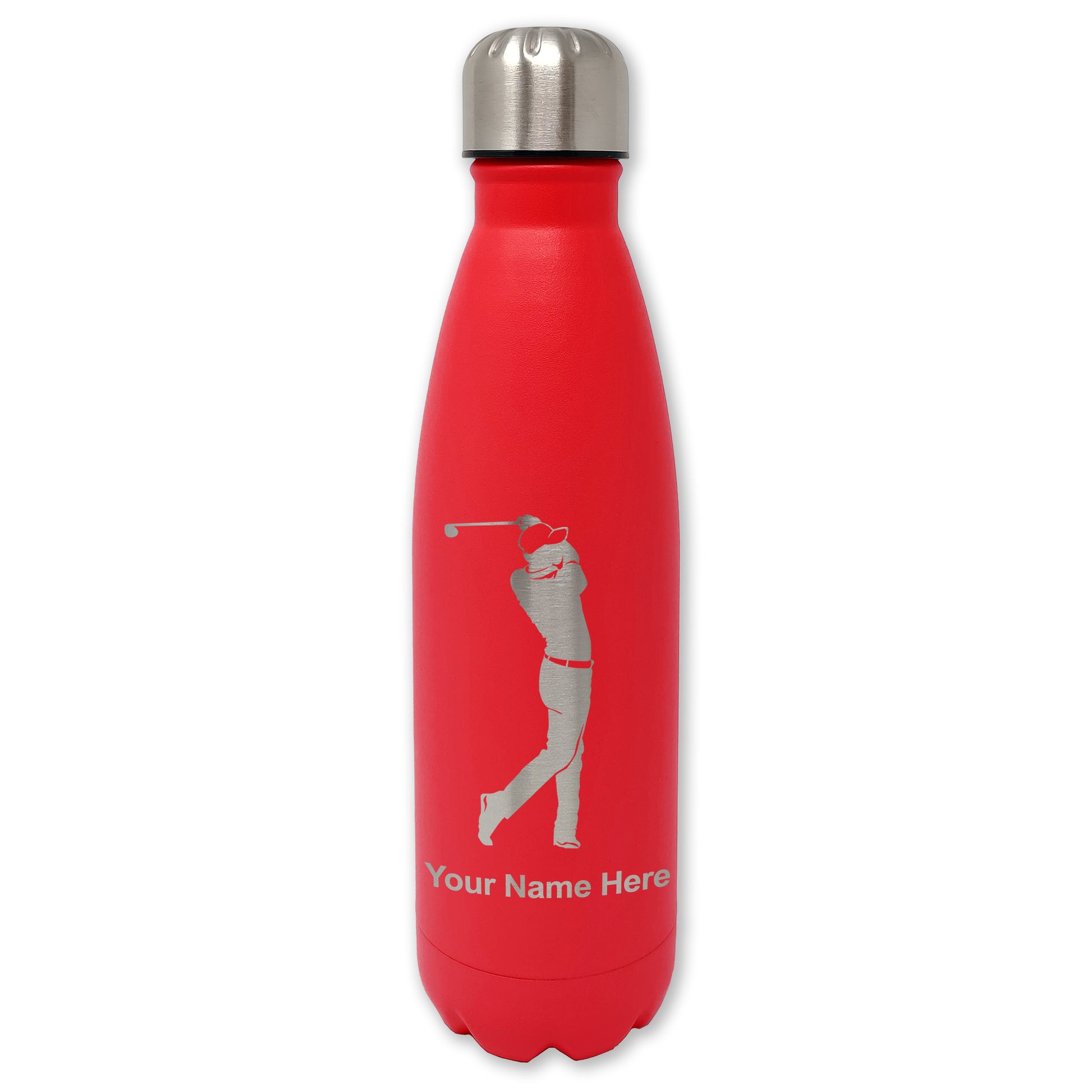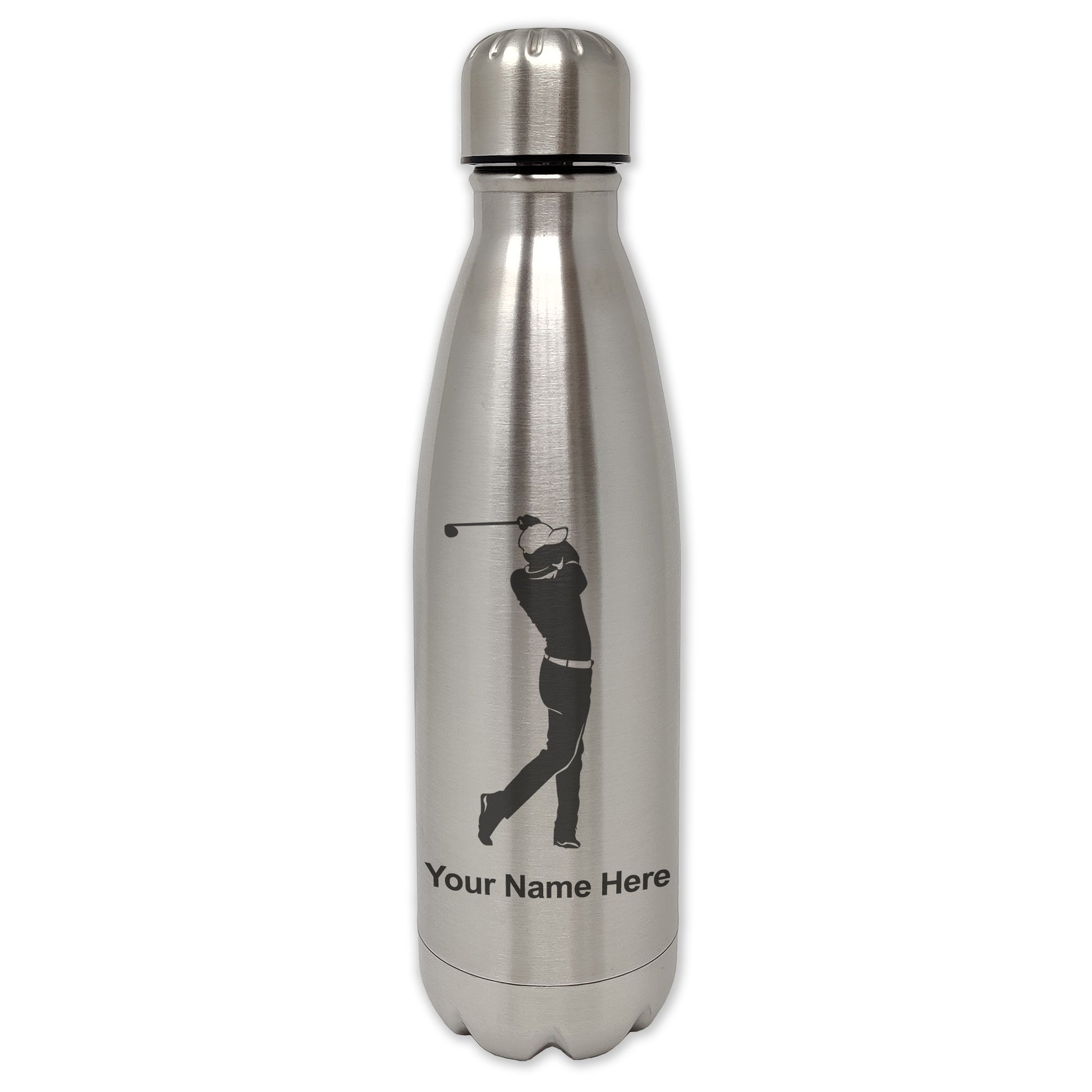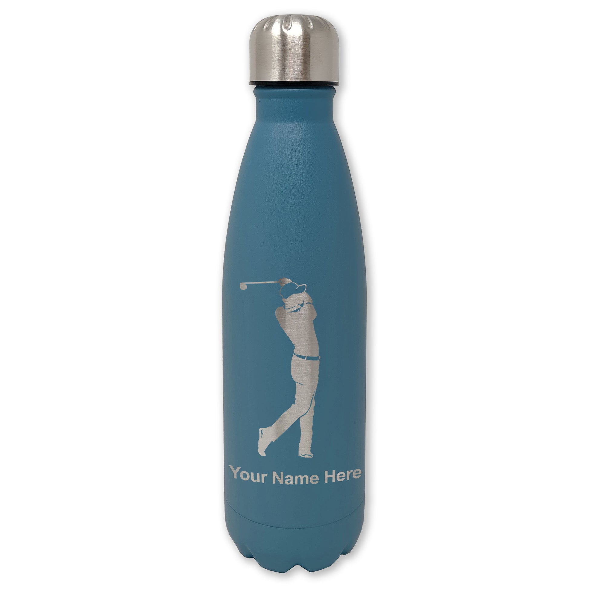 LaserGram Double Wall Water Bottle, Golfer Golfing, Personalized Engraving Included