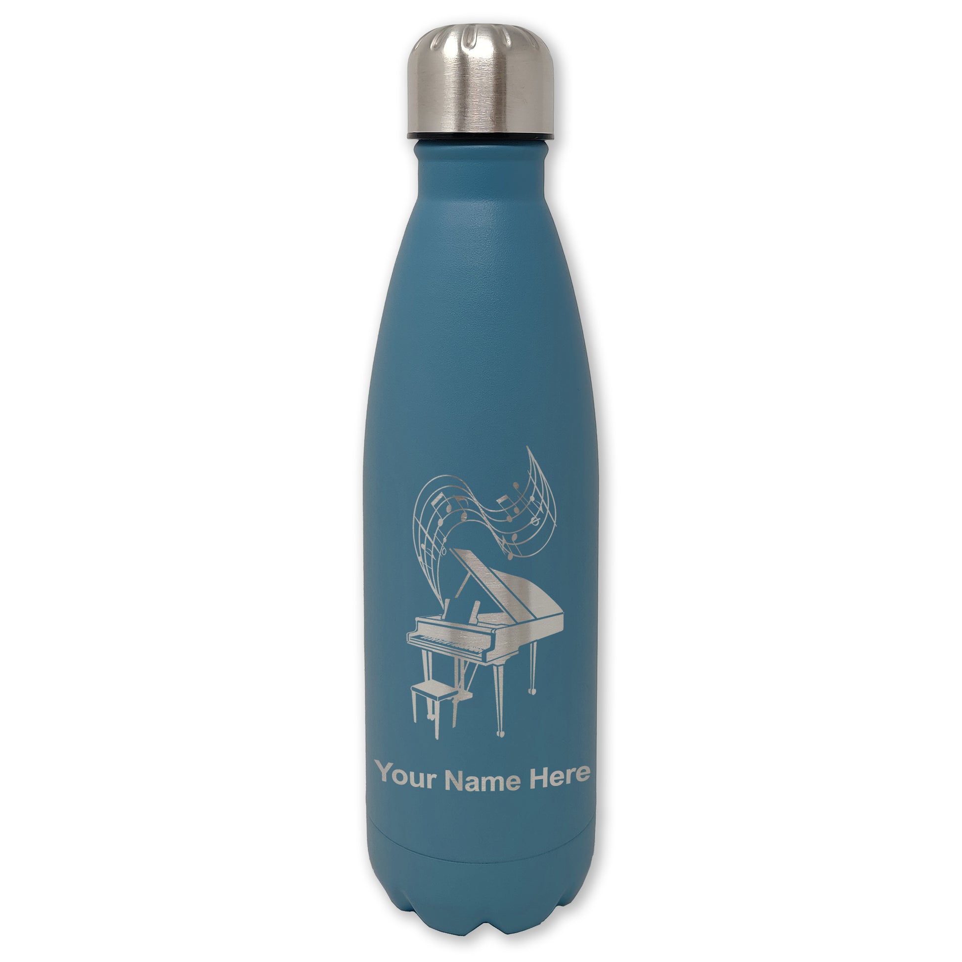 LaserGram Double Wall Water Bottle, Grand Piano, Personalized Engraving Included