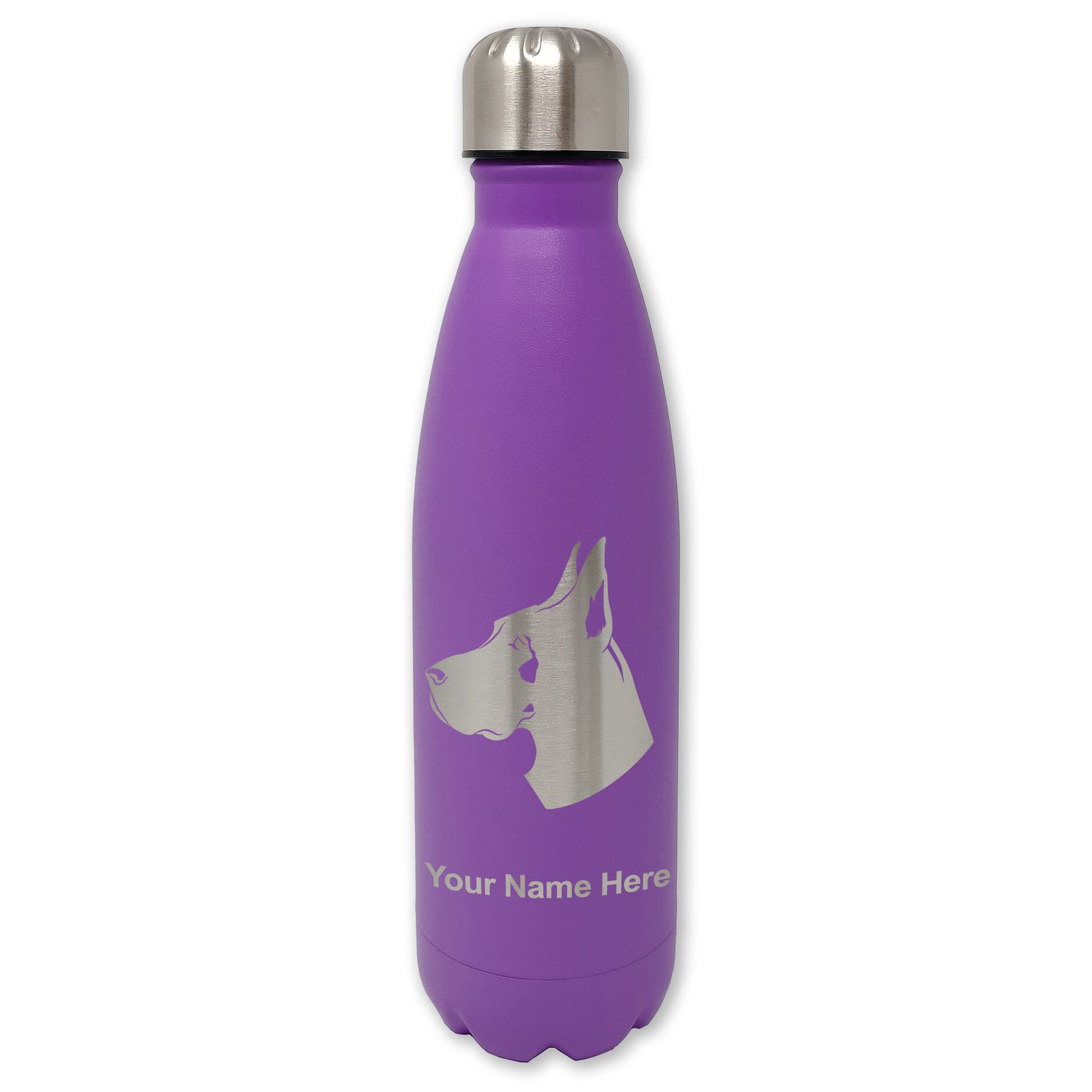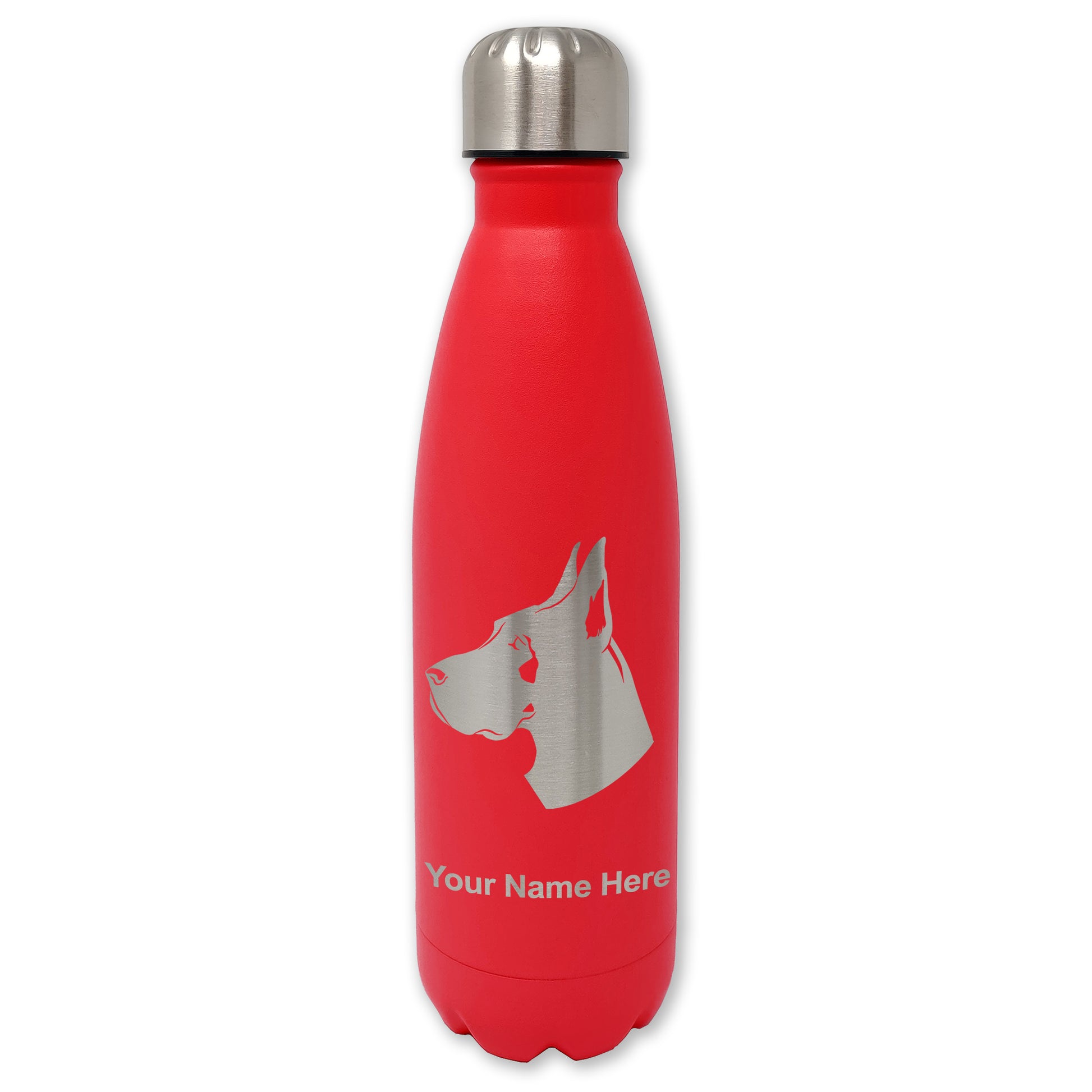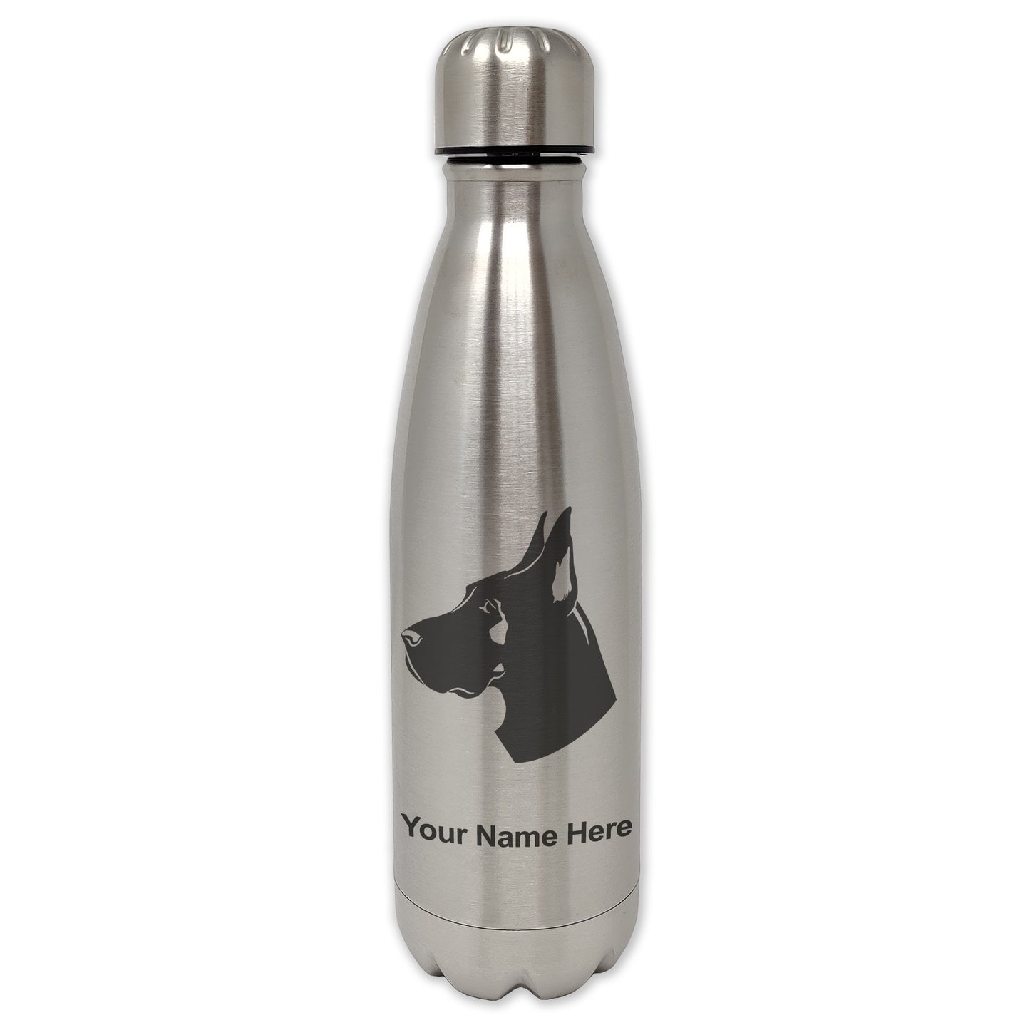 LaserGram Double Wall Water Bottle, Great Dane Dog, Personalized Engraving Included