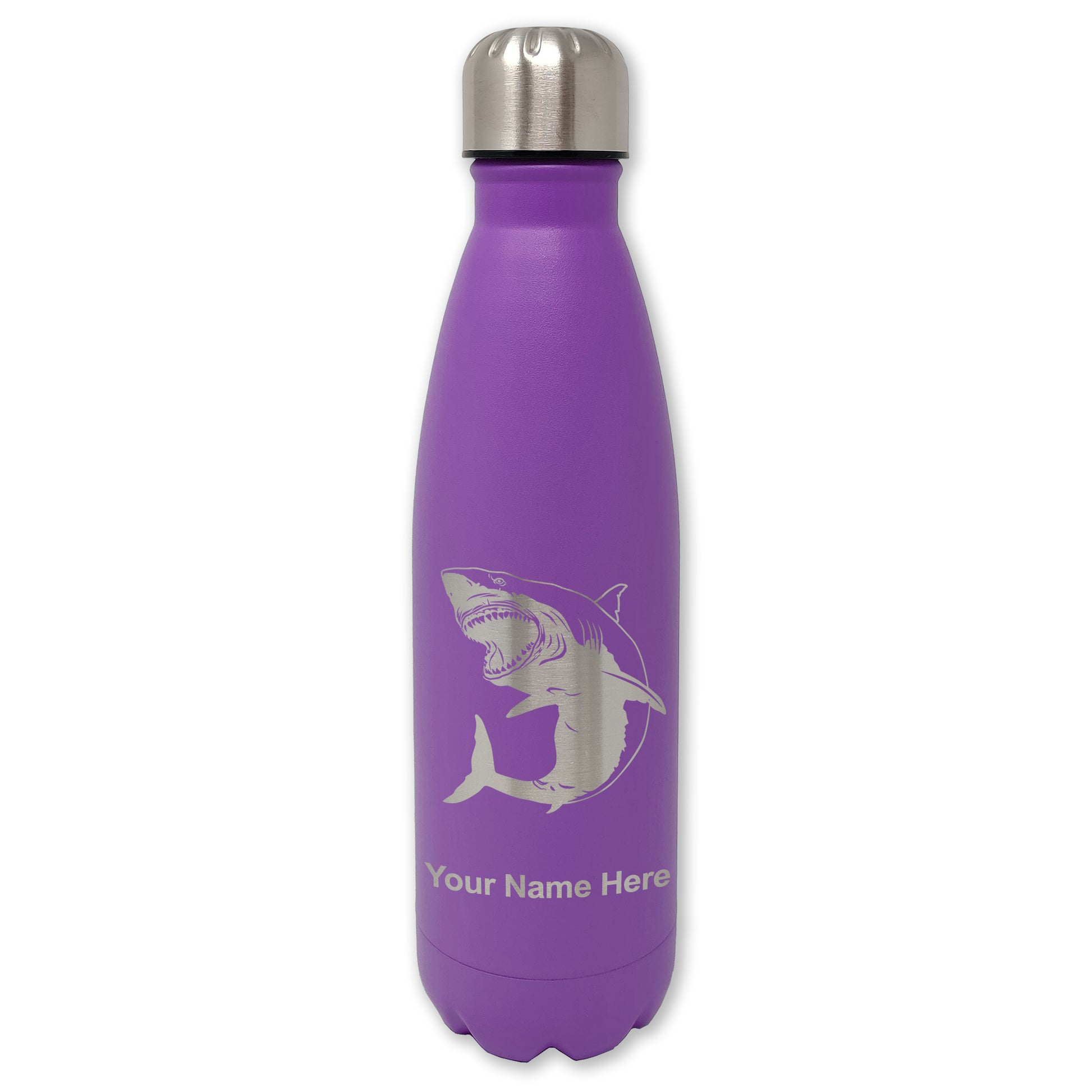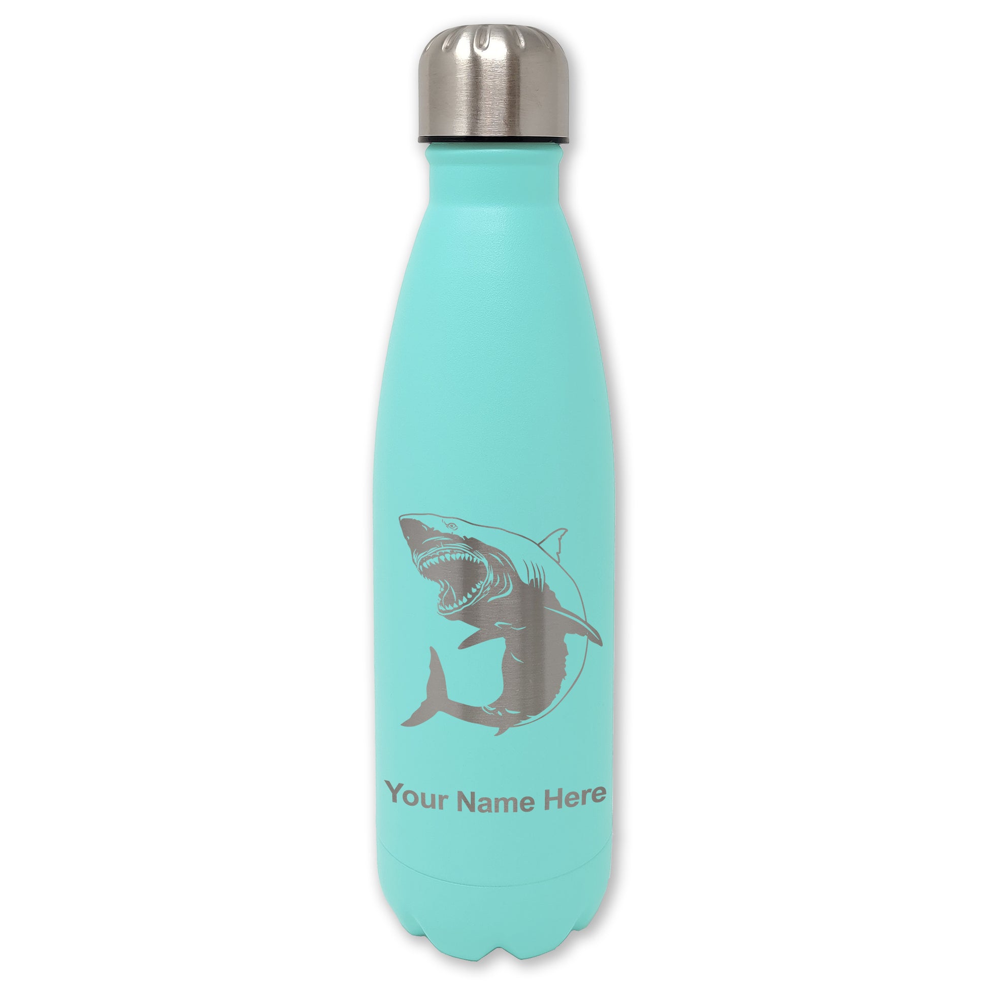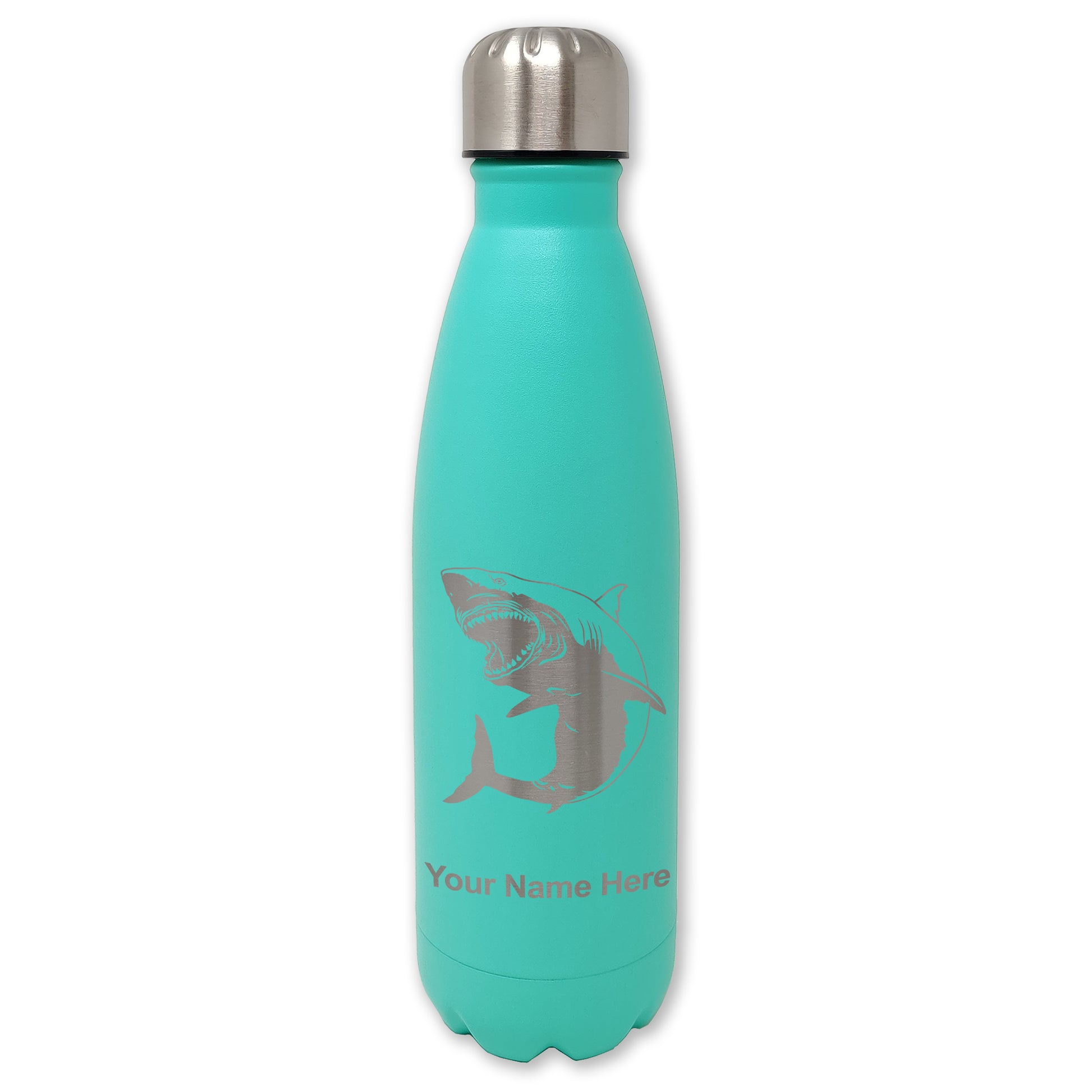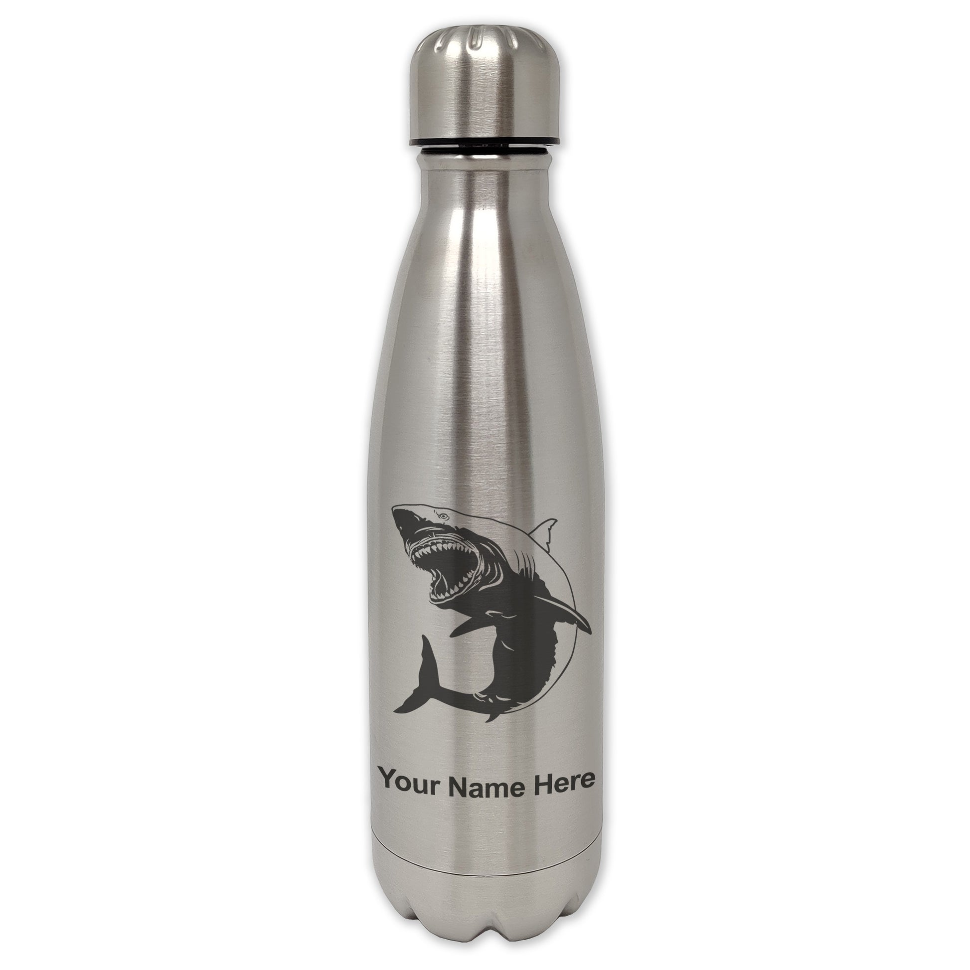 LaserGram Double Wall Water Bottle, Great White Shark, Personalized Engraving Included