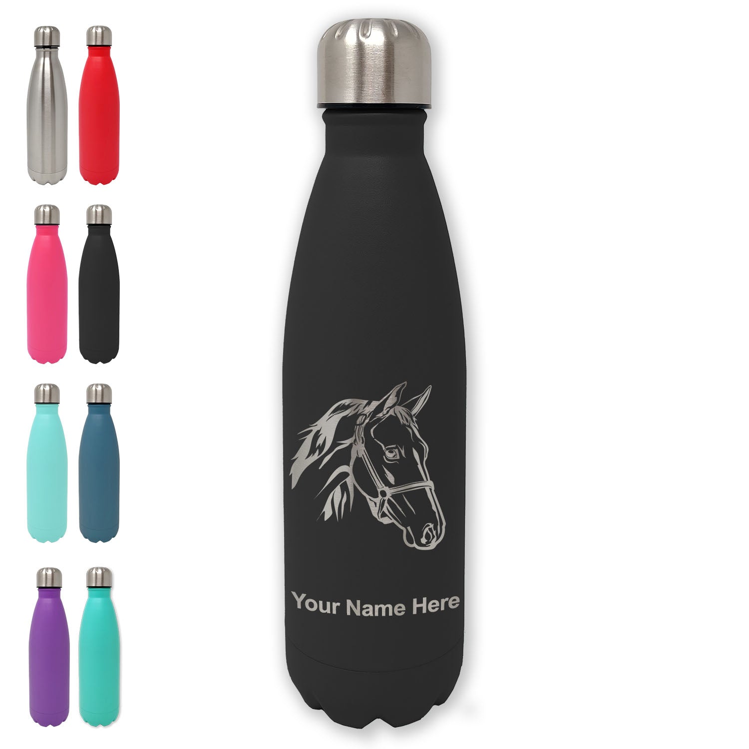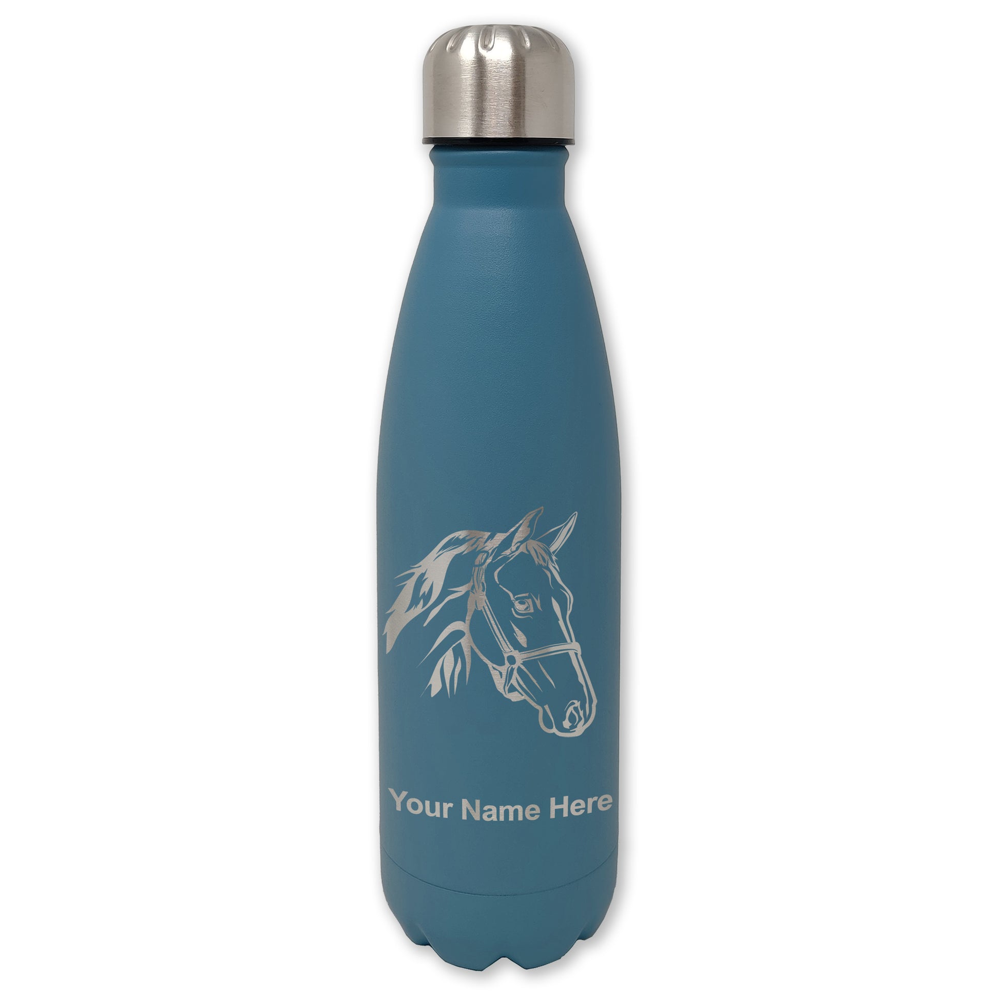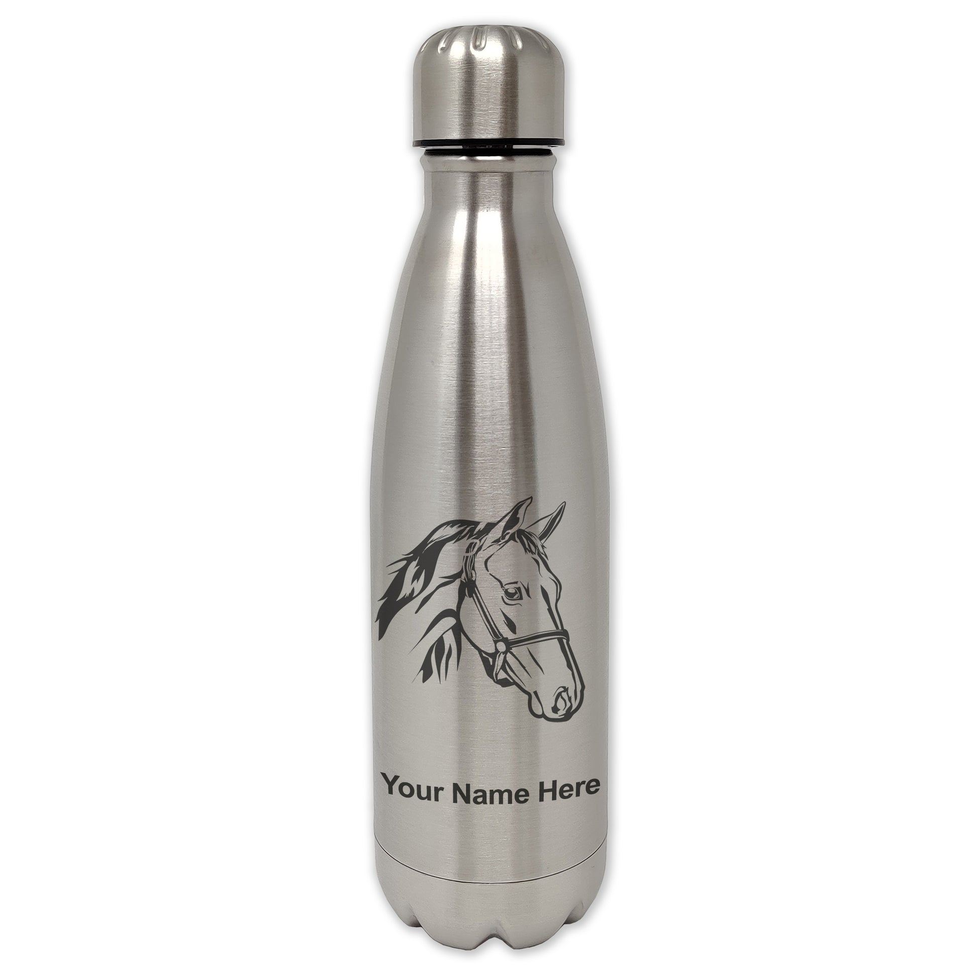 LaserGram Double Wall Water Bottle, Horse Head 2, Personalized Engraving Included