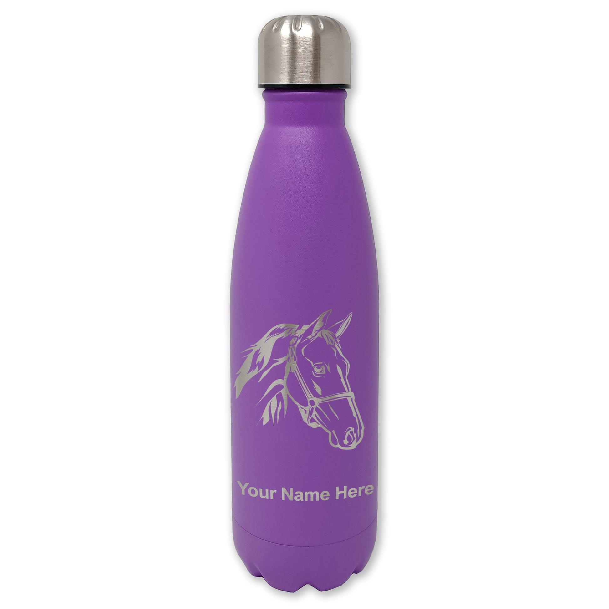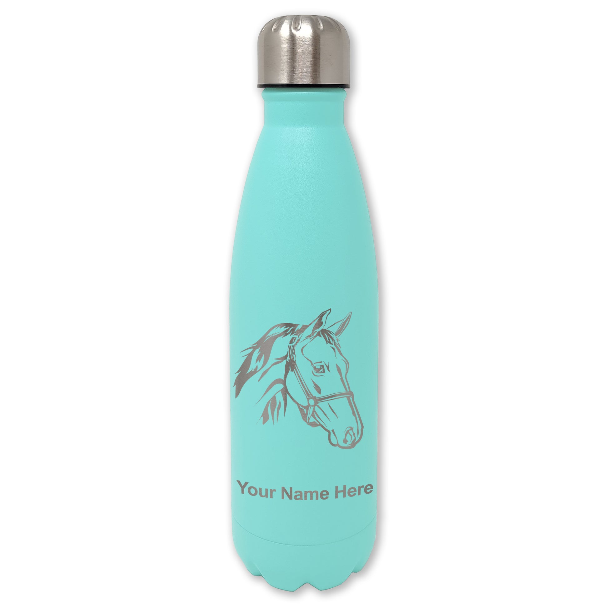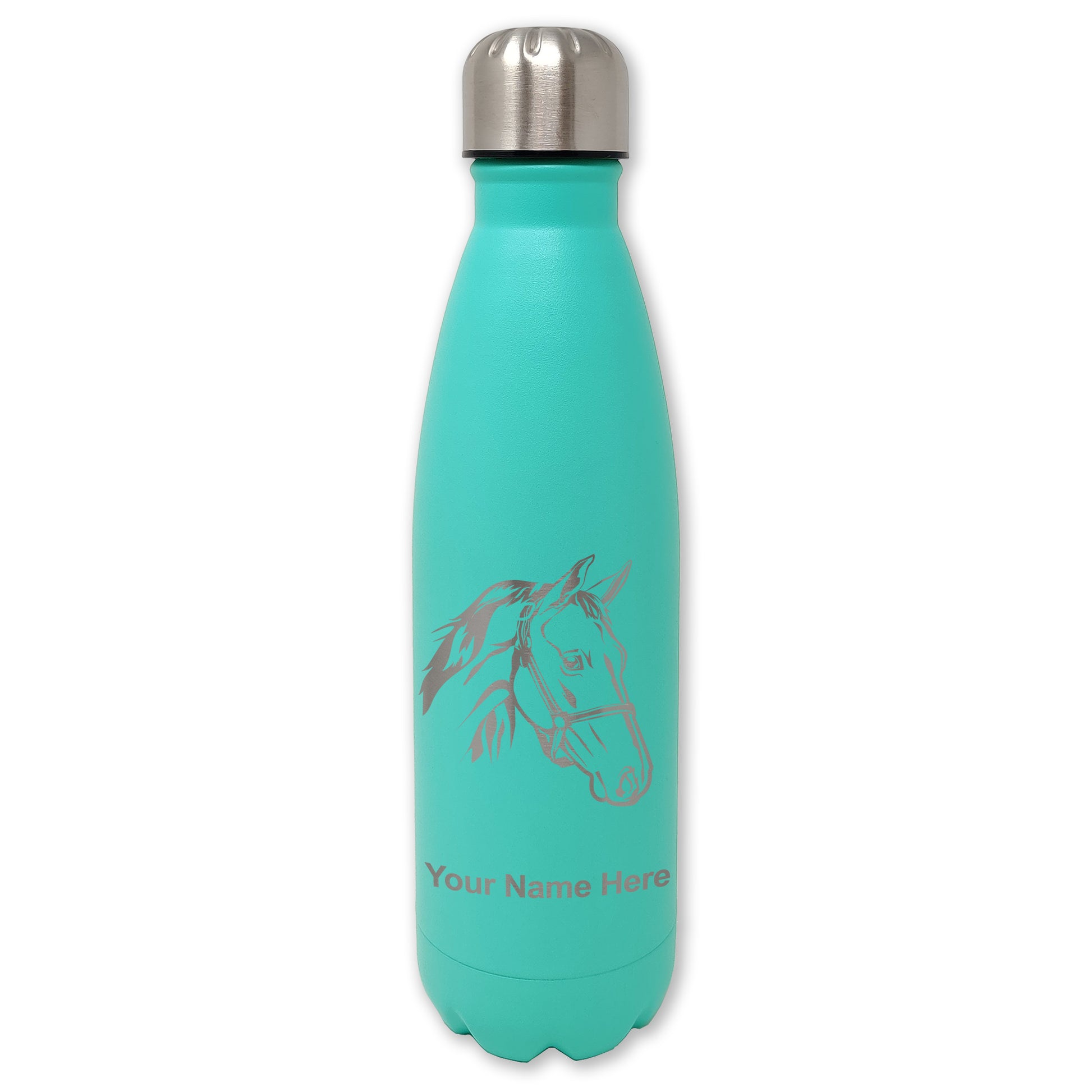 LaserGram Double Wall Water Bottle, Horse Head 2, Personalized Engraving Included