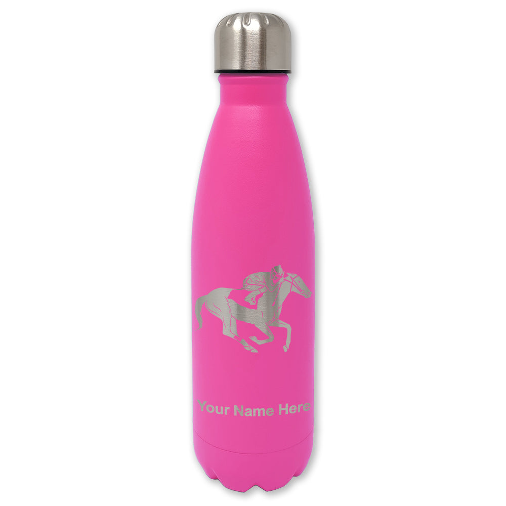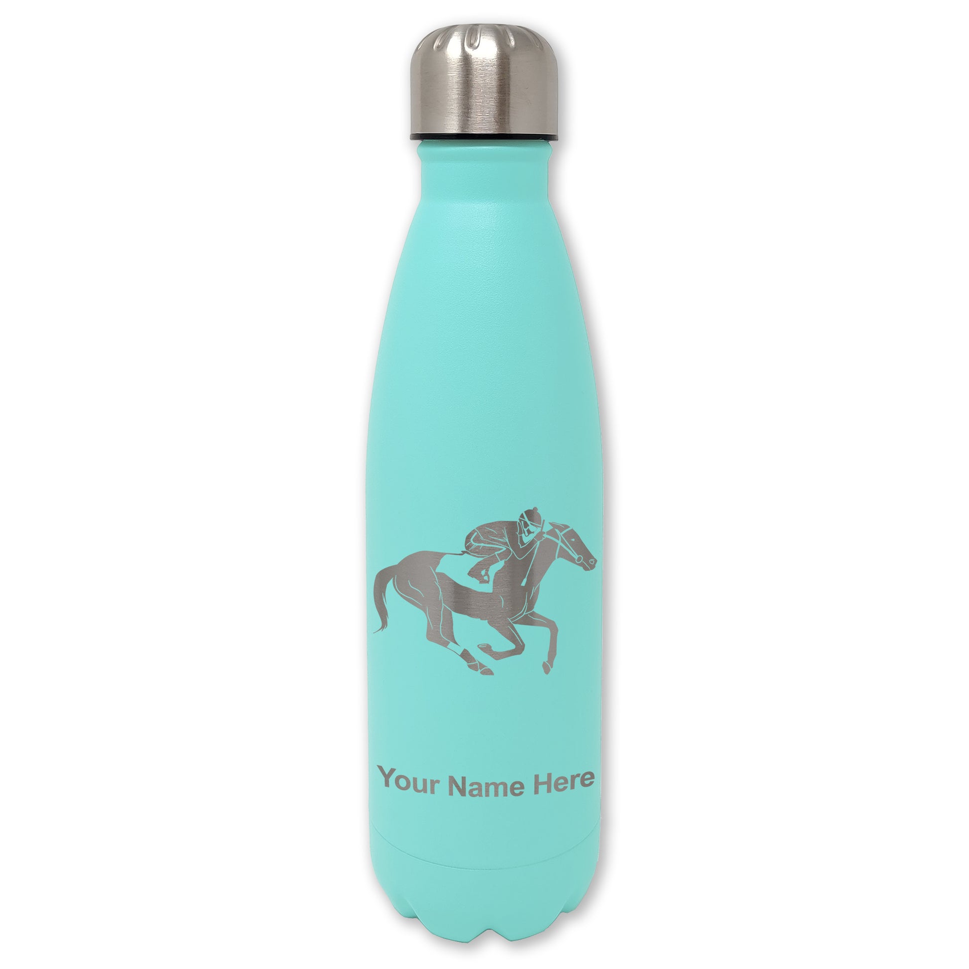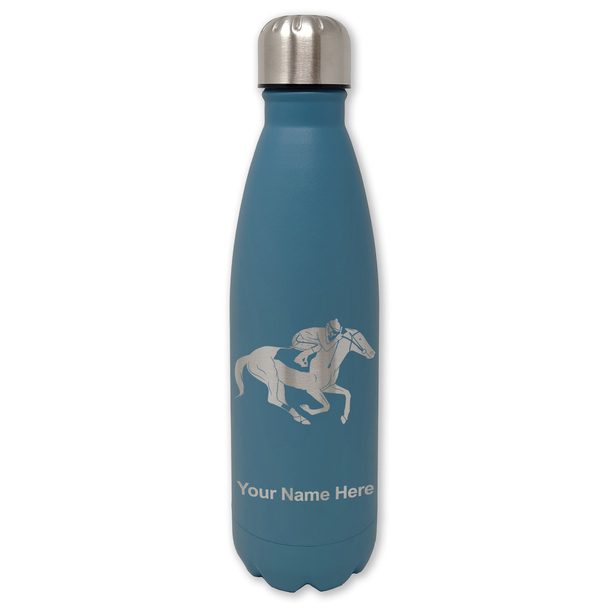LaserGram Double Wall Water Bottle, Horse Racing, Personalized Engraving Included